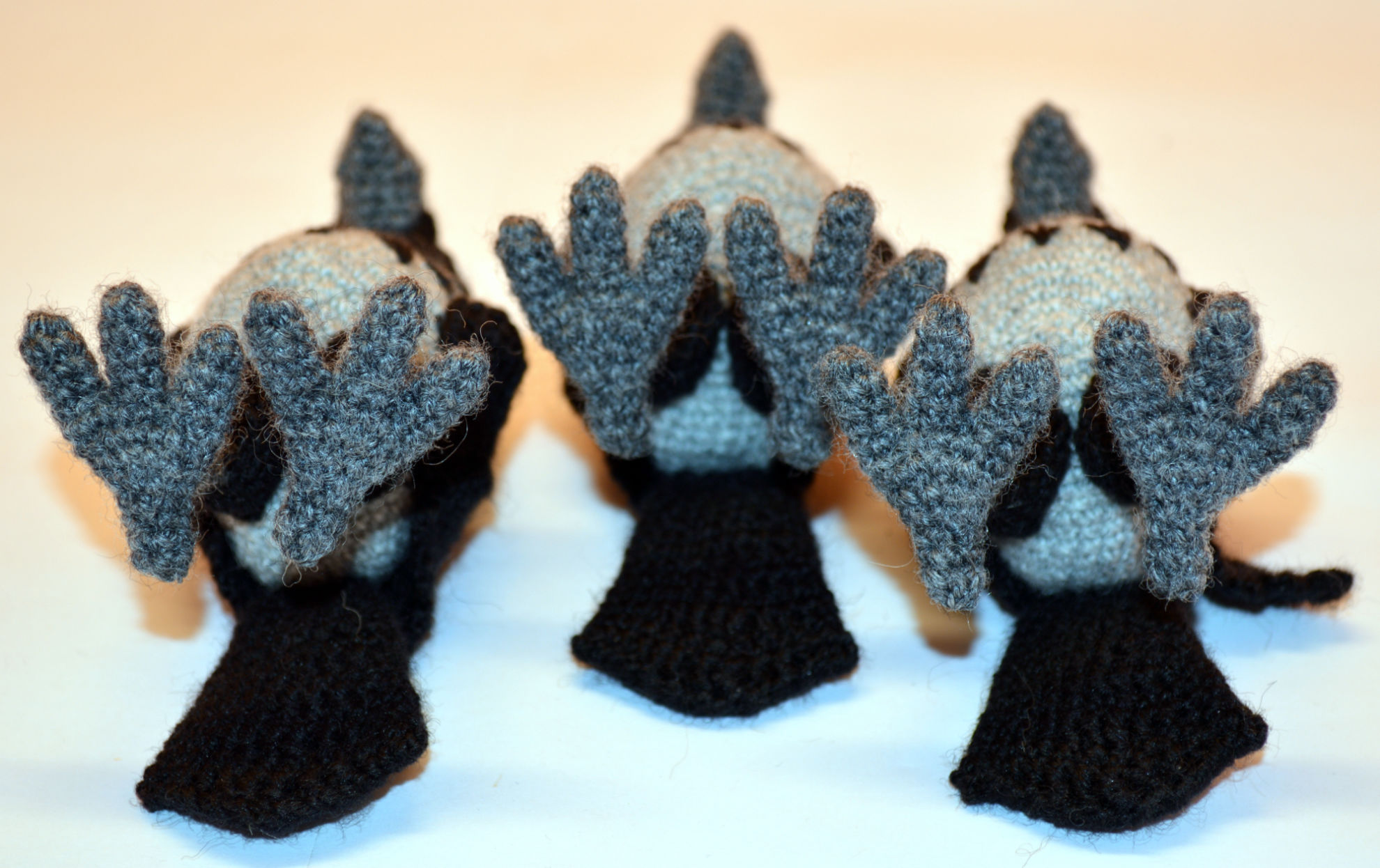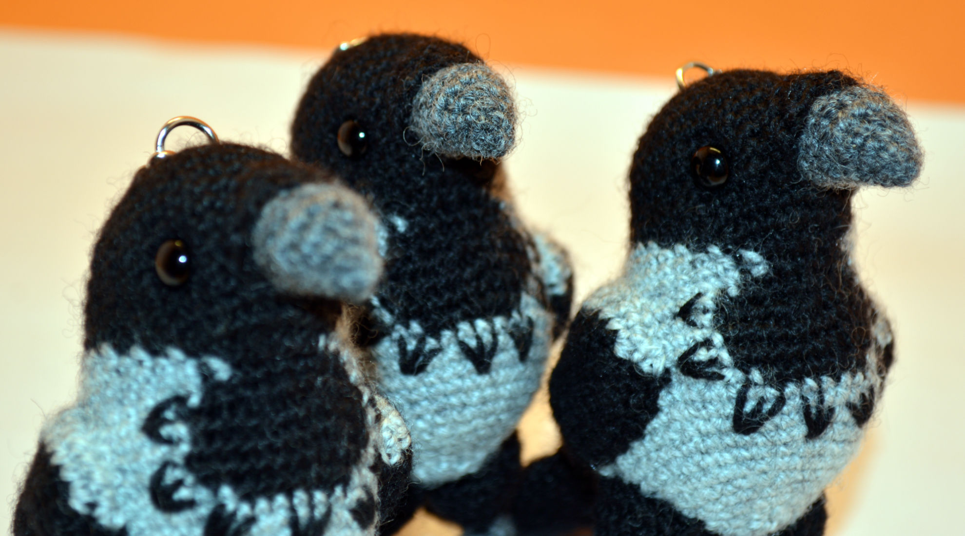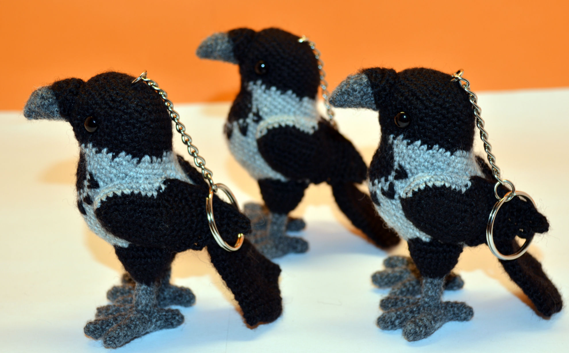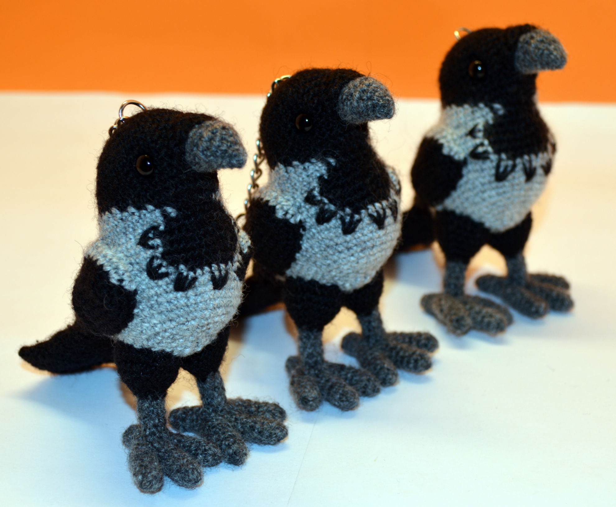 Material: Wolle Schwarz, Silber, Grau, Glasaugen, Bastelwatte