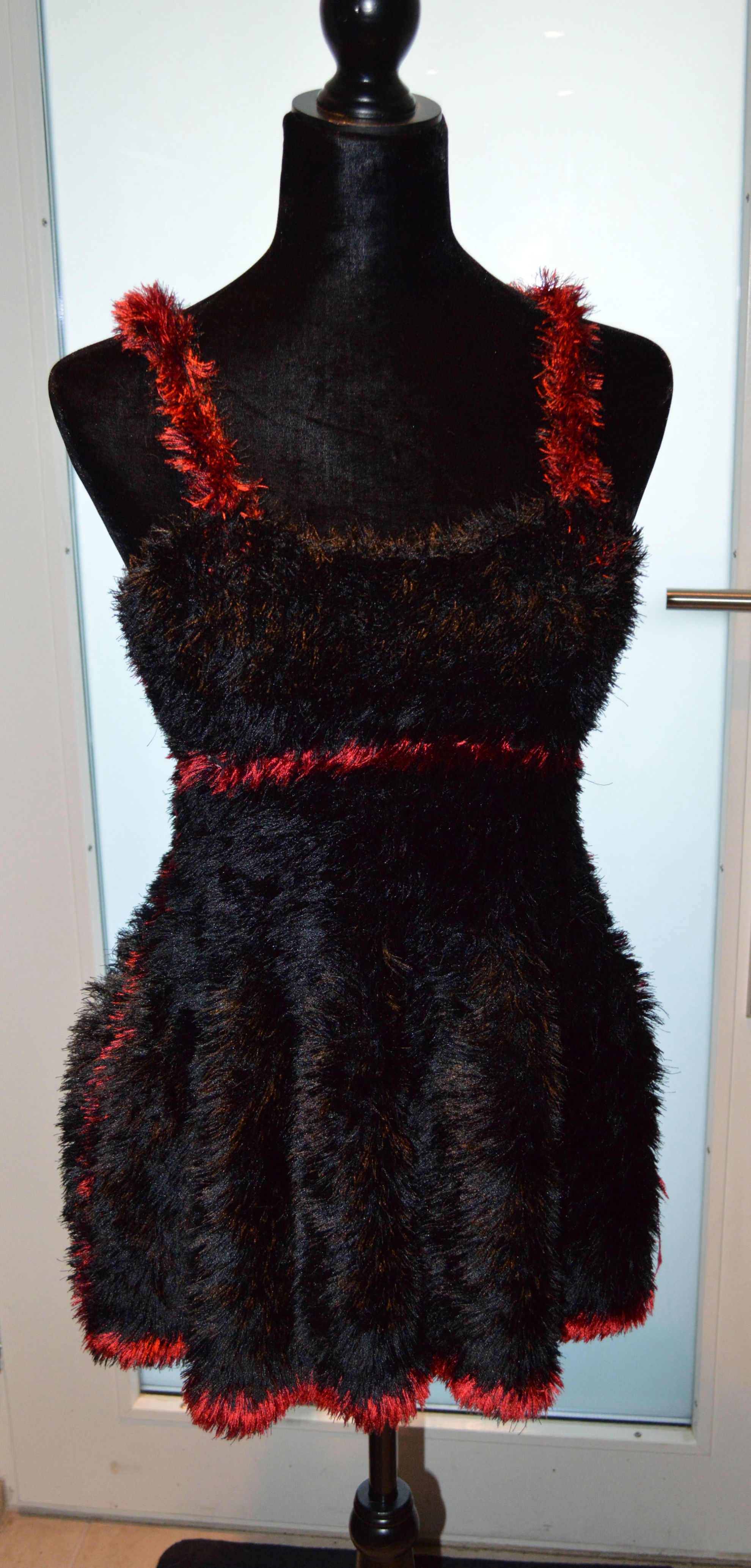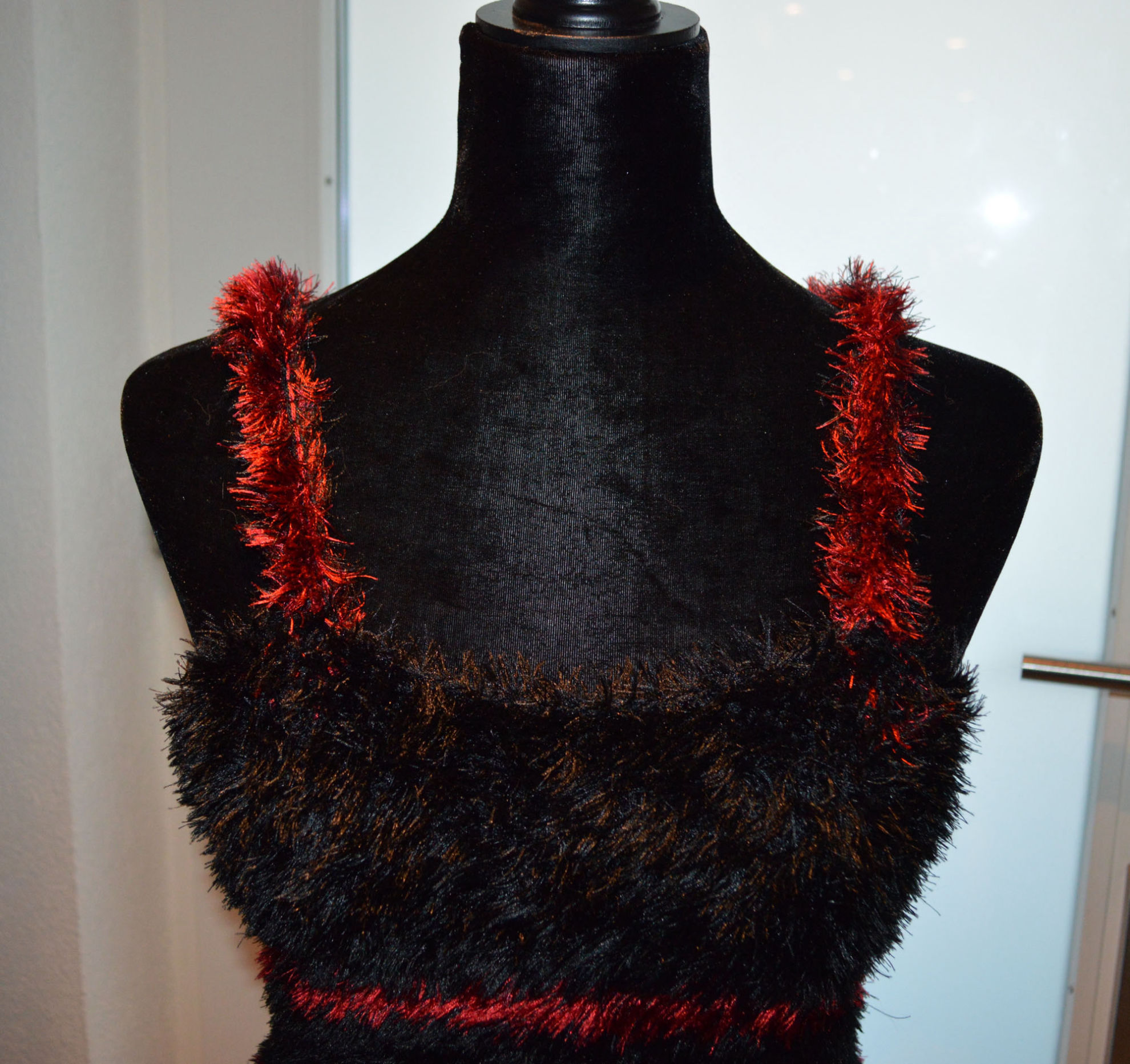 Material: Fransen Garn / Effekt Garn Schwarz Rot