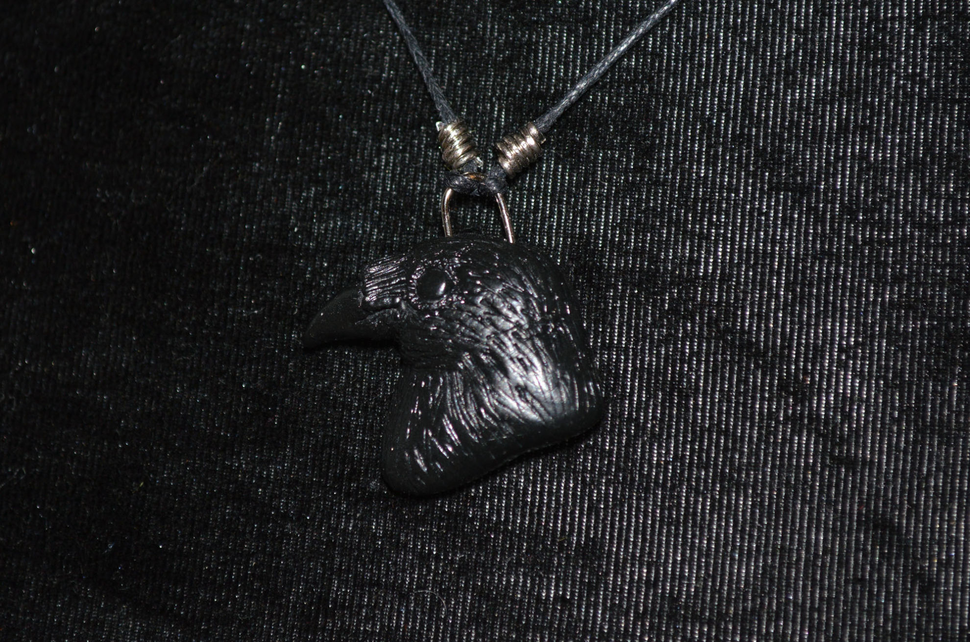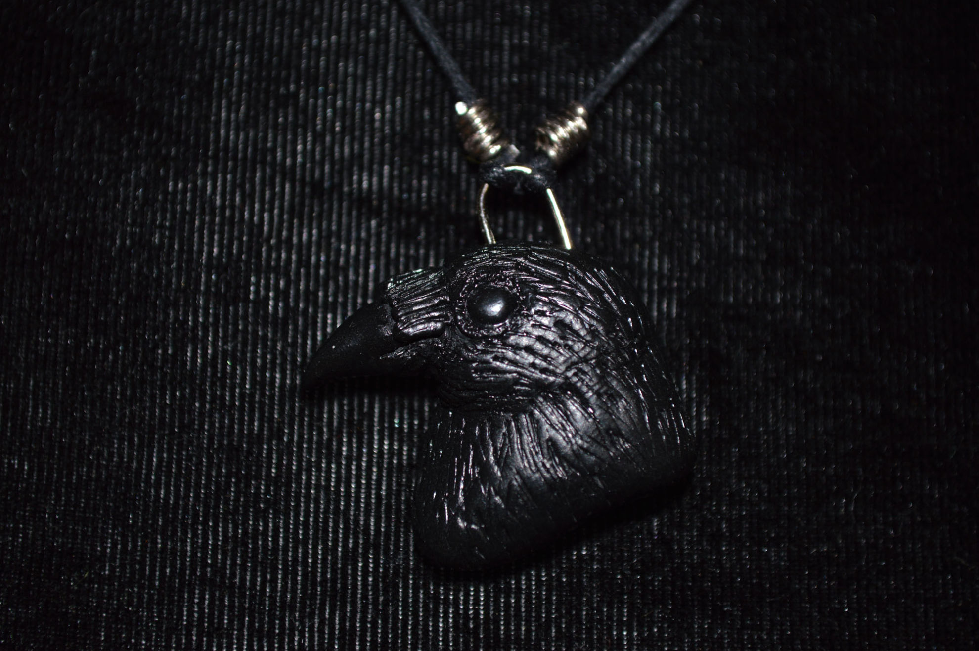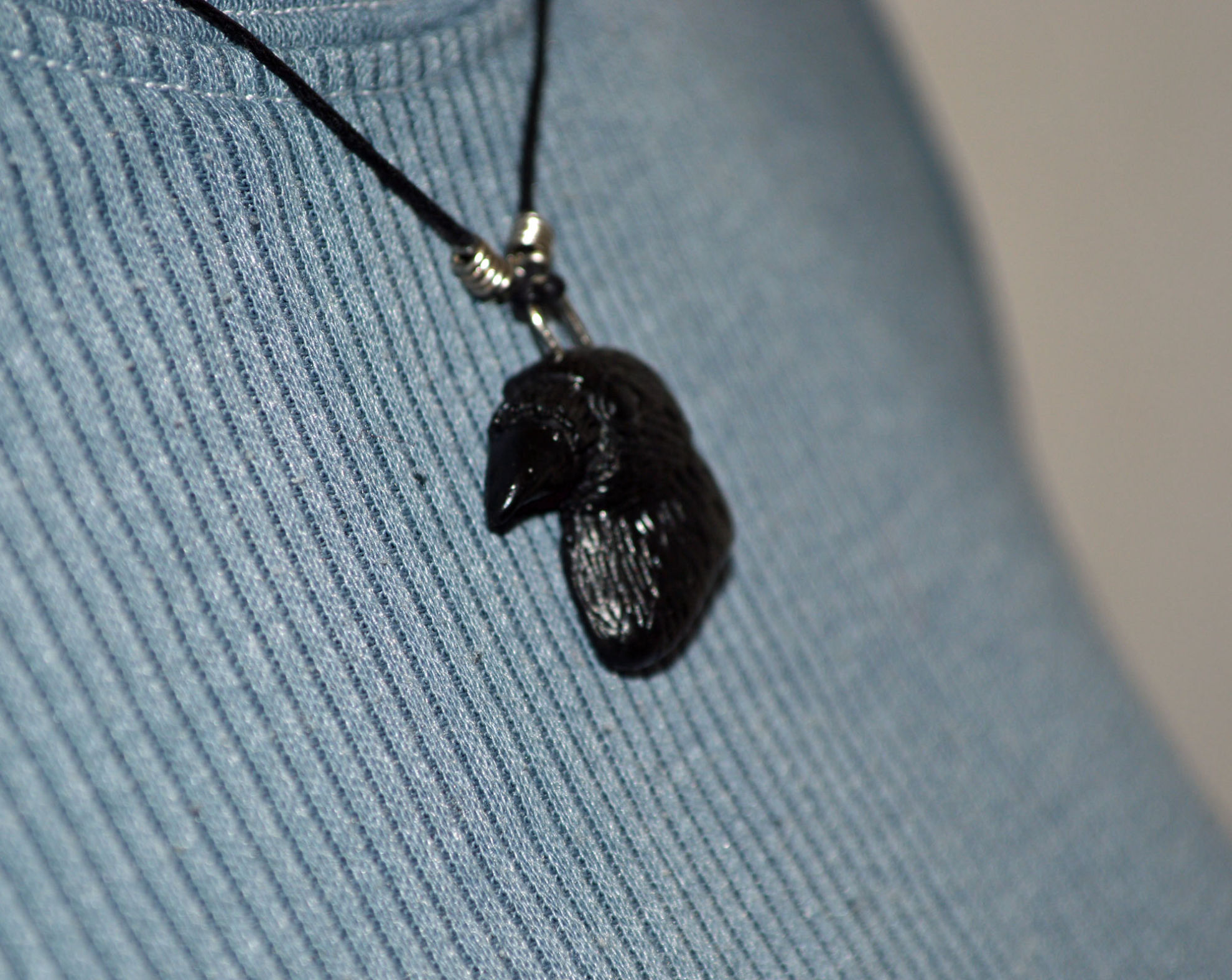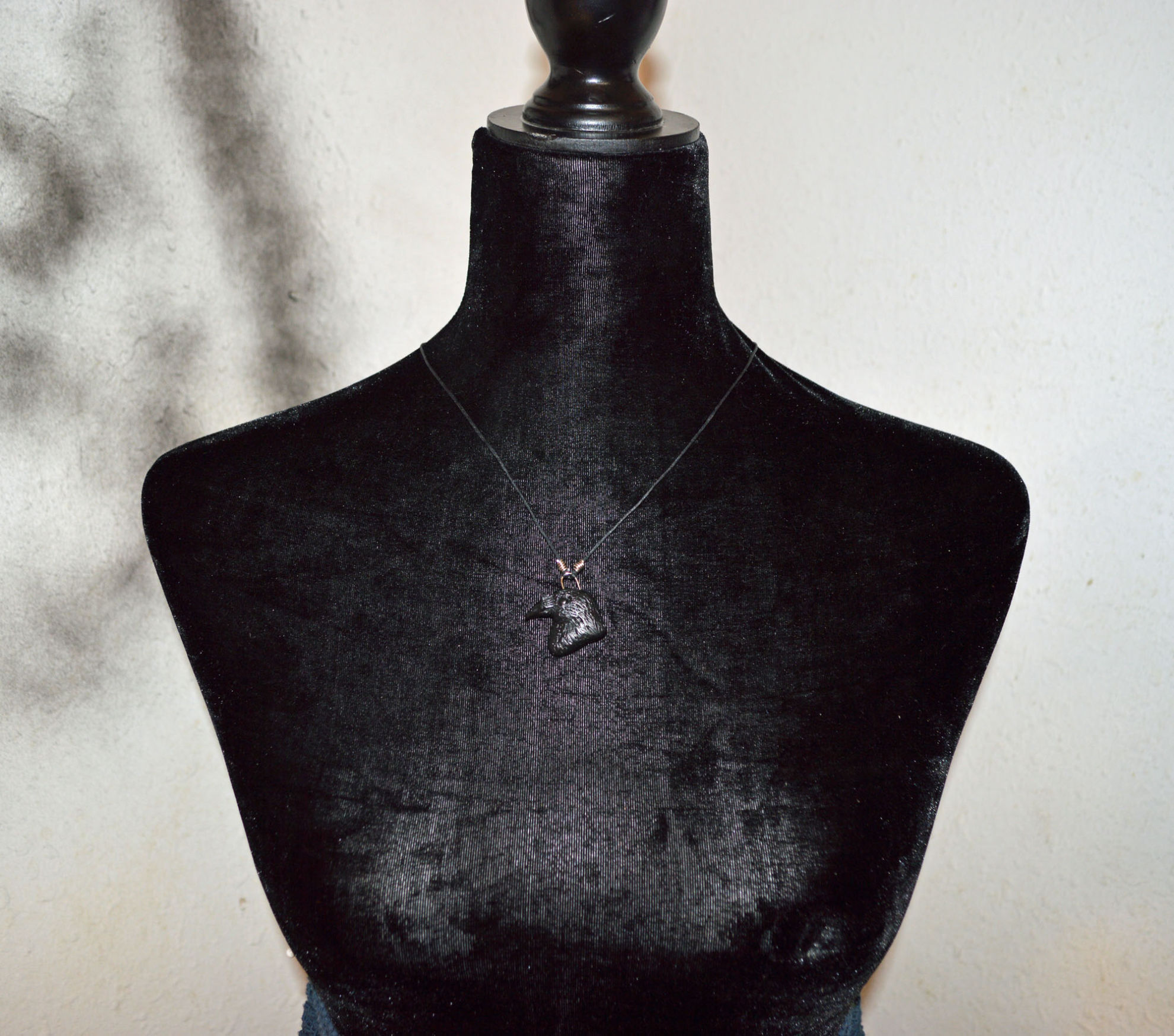 Material: Fimo Schwarz, Baumwollband, Büroklammerdraht,                         Lederbandverschluss
