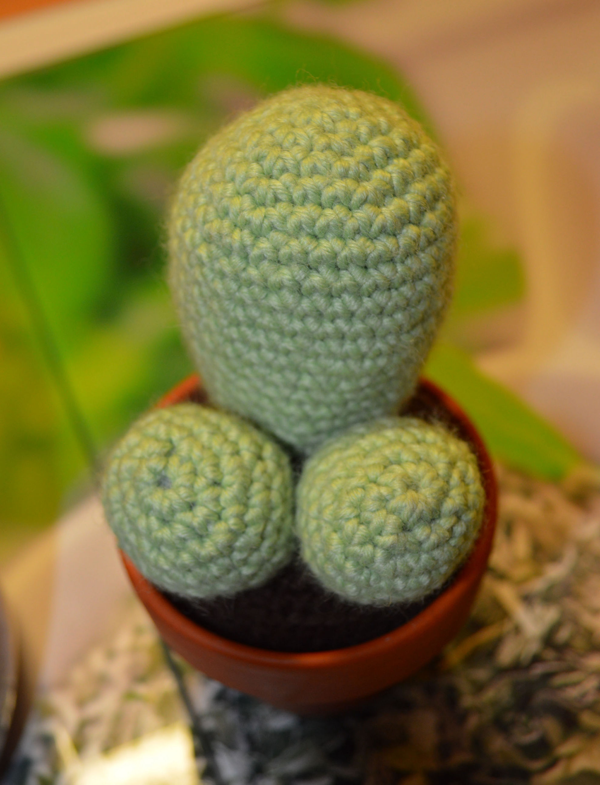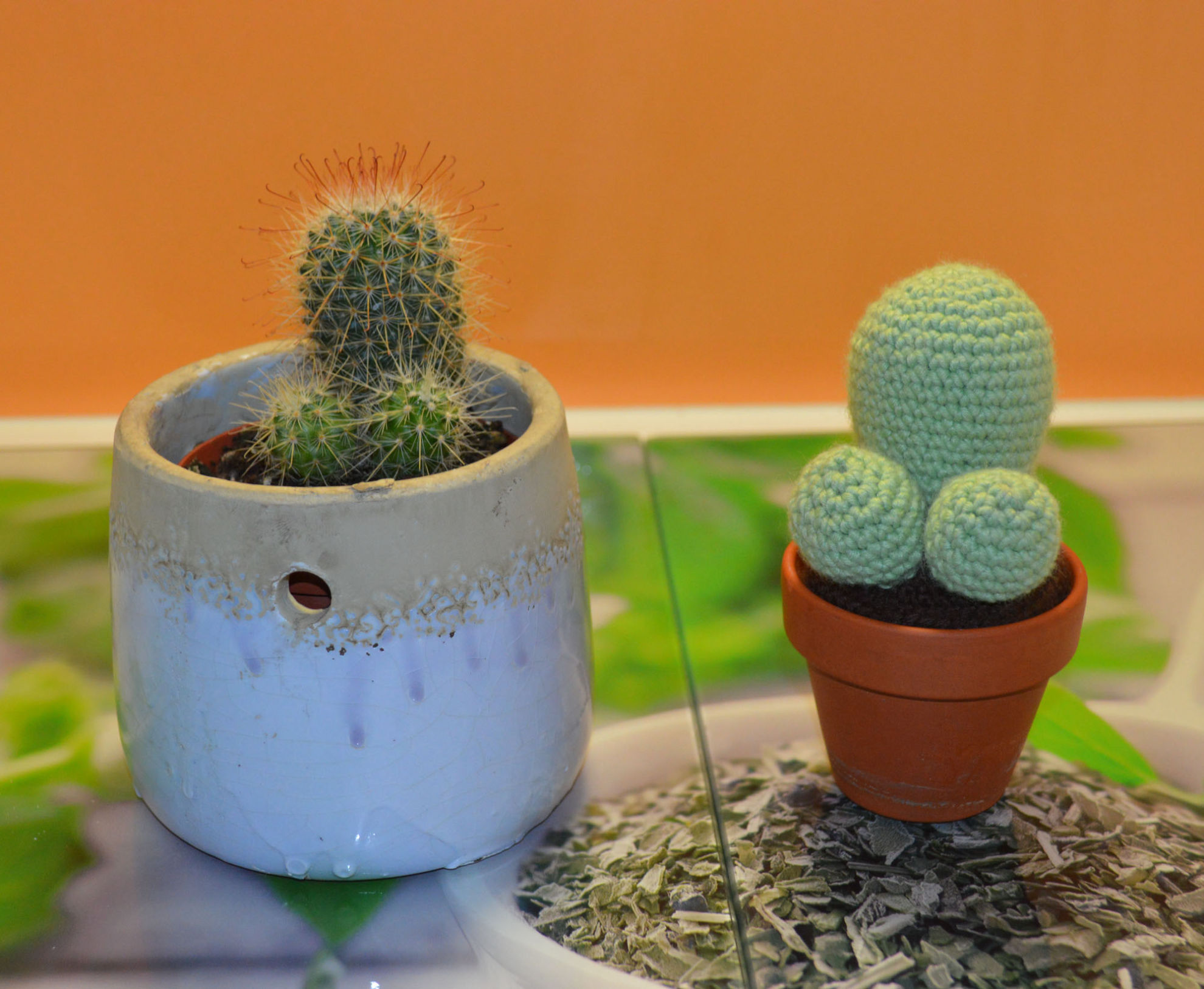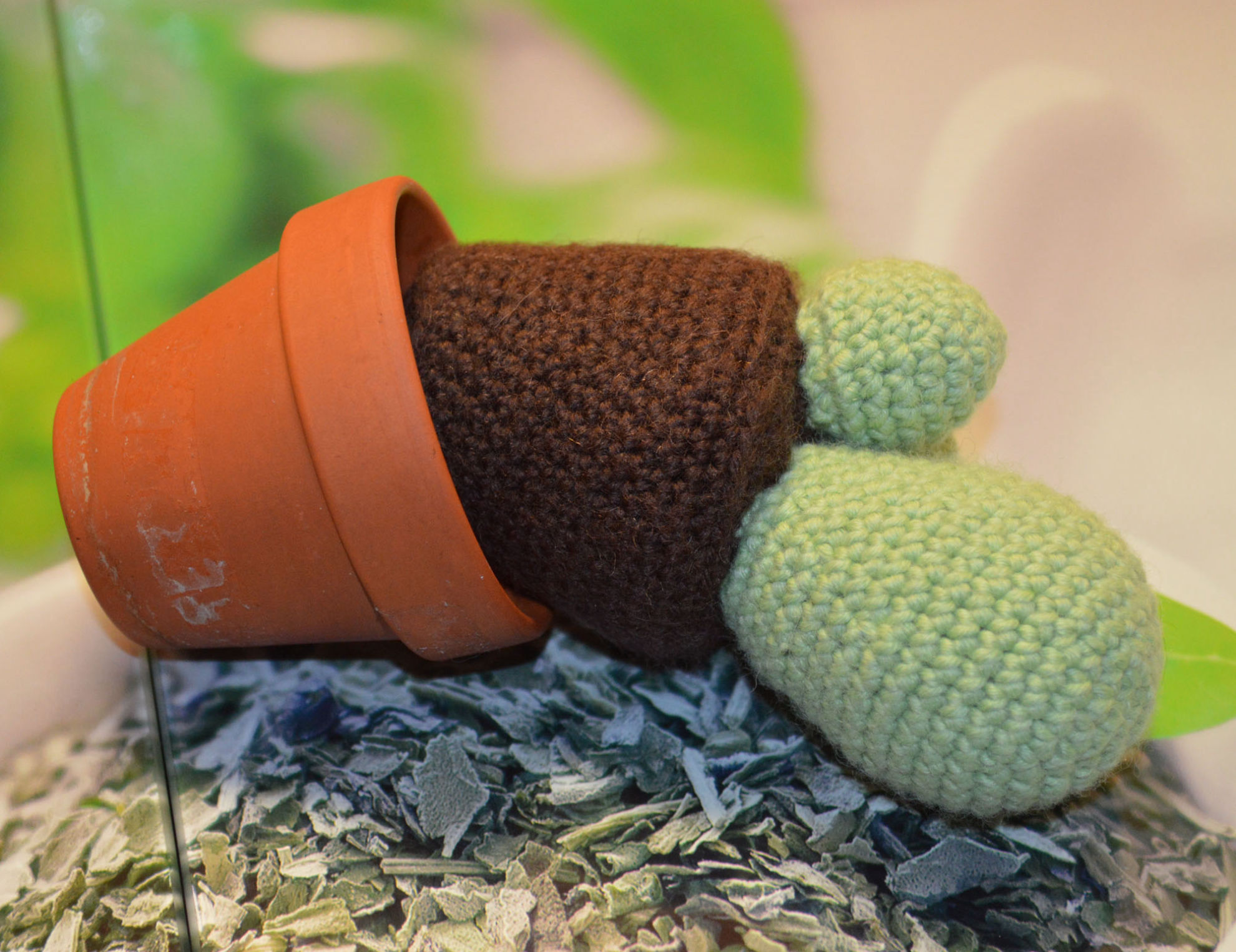 Material: Wolle Grün, Braun, Tontöpfchen, Bastelwatte