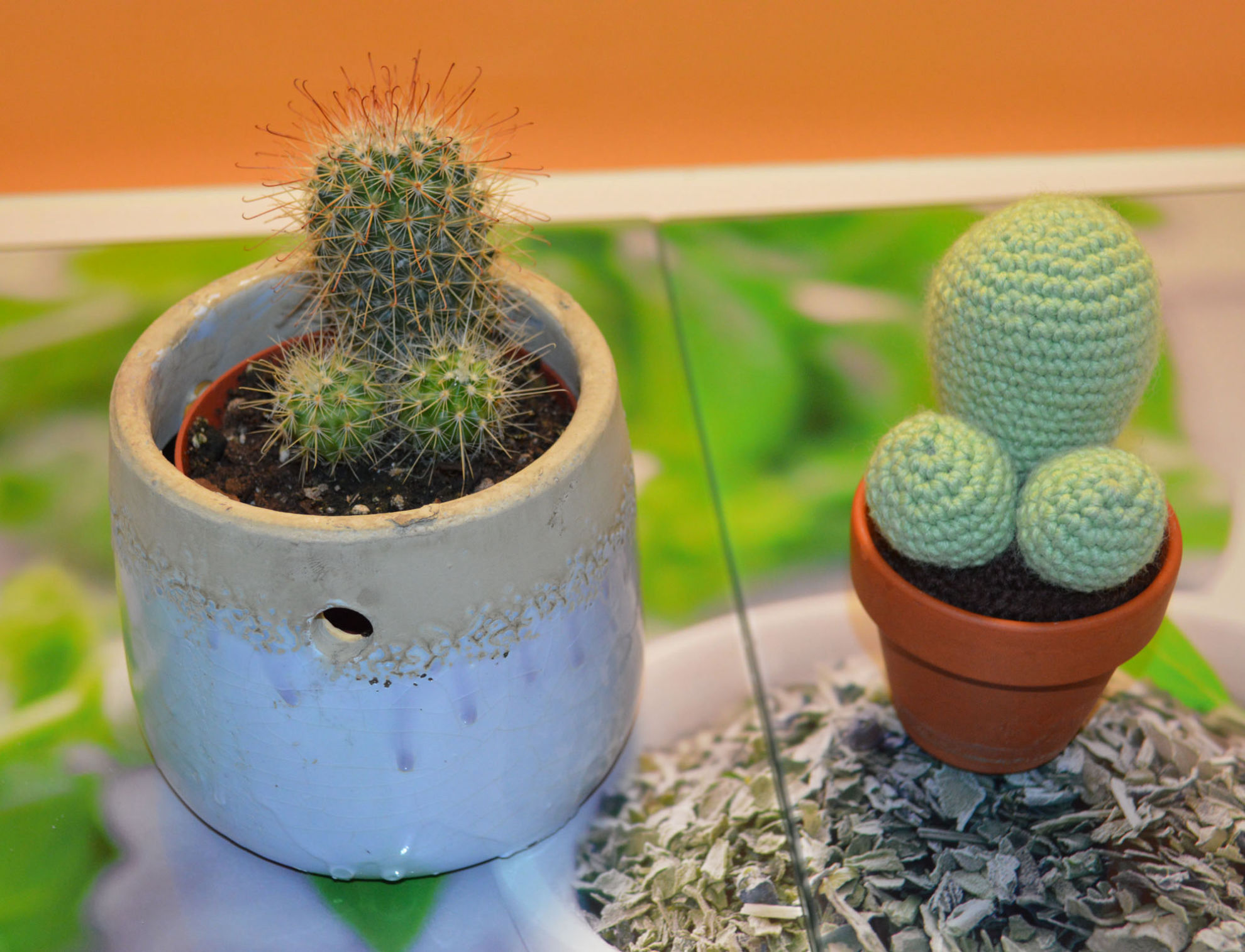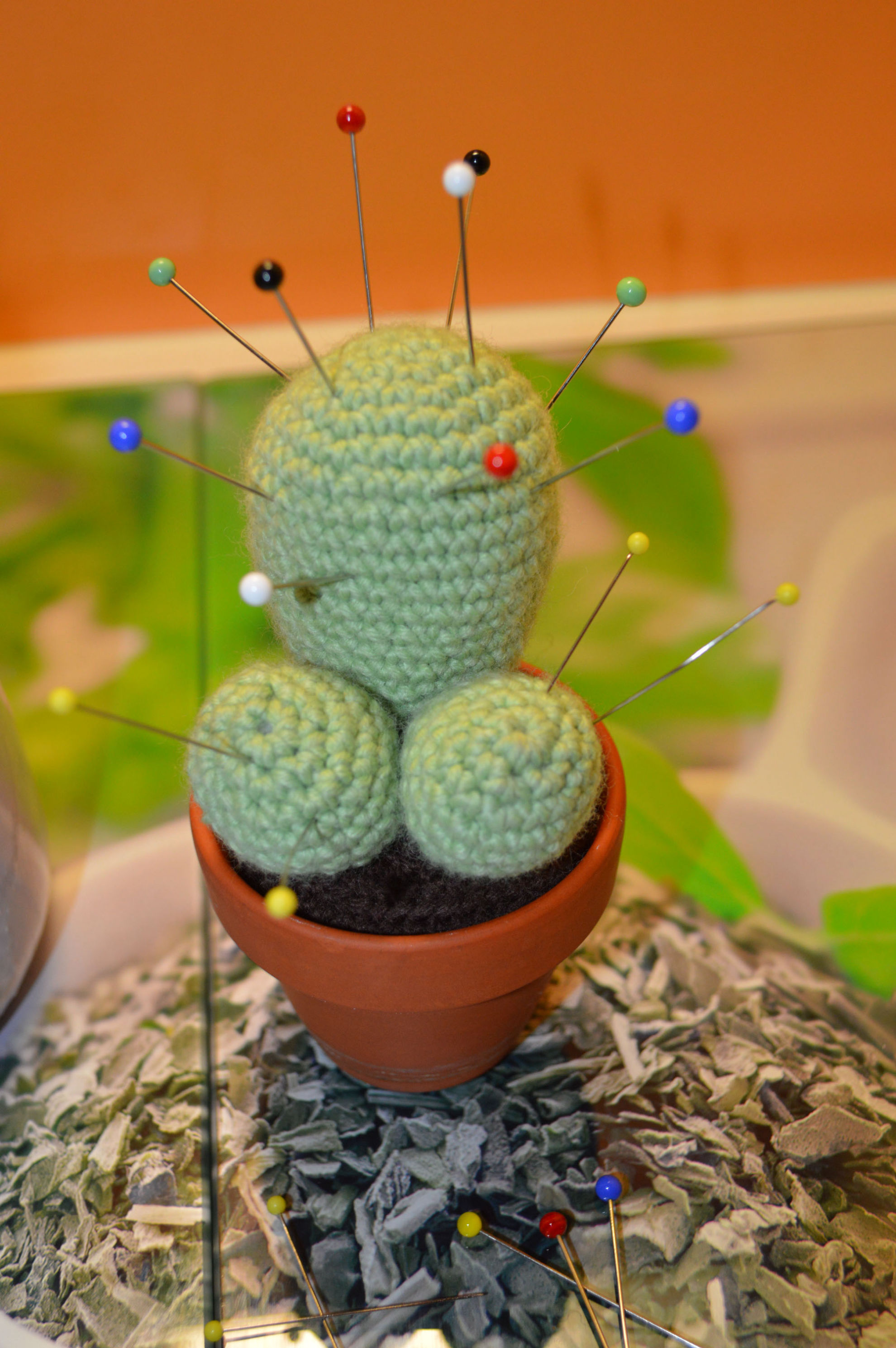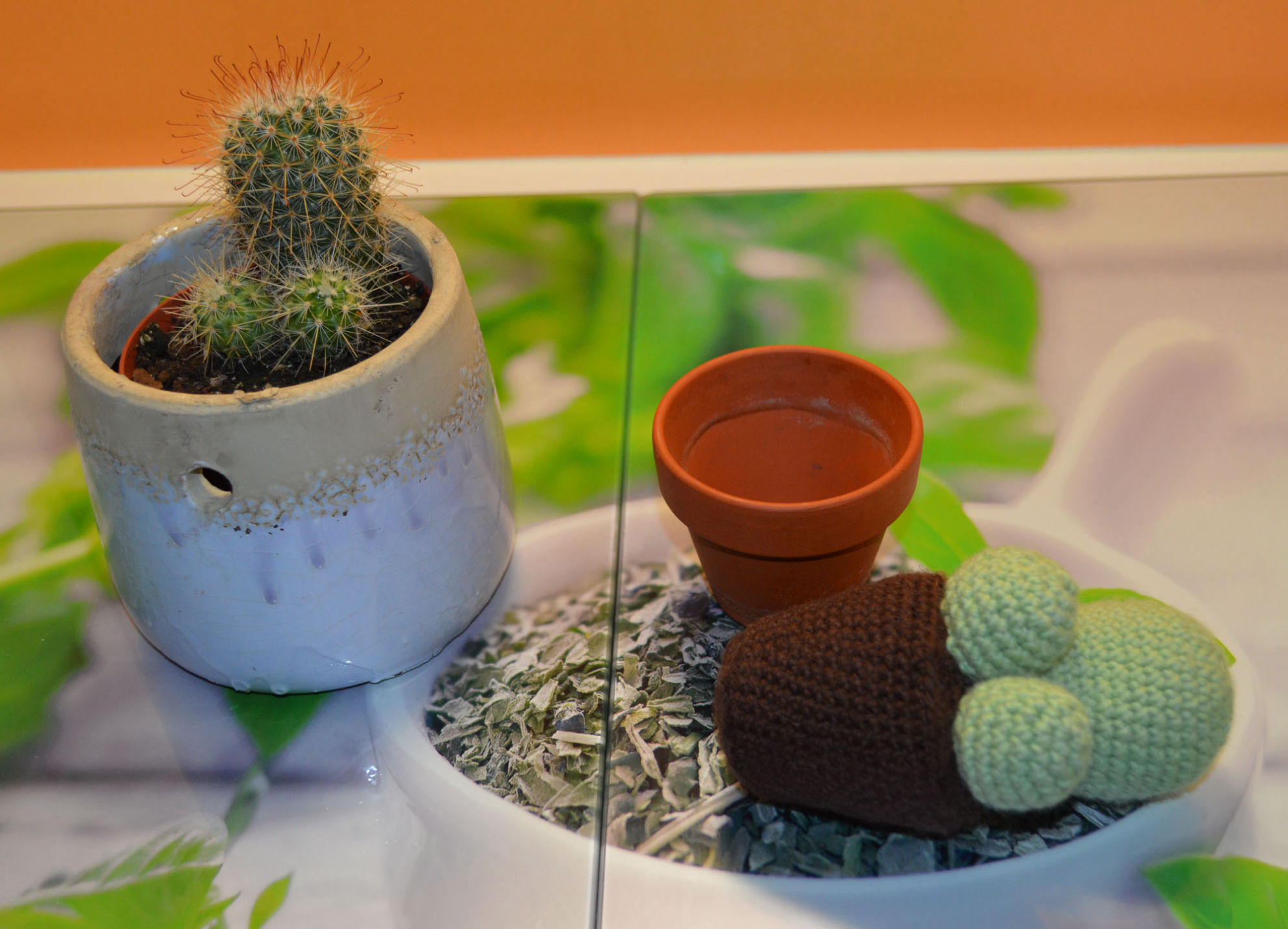 Material: Wolle Grün, Braun, Tontöpfchen, Bastelwatte
