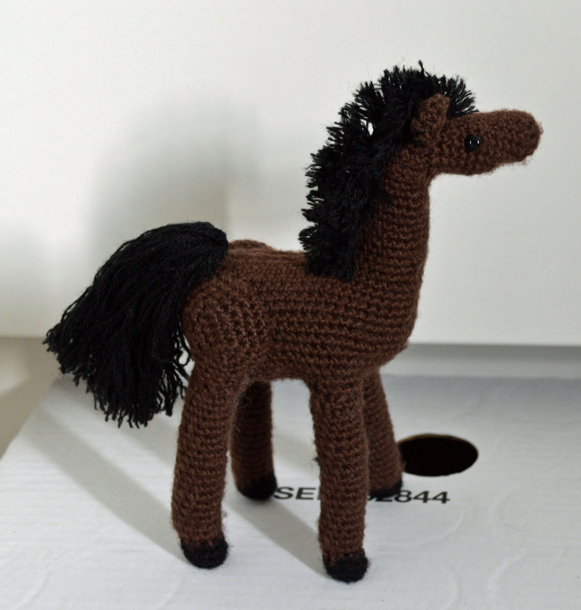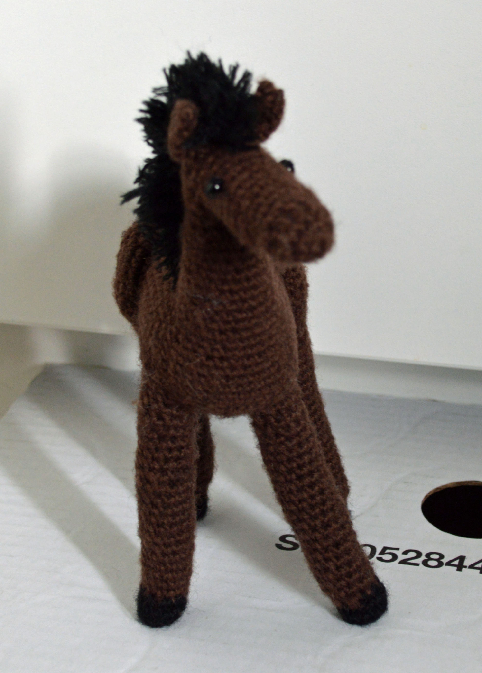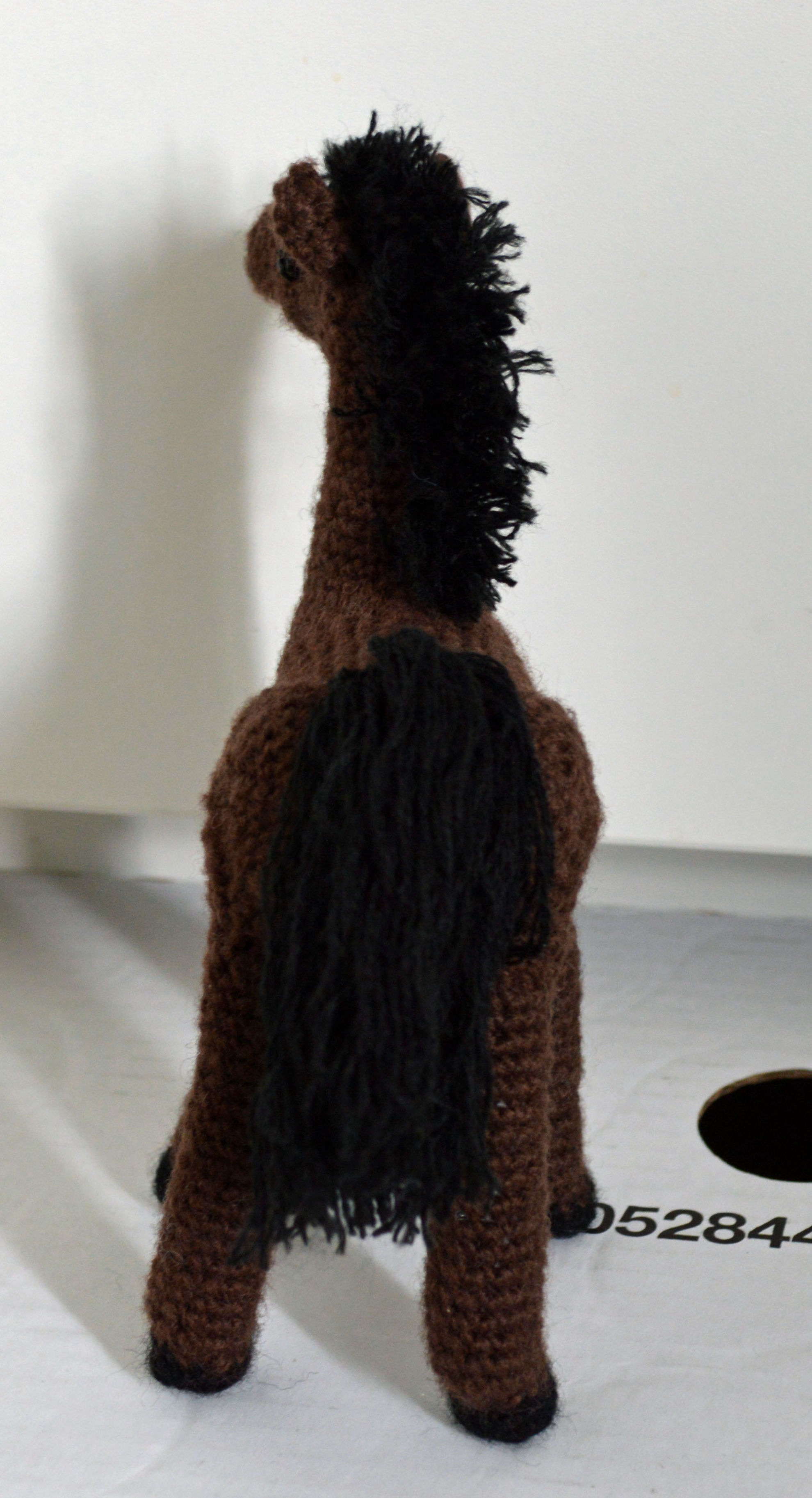 Material: Wolle Braun, Schwarz, Perlenaugen, Bastelwatte