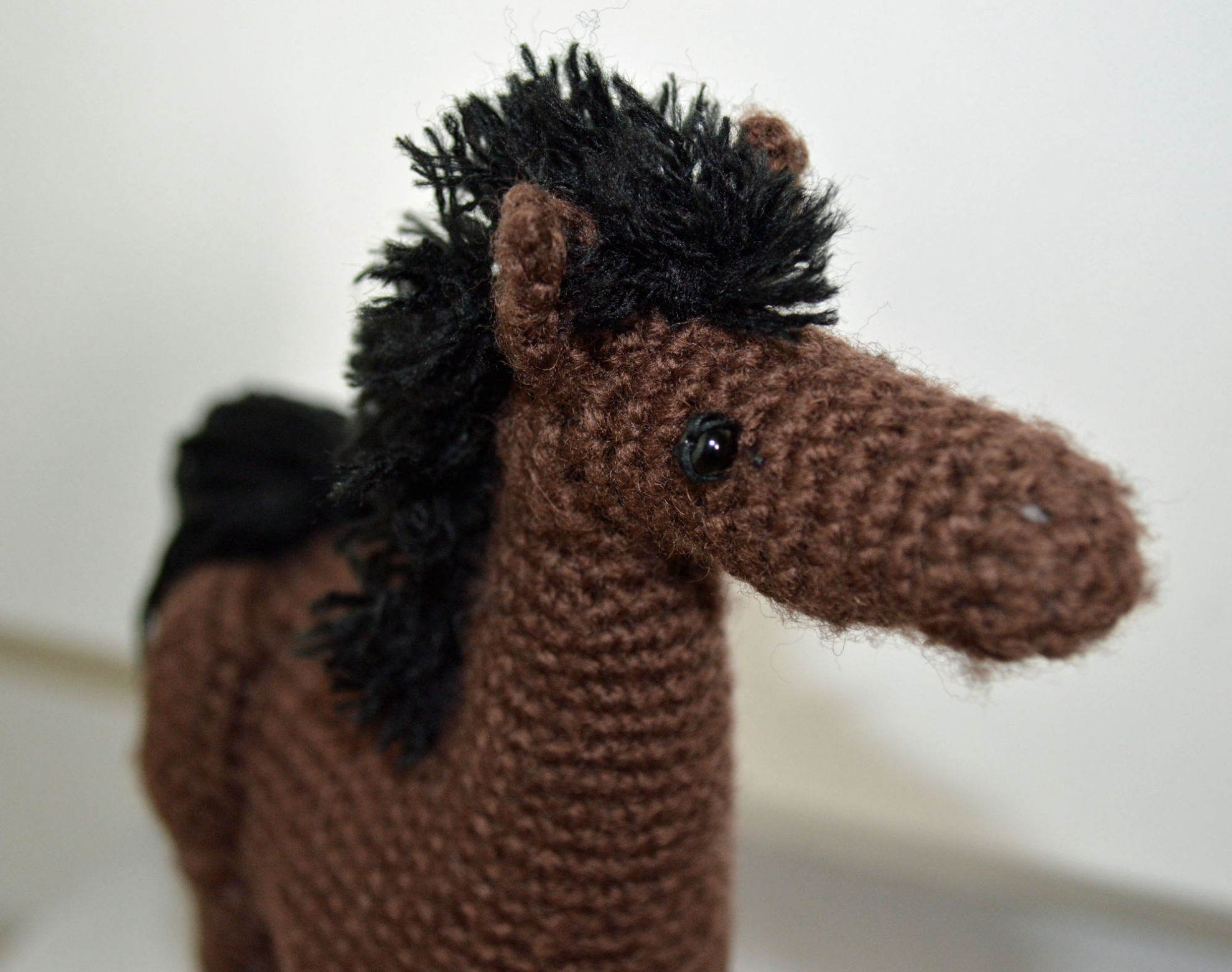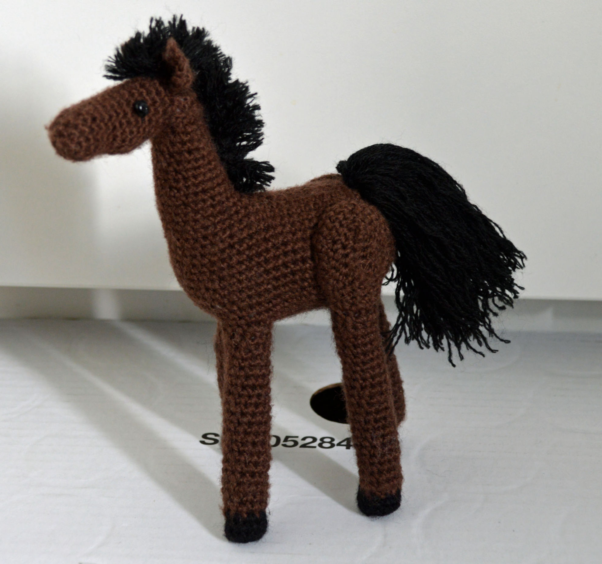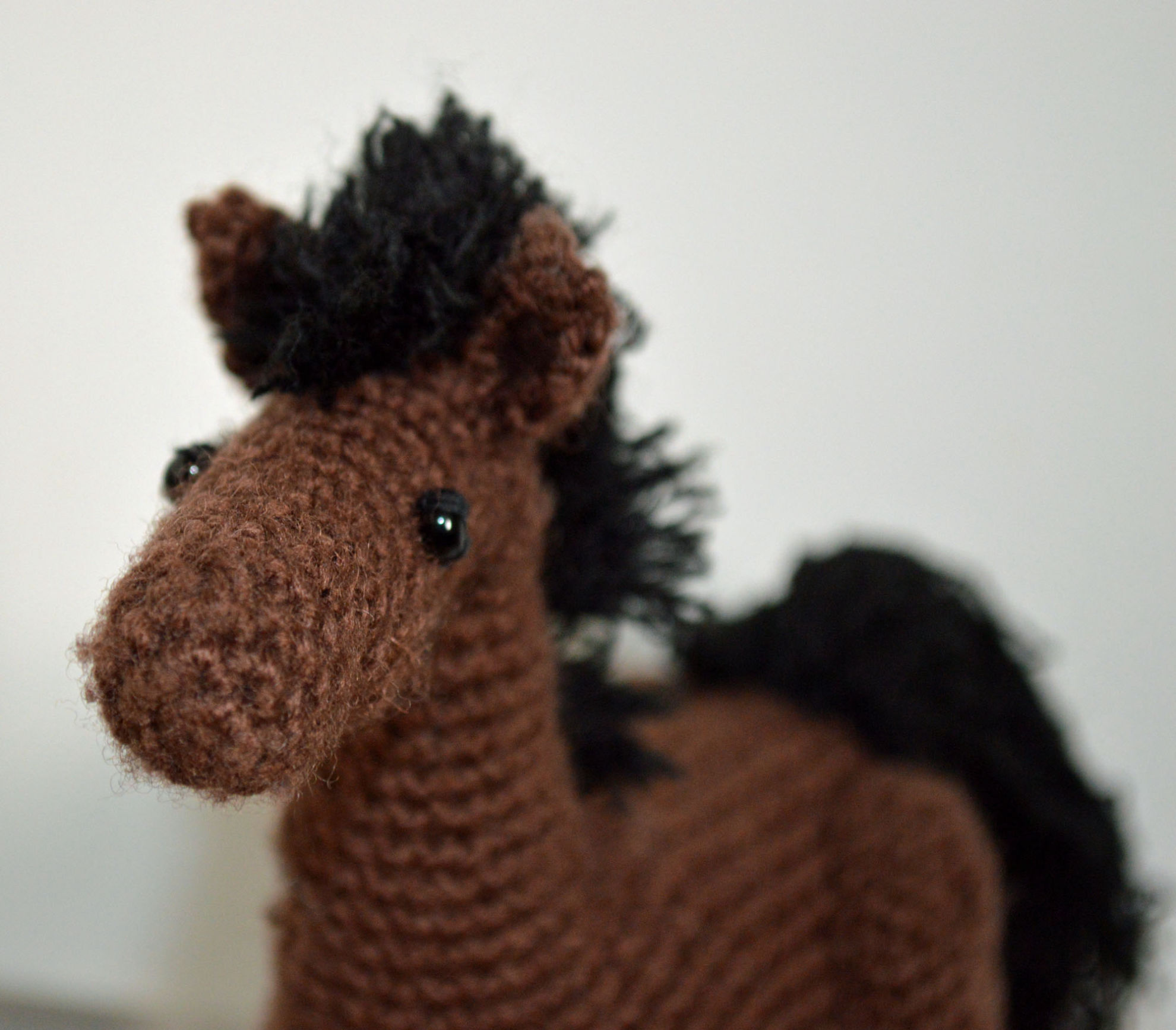 Material: Wolle Braun, Schwarz, Perlenaugen, Bastelwatte