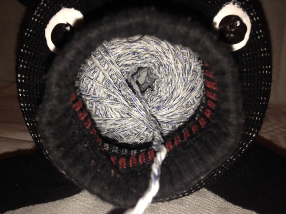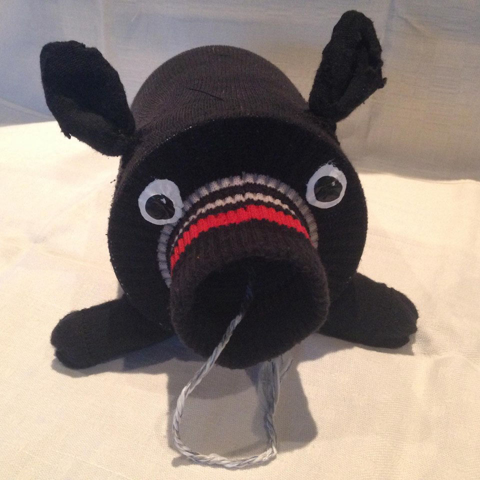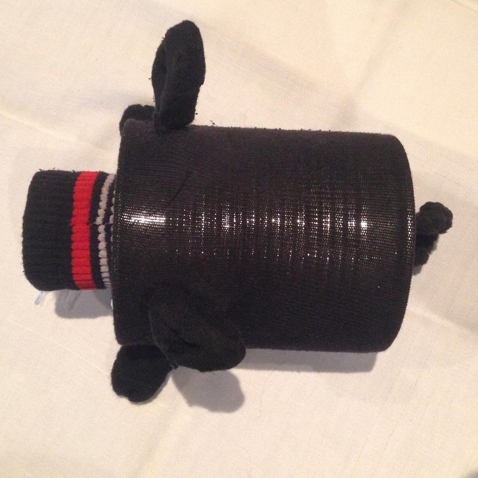 Material: Saubere gewaschene Alte Socke, Aludose,                                          Bauernmalfarbe, Paketschnur
