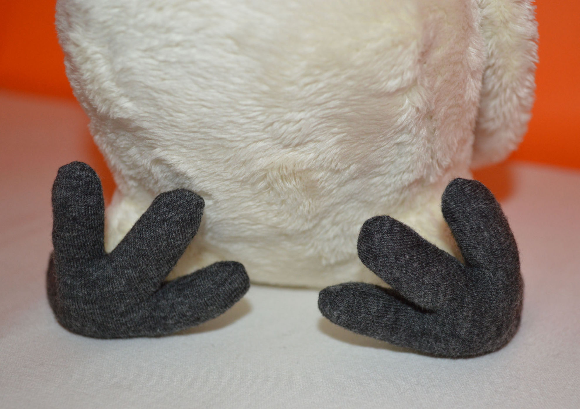 Material: Teddystoff Weiss, Jerseystoff Grau, Glasaugen,                               Bastelwatte