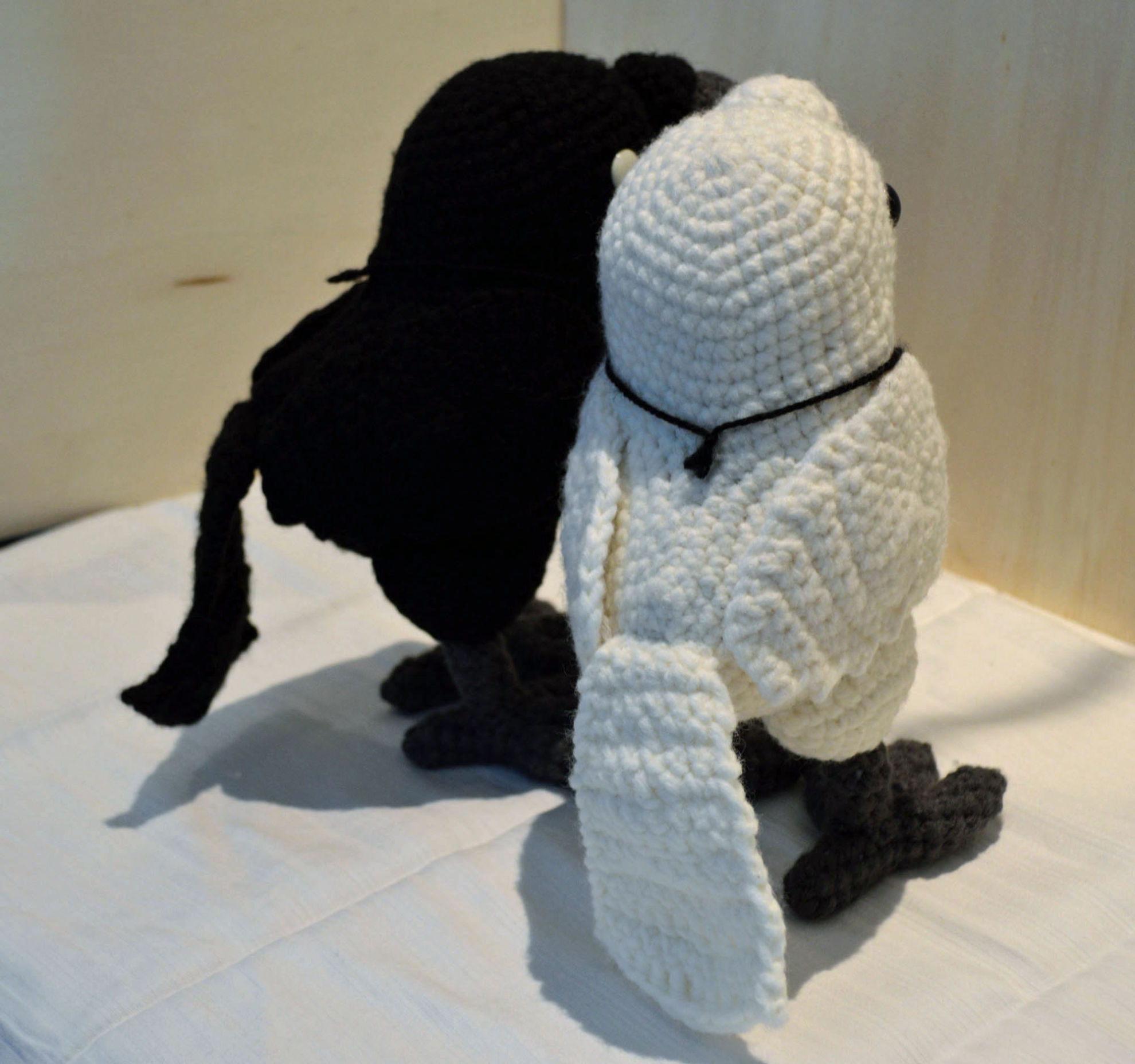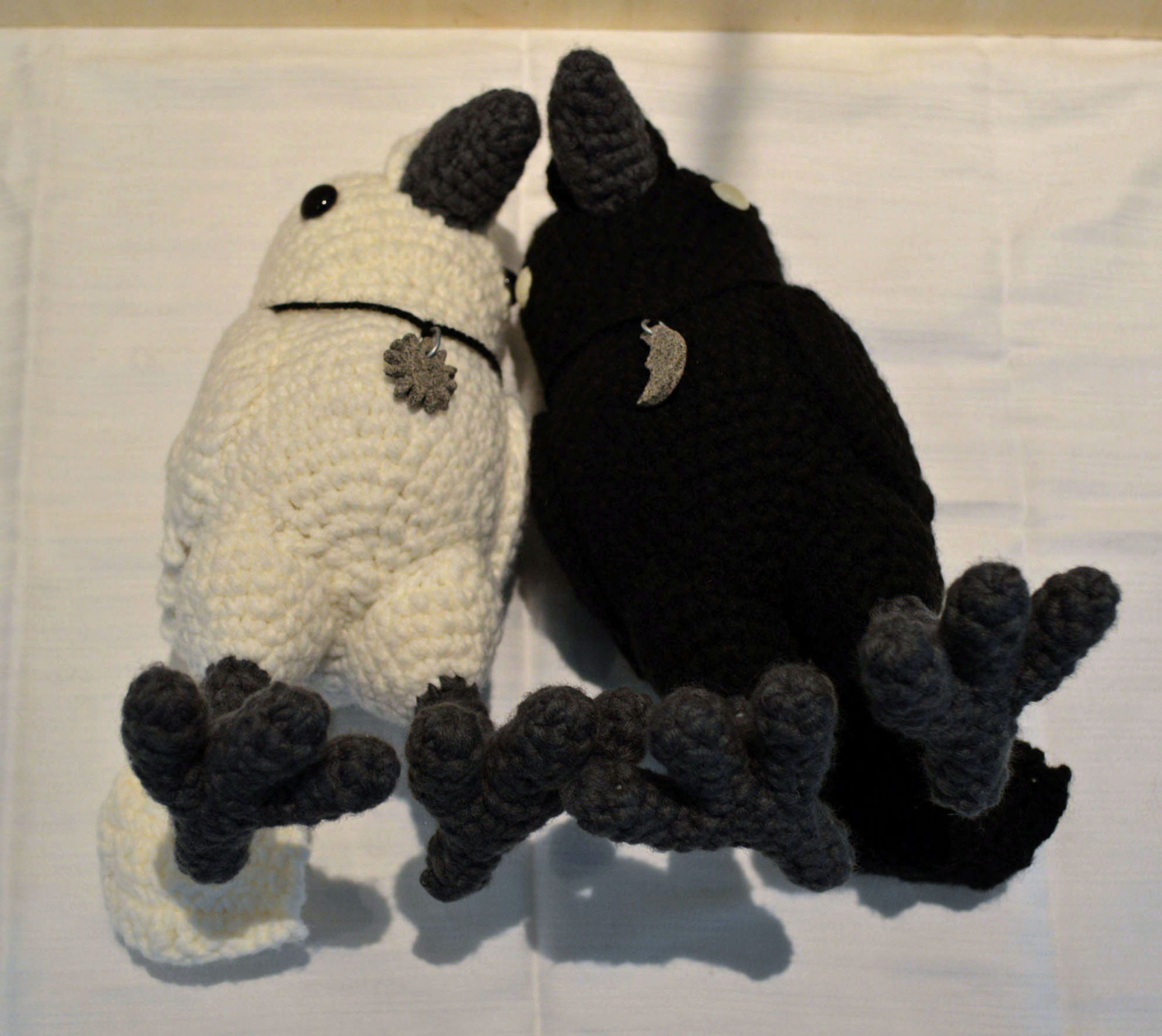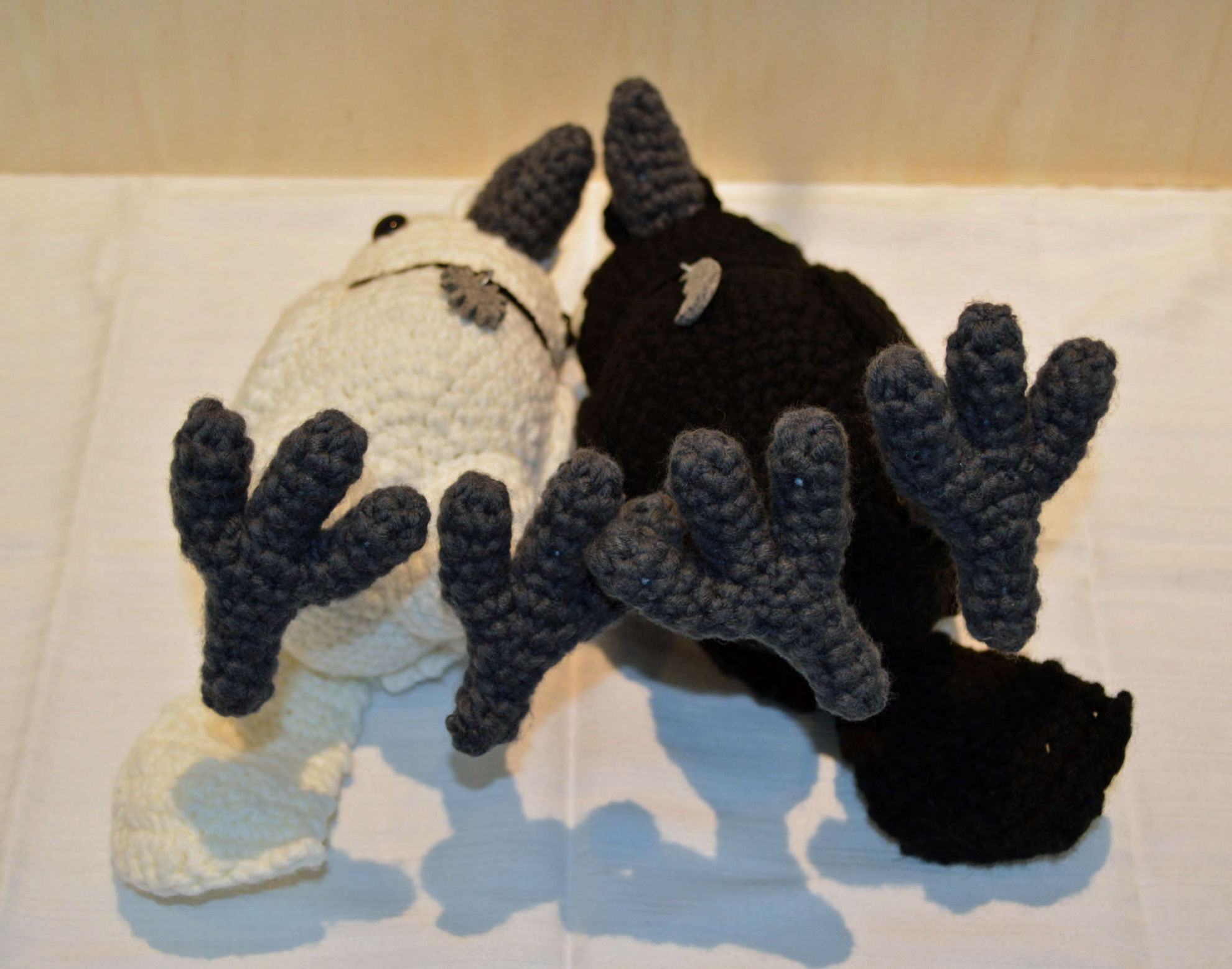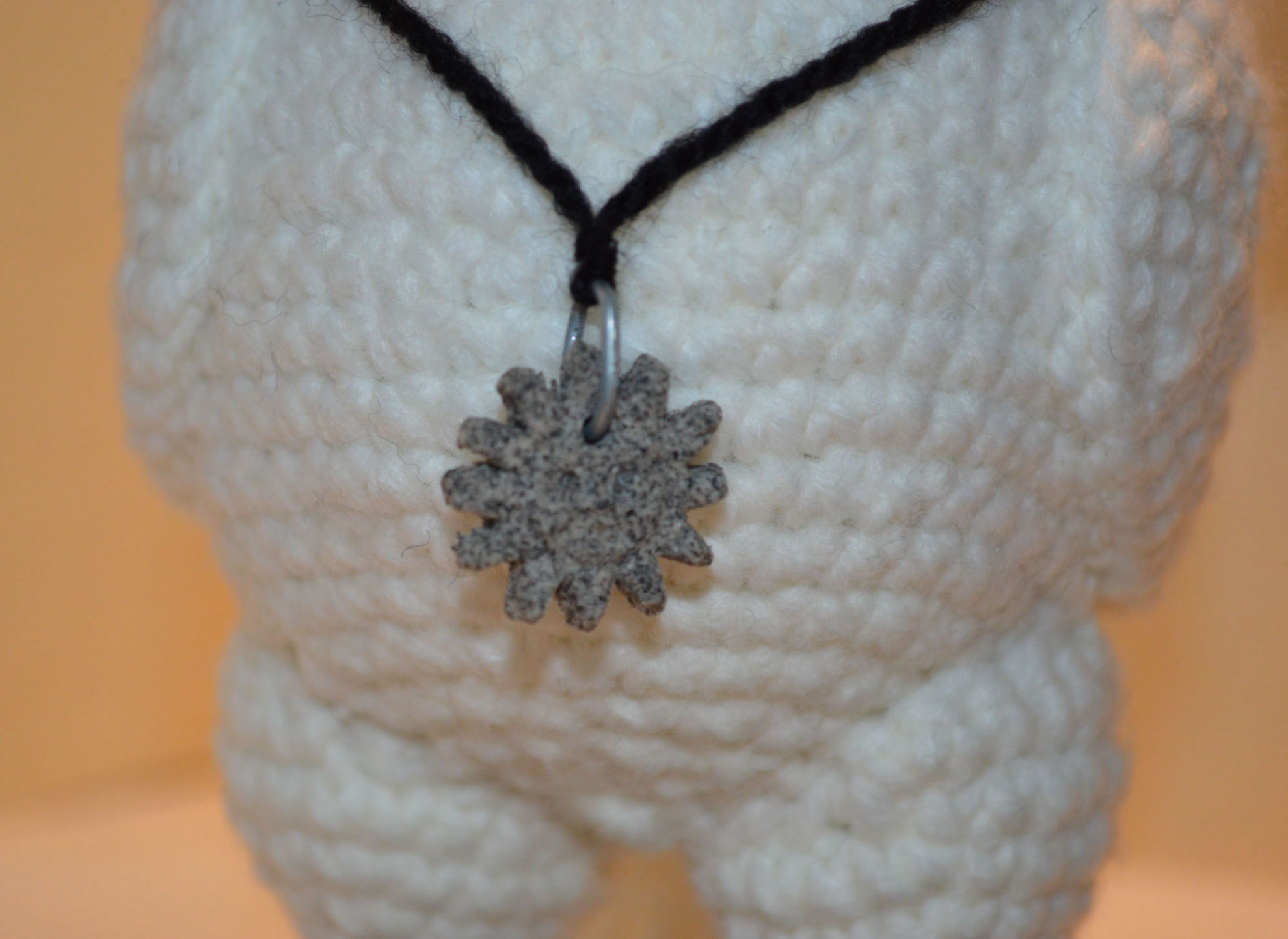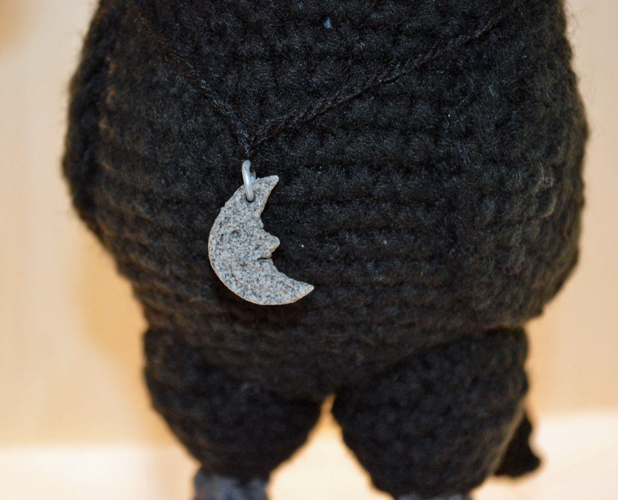 Material: My Boshi Garn No. 1, Schwarz, Weiss, Grau, Bastelwatte, Anhänger Keramiplast "Stone"