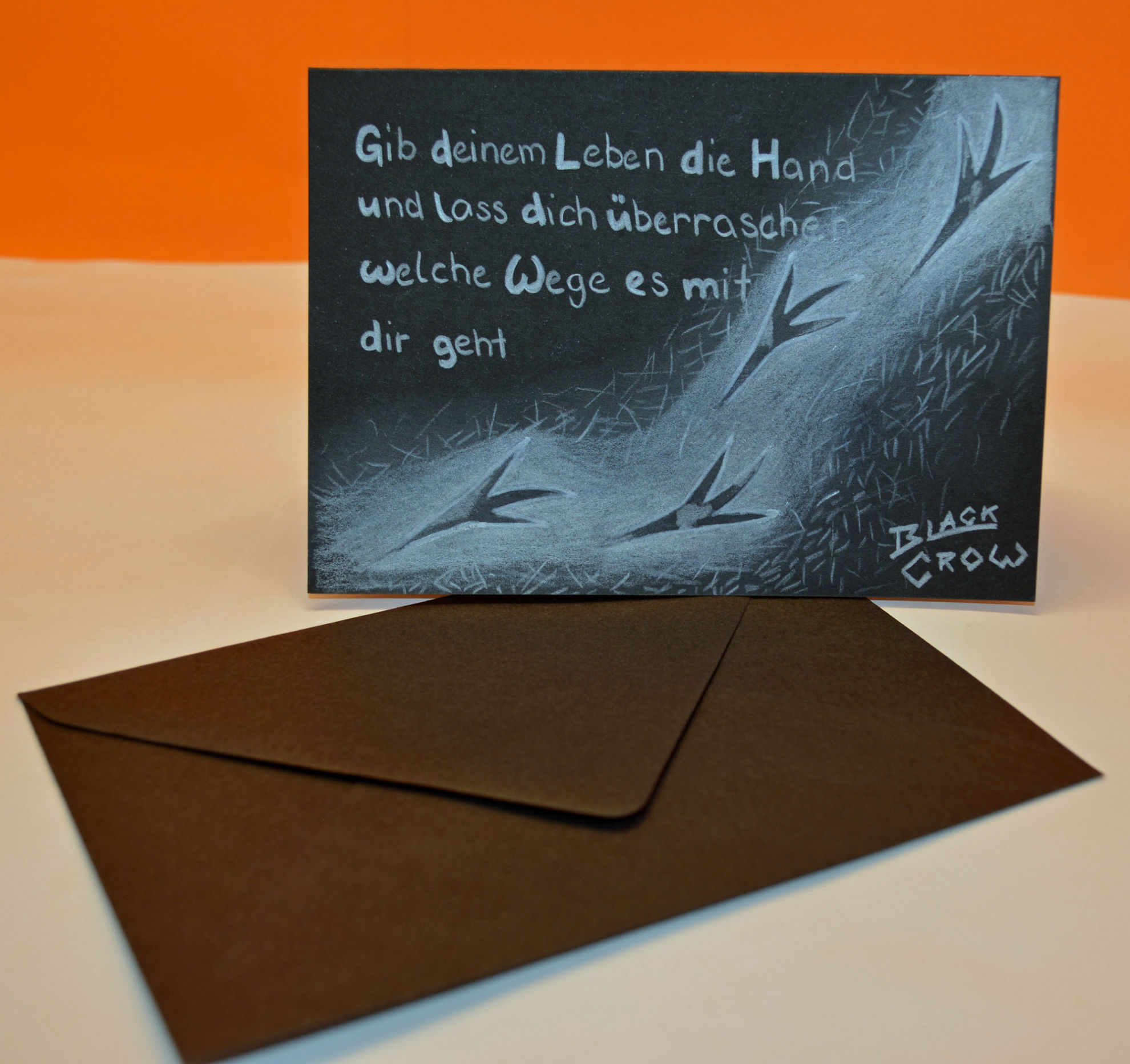 Material: Doppelkarte Papier A6 Schwarz und Briefumschlag                        Papier C6 Schwarz