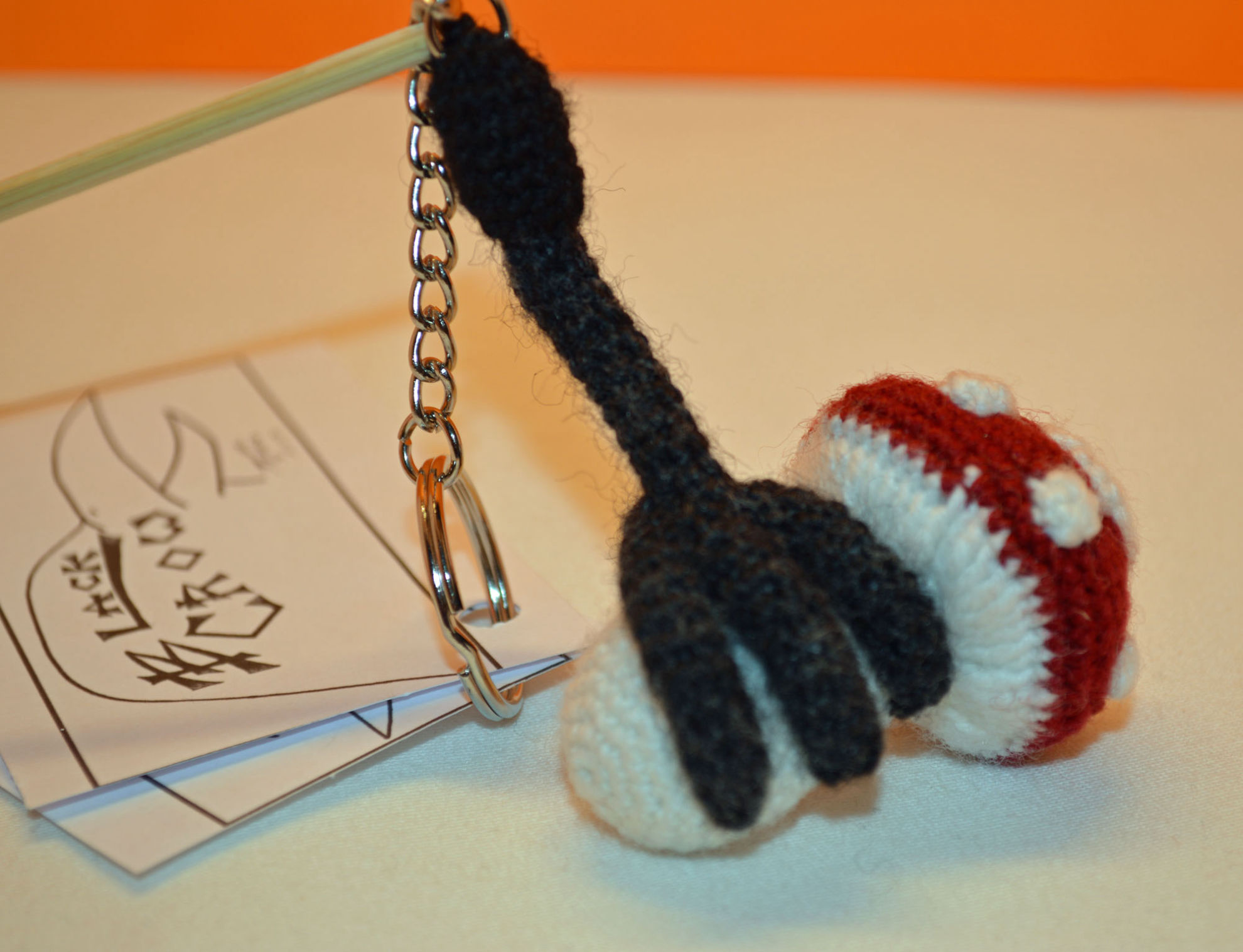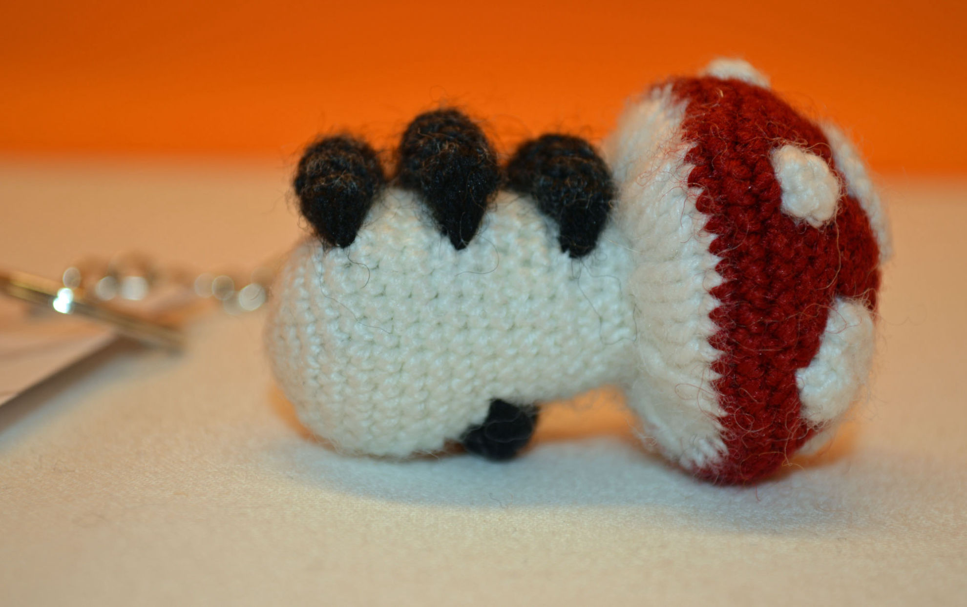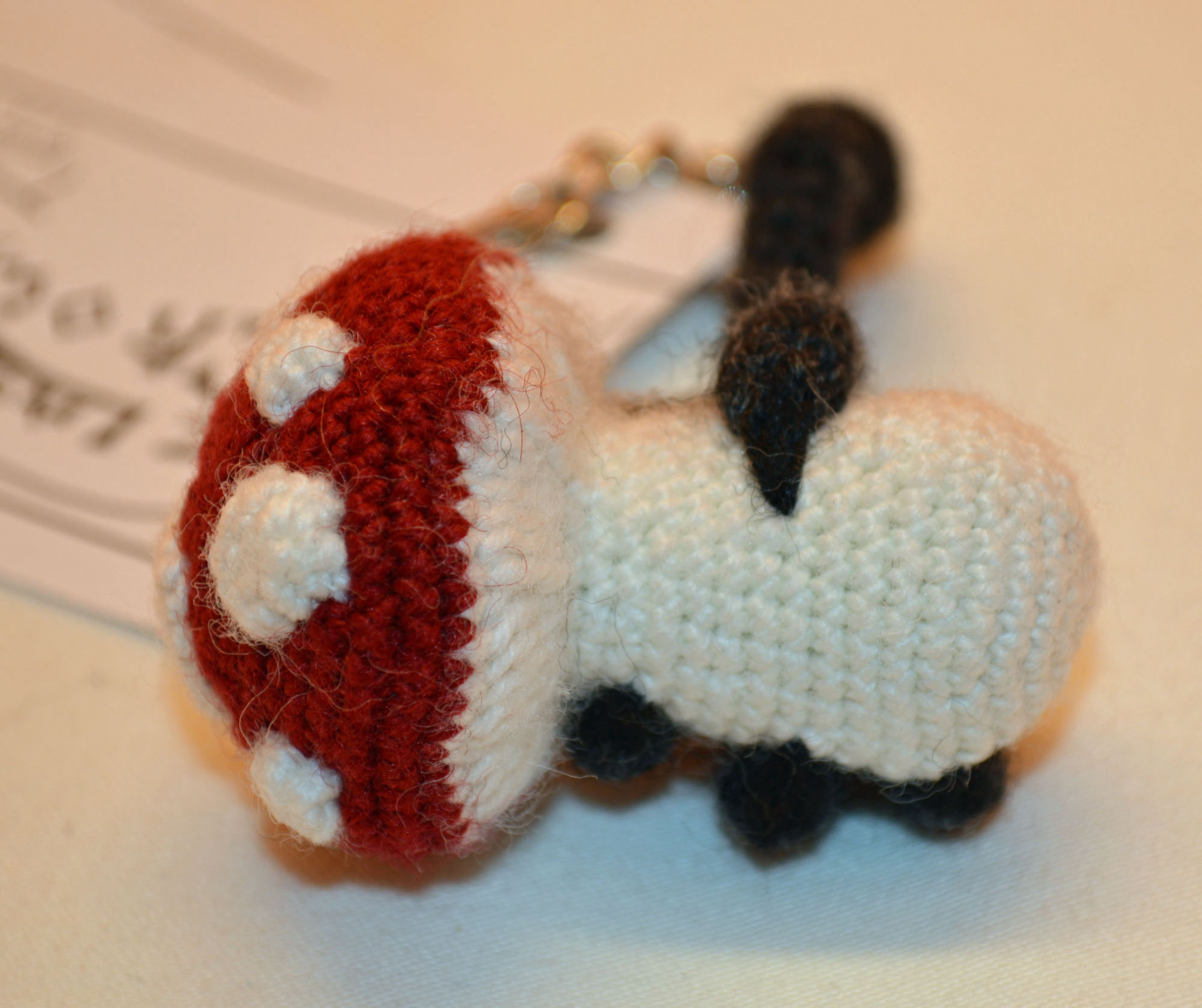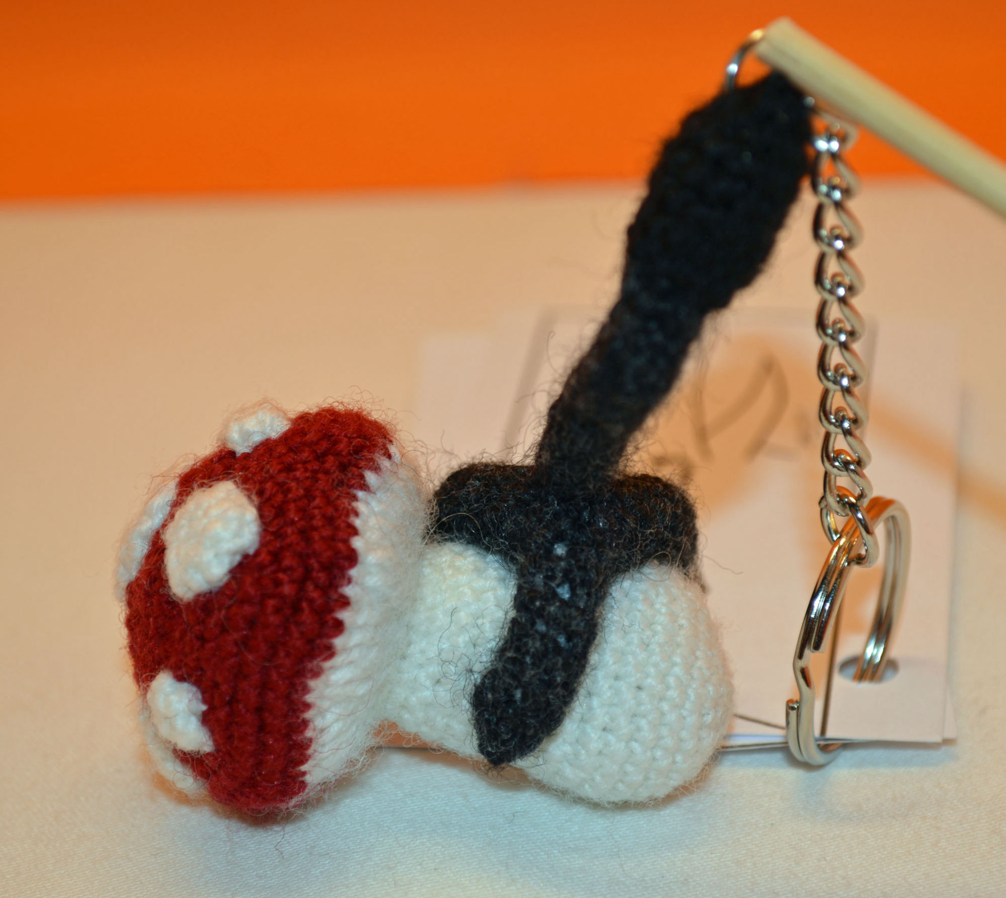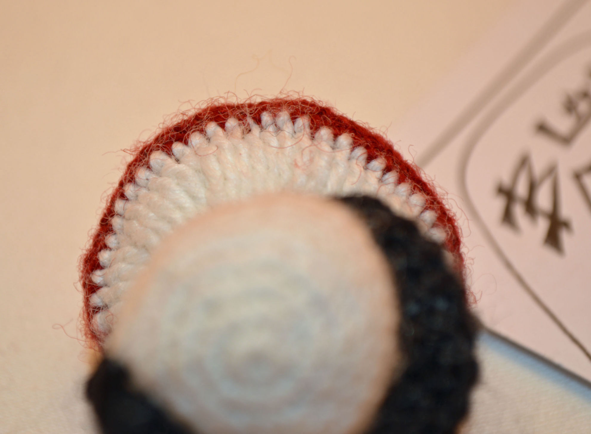 Material: Wolle Schwarz, Anthrazit, Weiss, Burgund-rot,                                  Bastelwatte