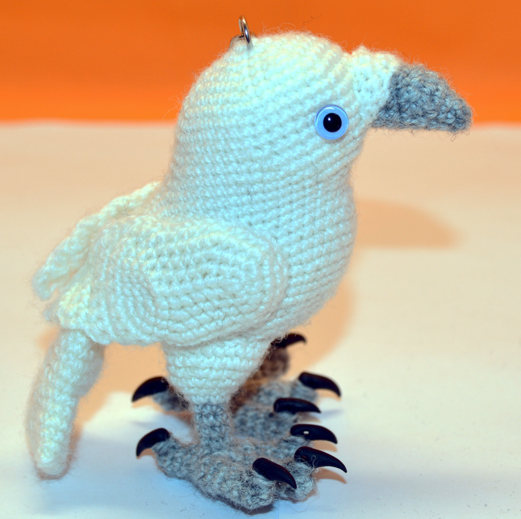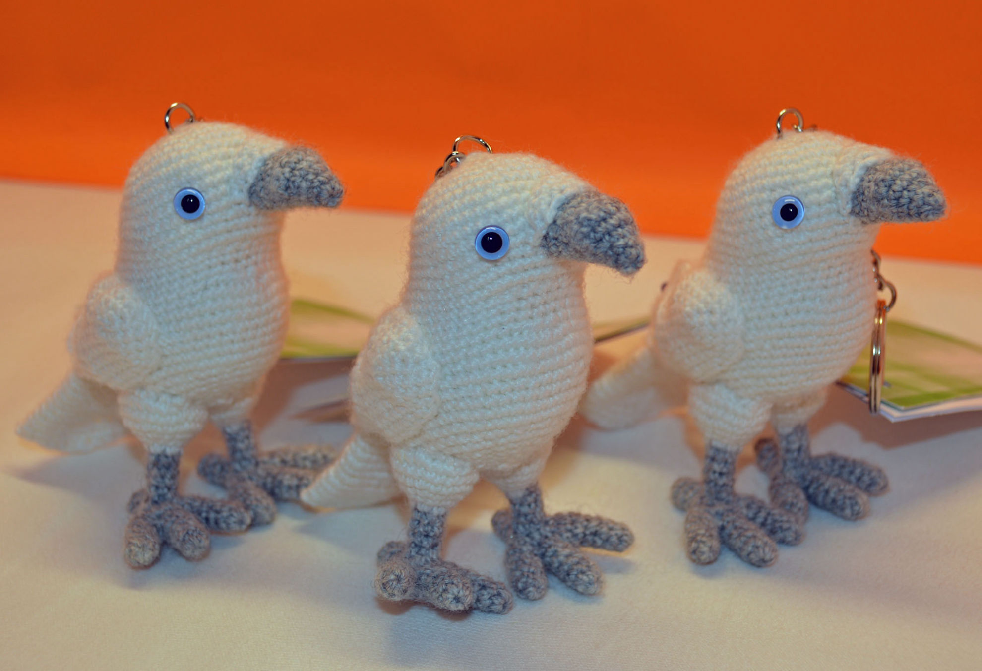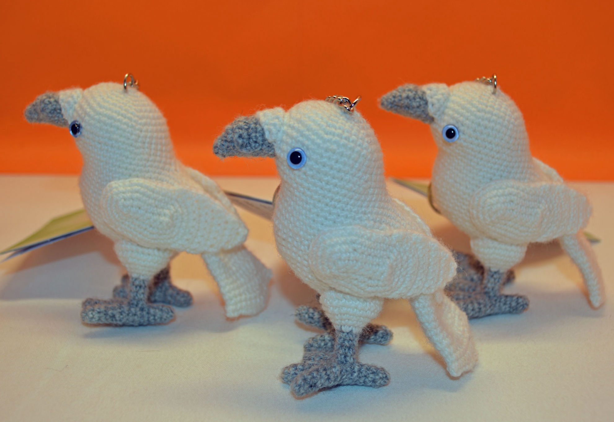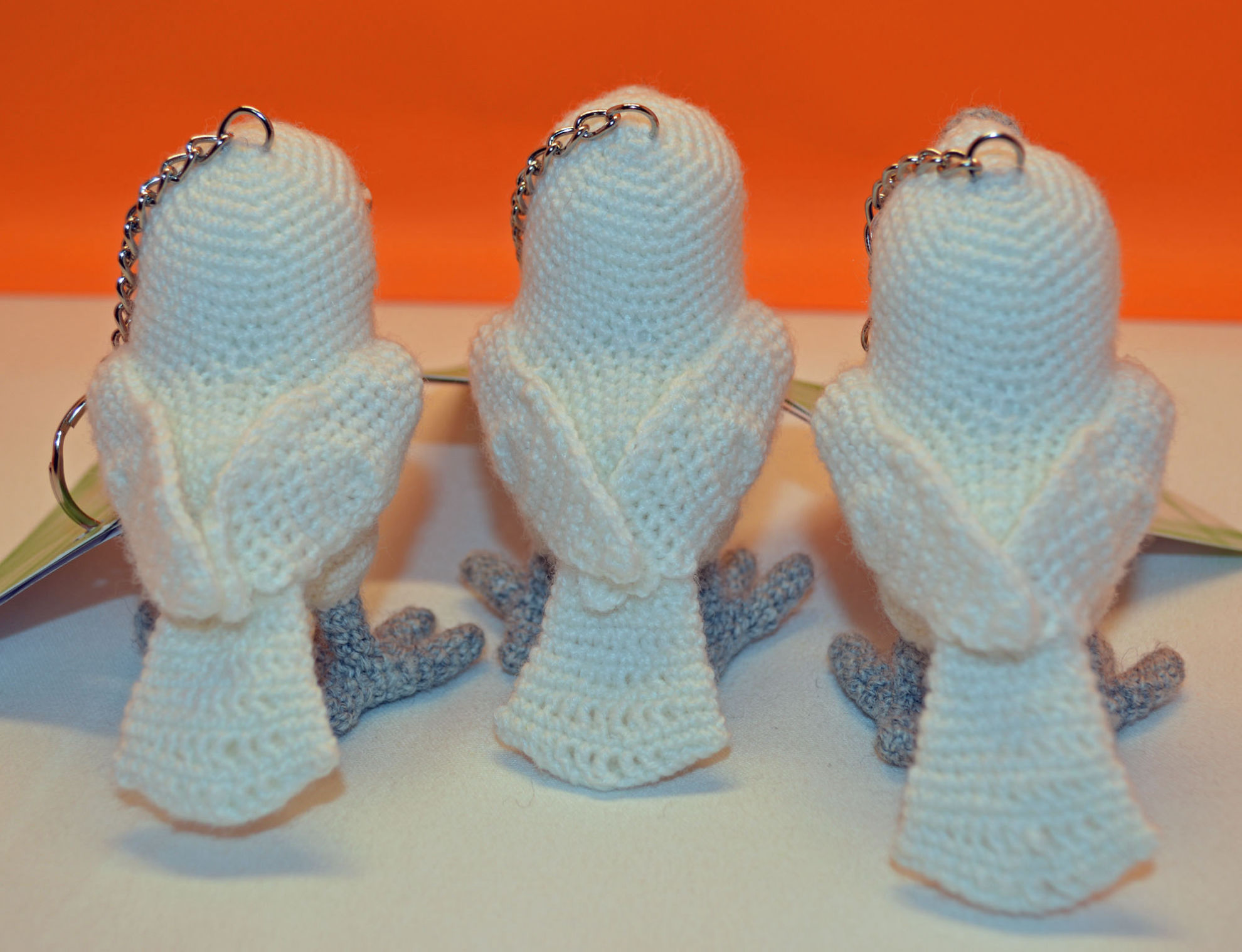 Material: Wolle Weiss, Hellgrau, Glasaugen, Bastelwatte