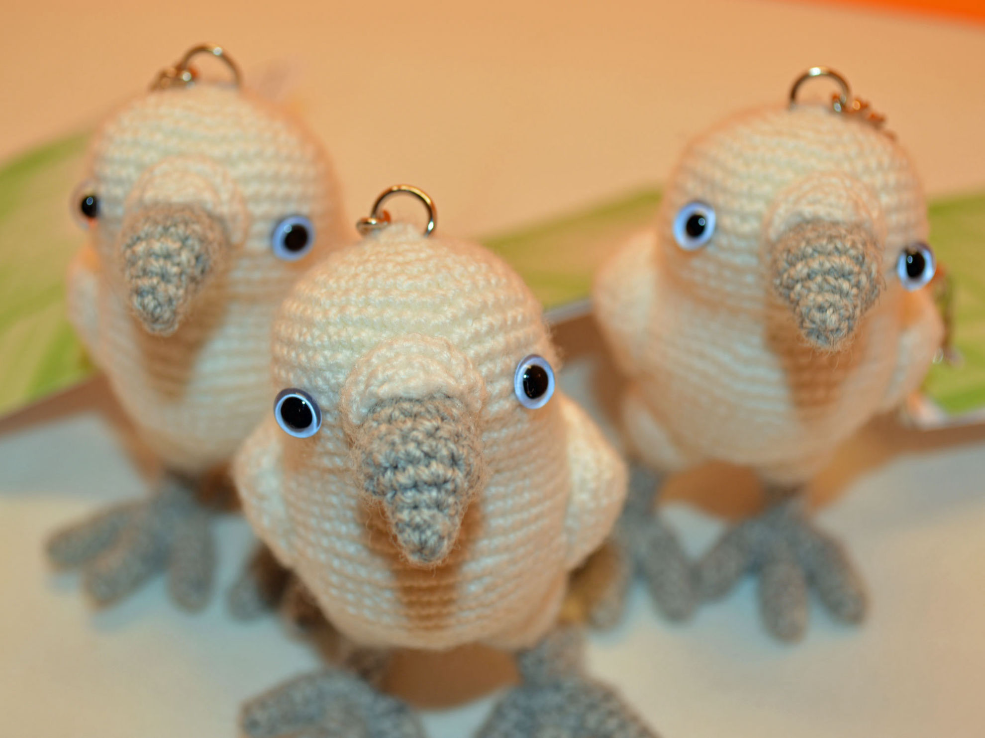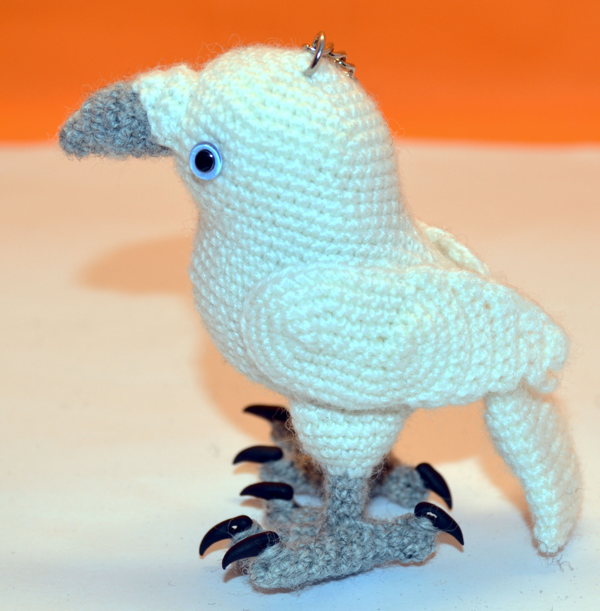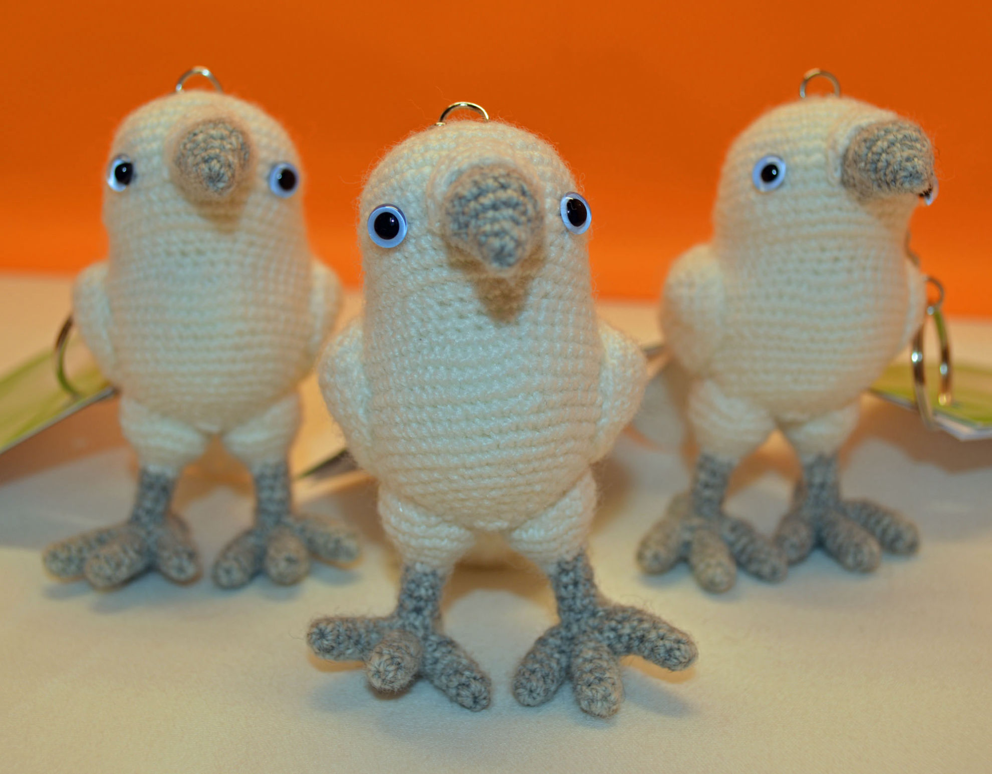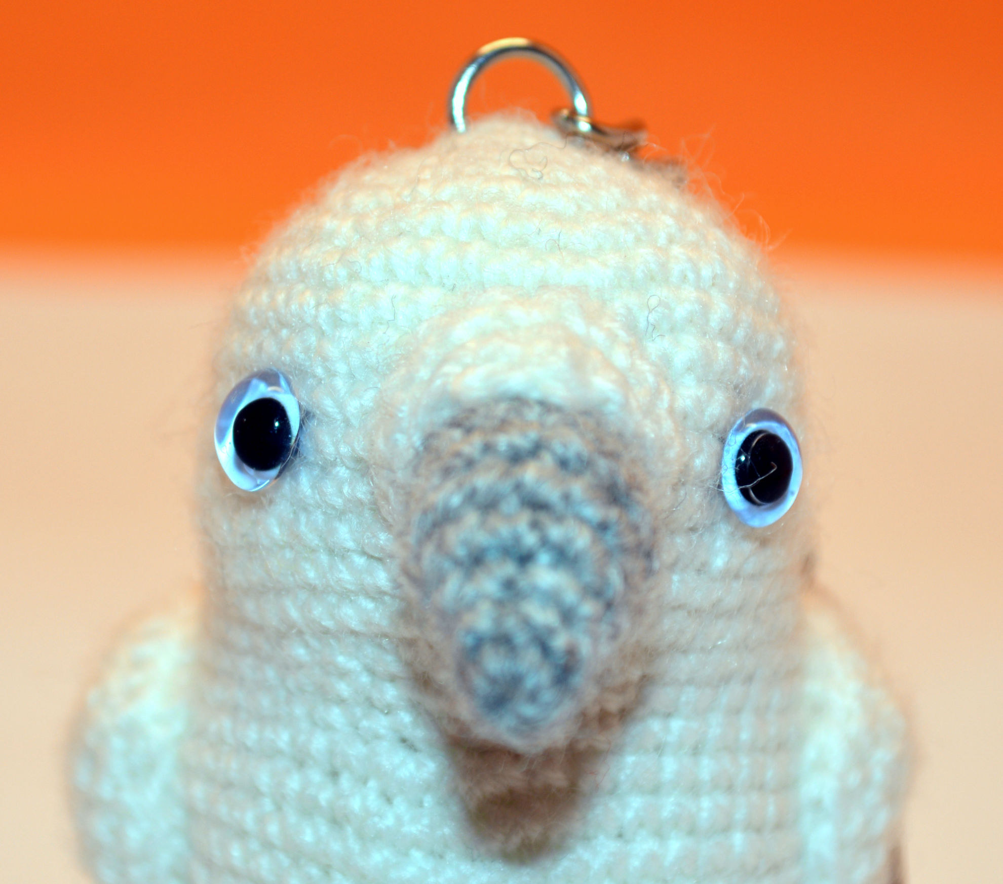 Material: Wolle Weiss, Hellgrau, Glasaugen, Bastelwatte