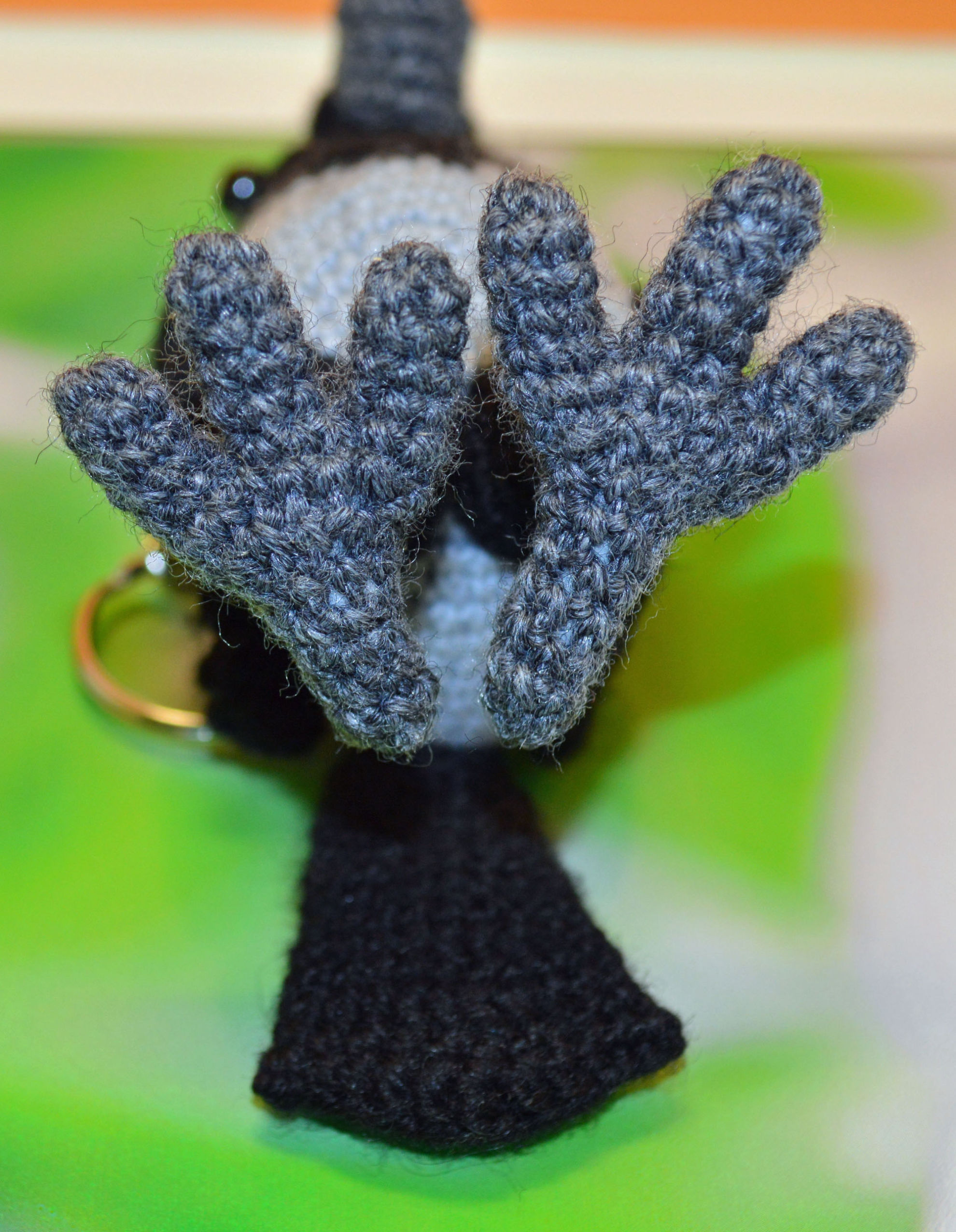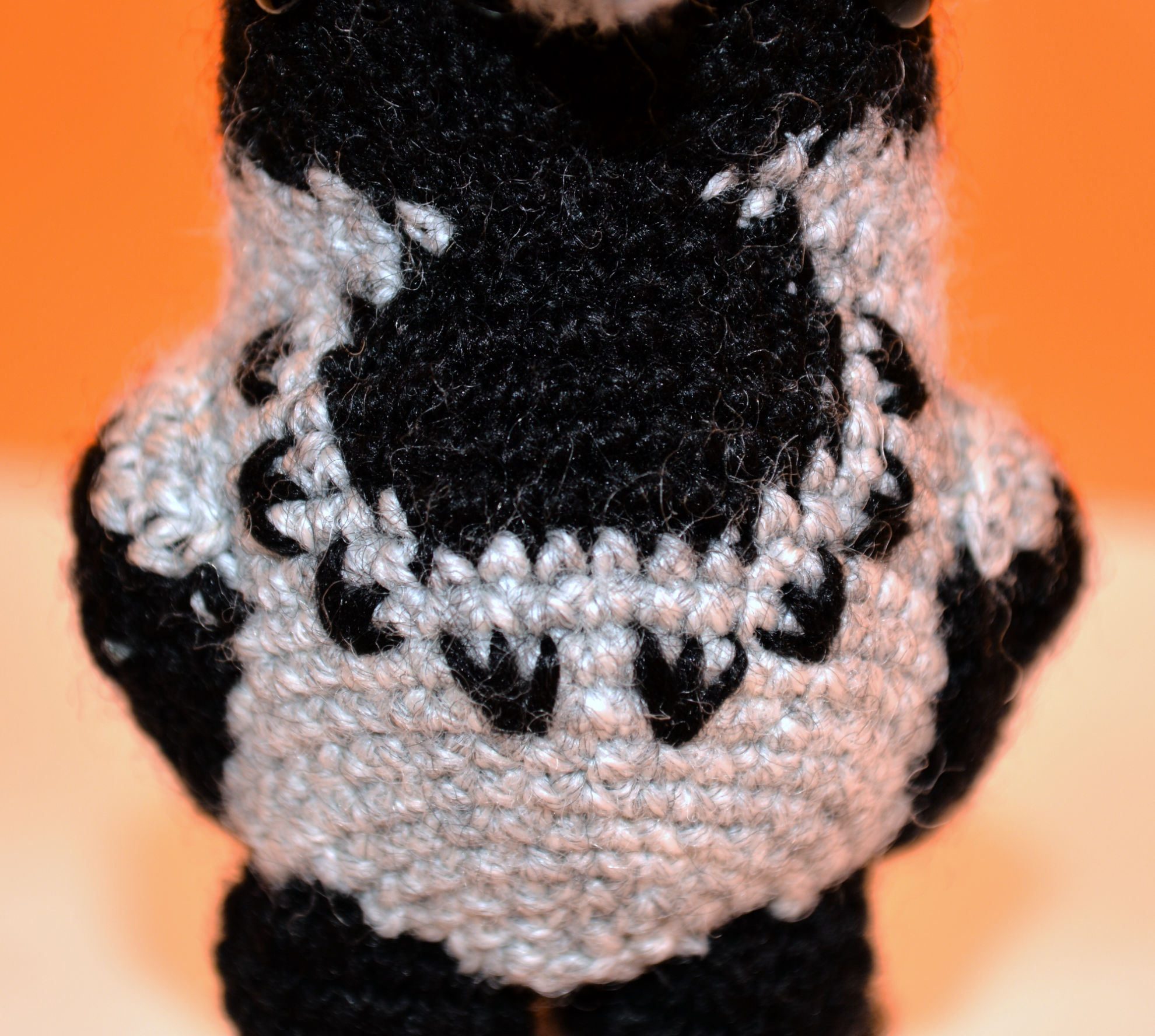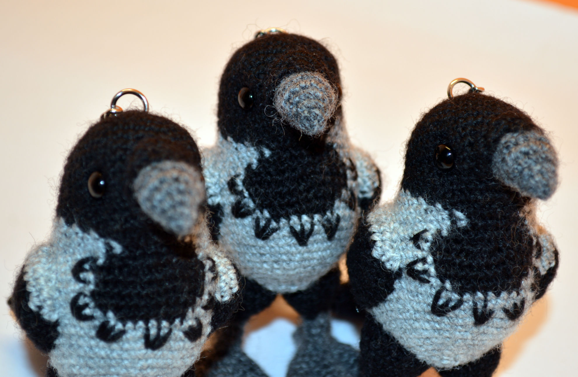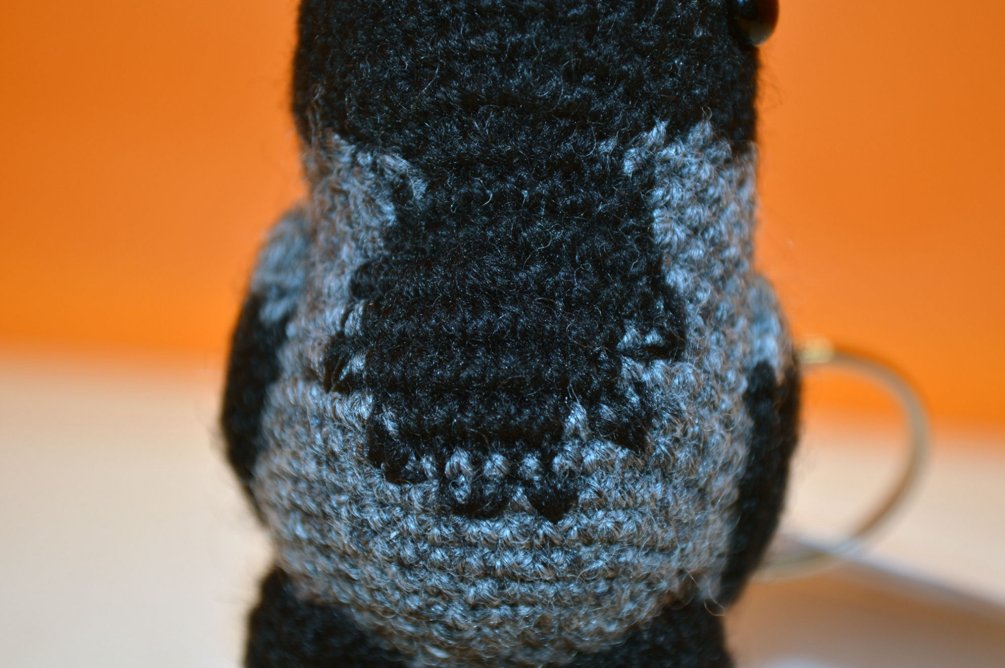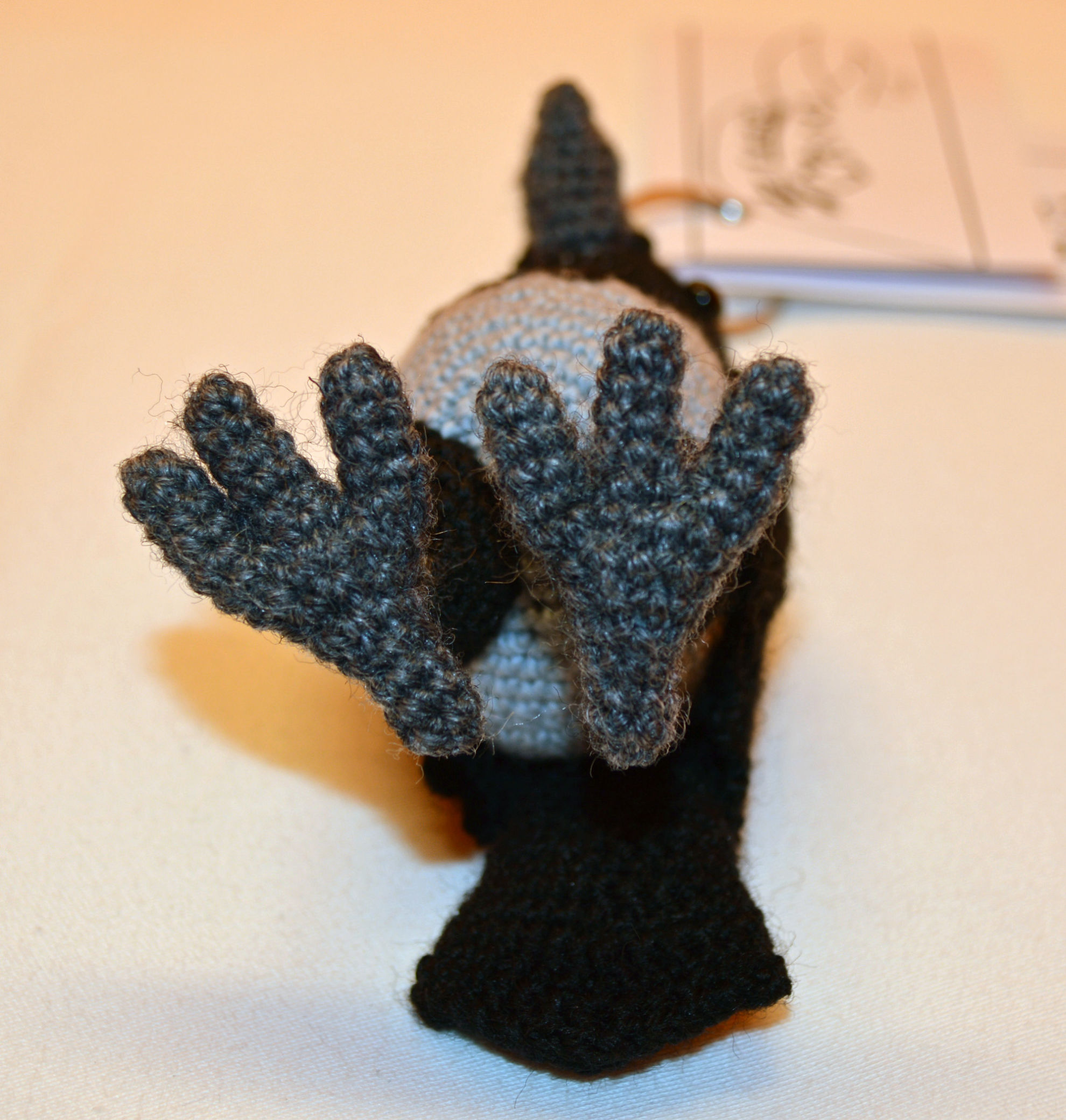 Material: Wolle Schwarz, Silber, Grau, Glasaugen, Bastelwatte
