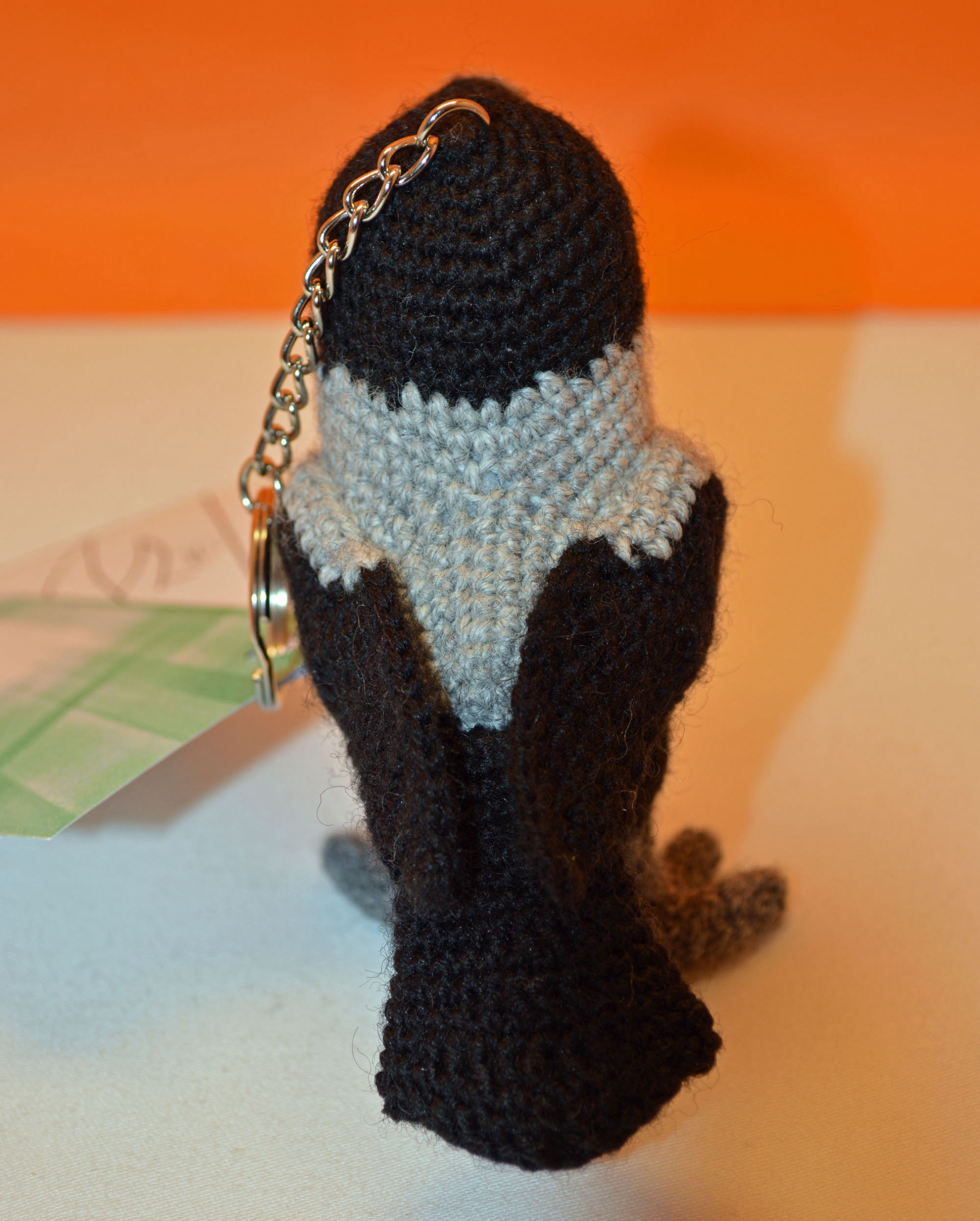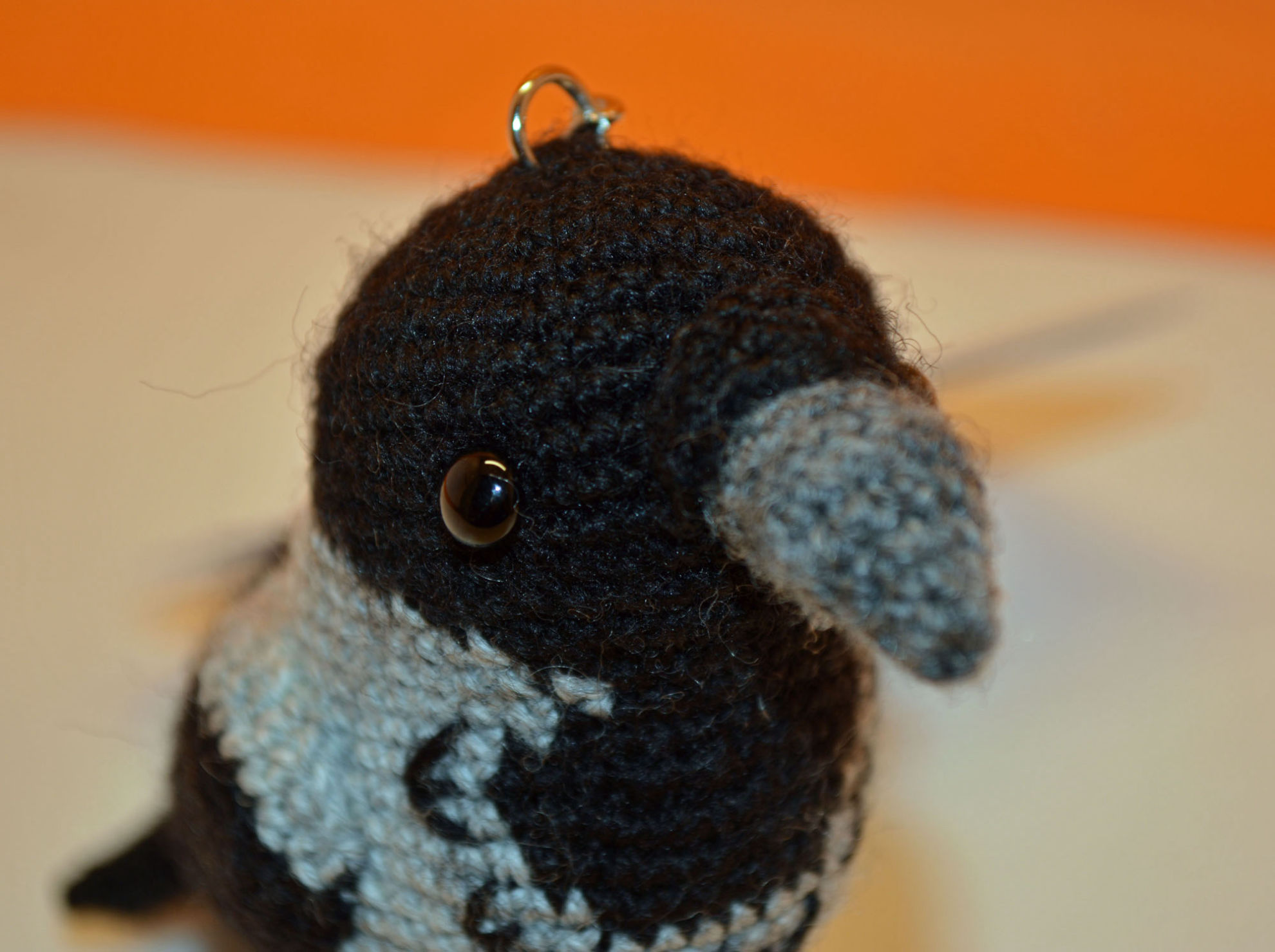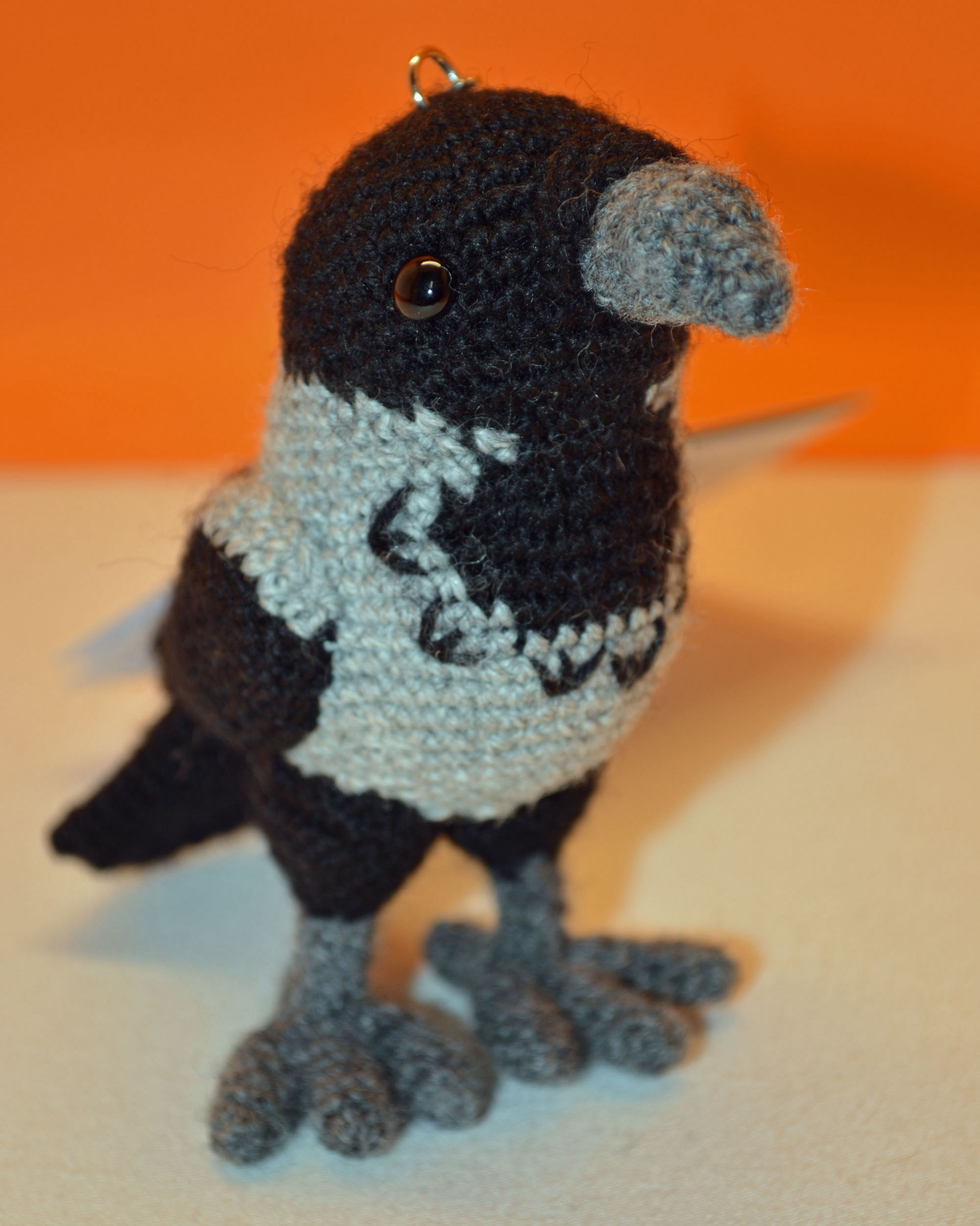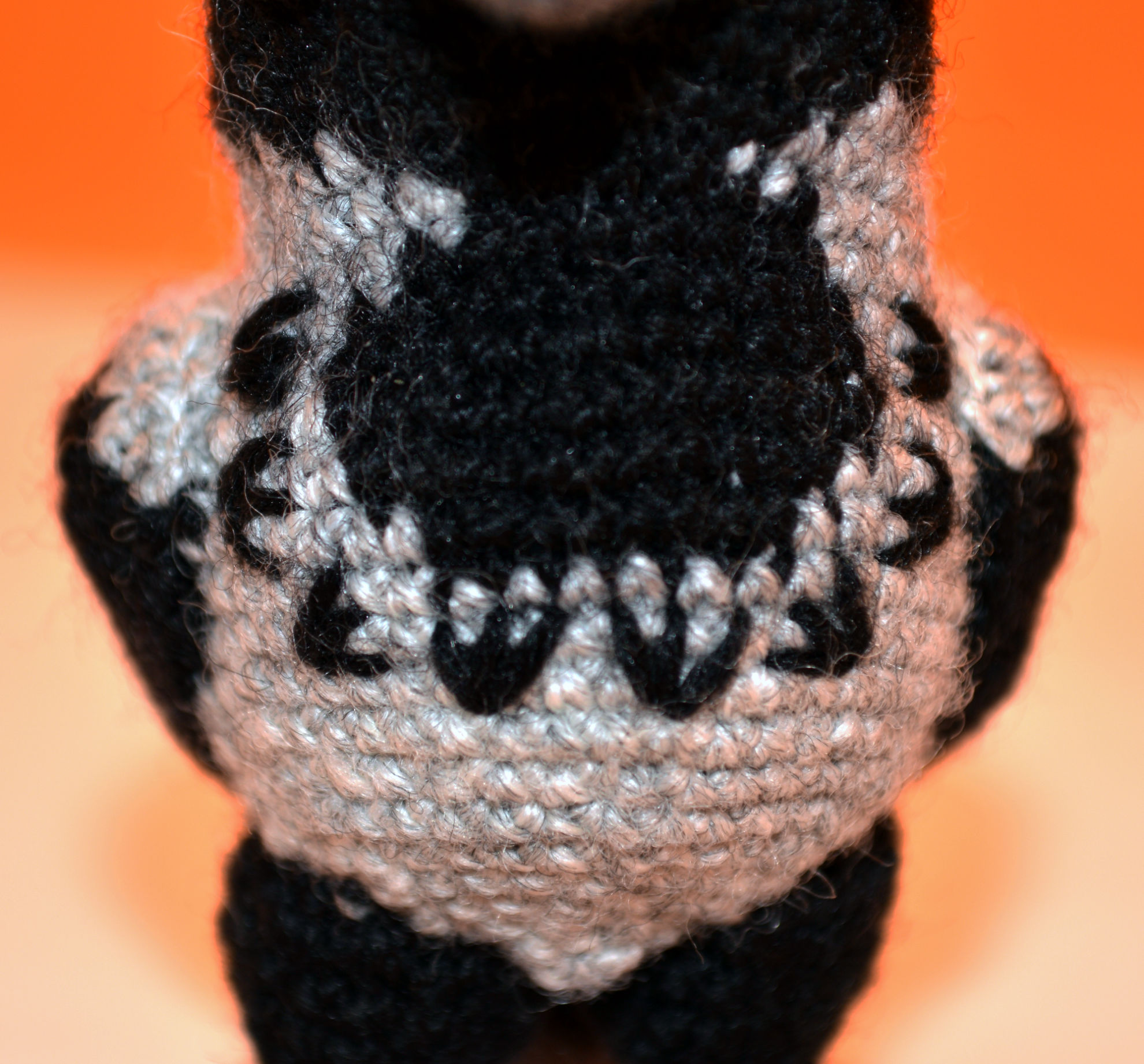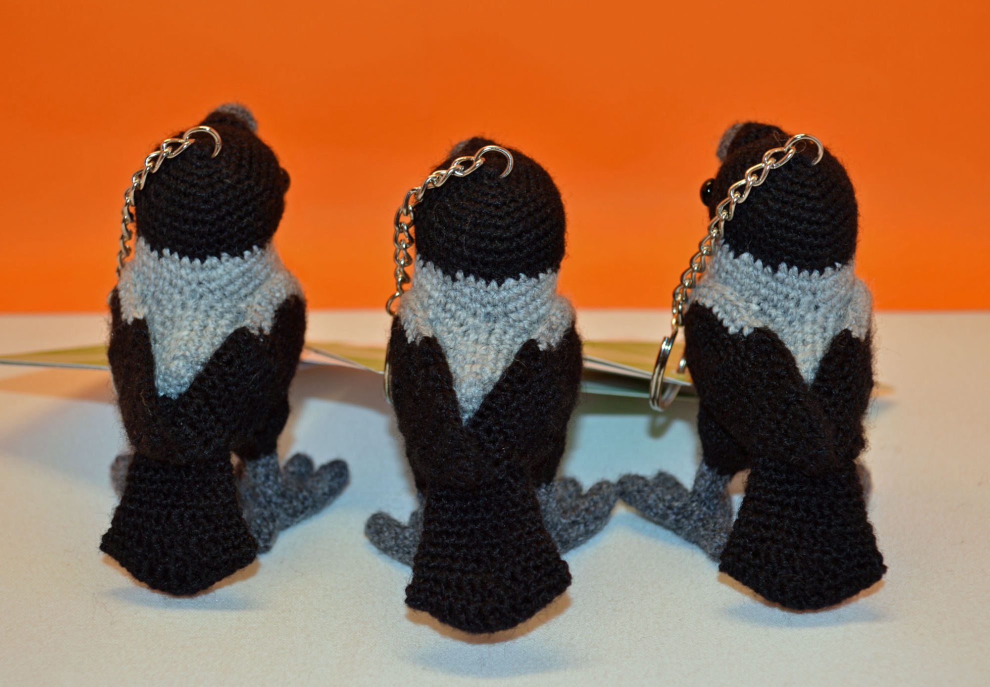 Material: Wolle Schwarz, Silber, Grau, Glasaugen, Bastelwatte