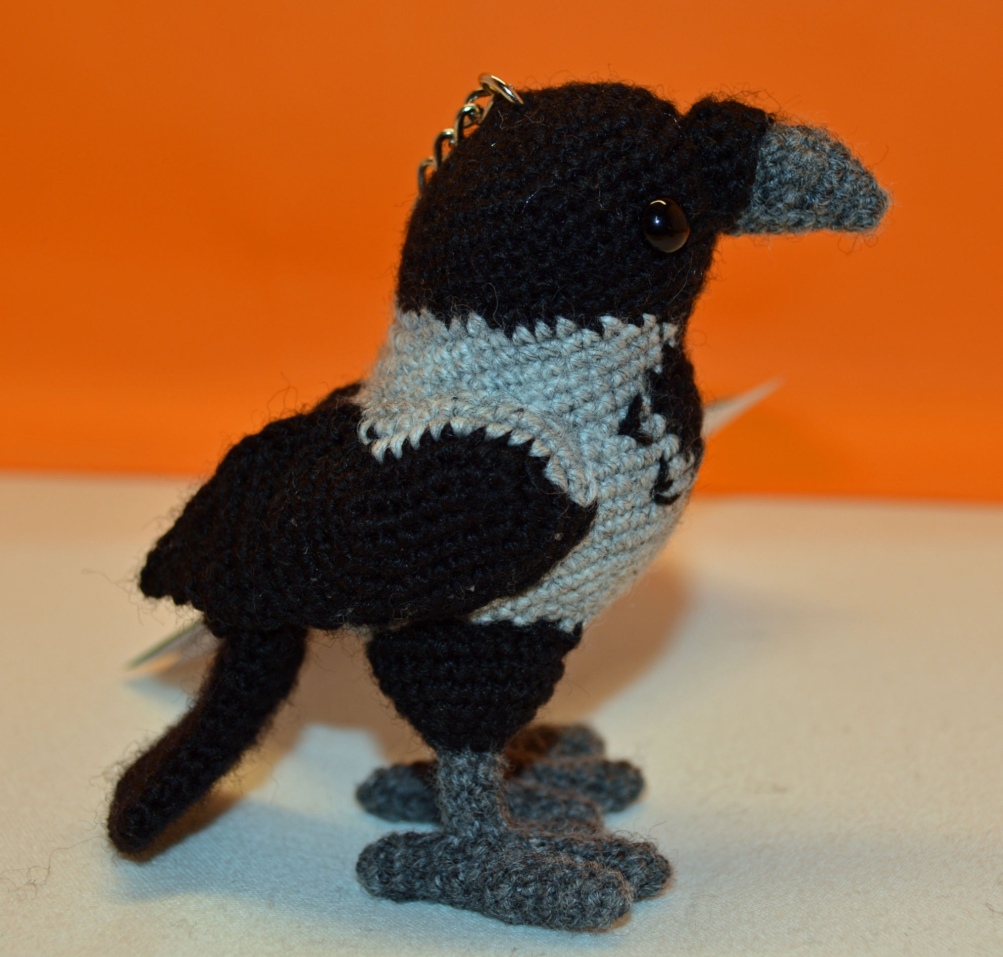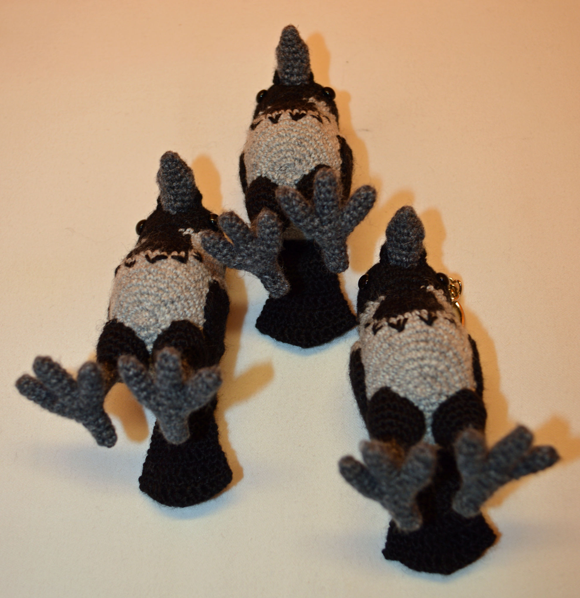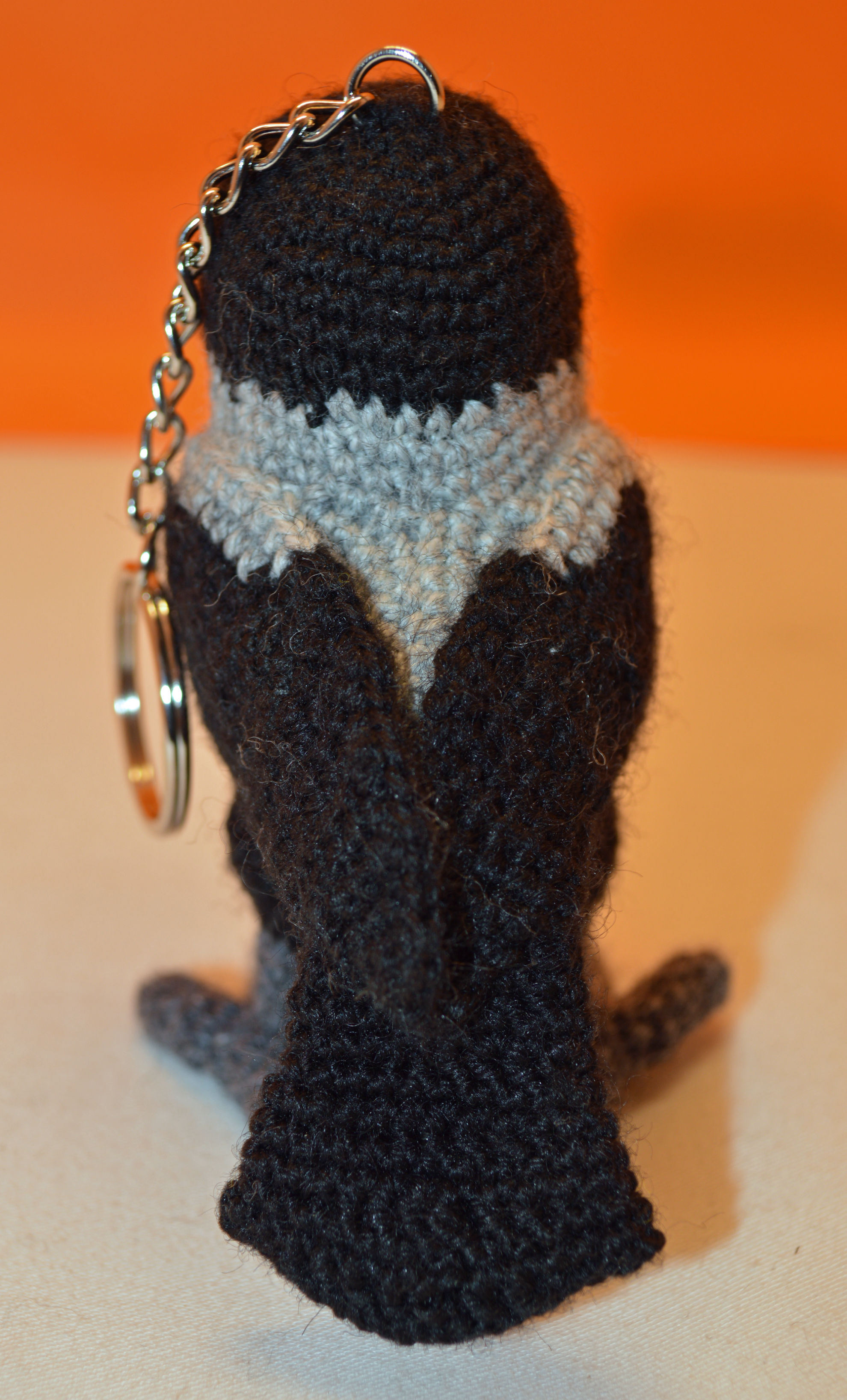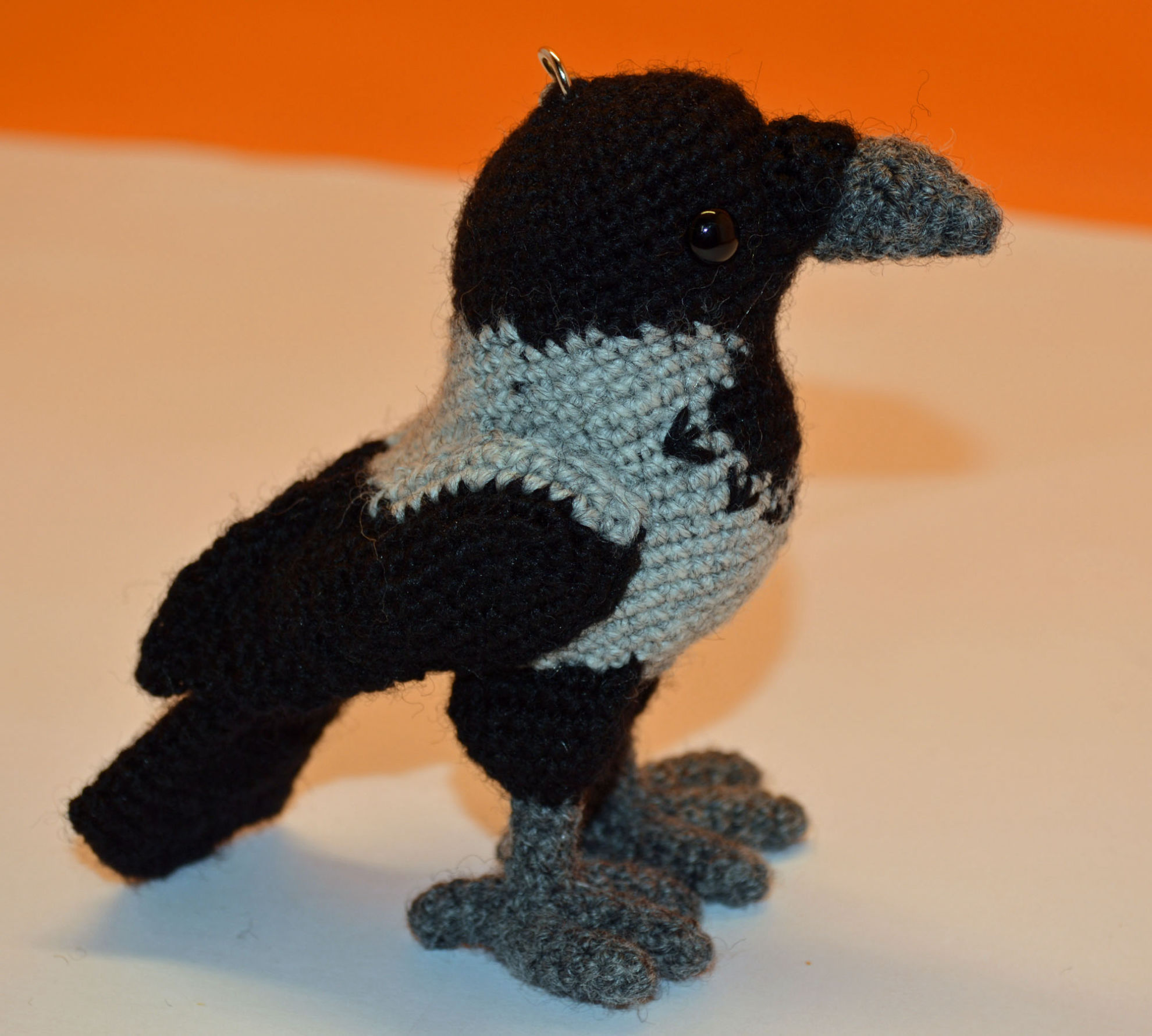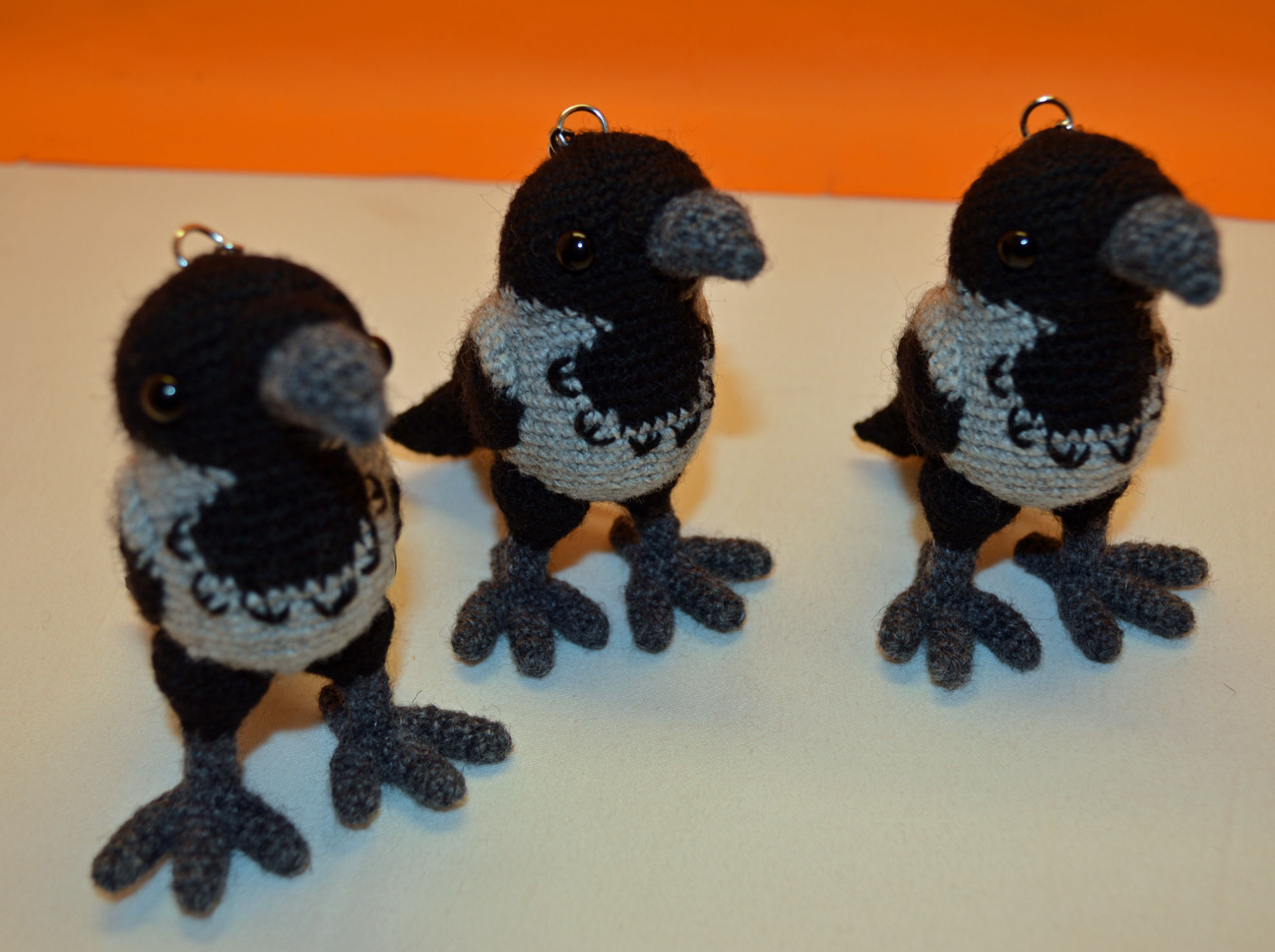 Material: Wolle Schwarz, Silber, Grau, Glasaugen, Bastelwatte