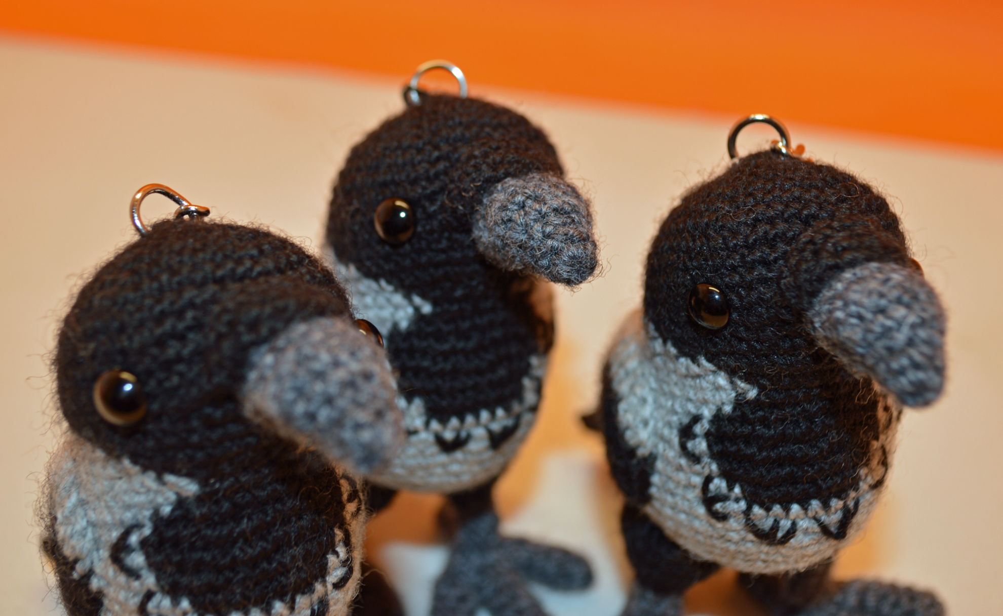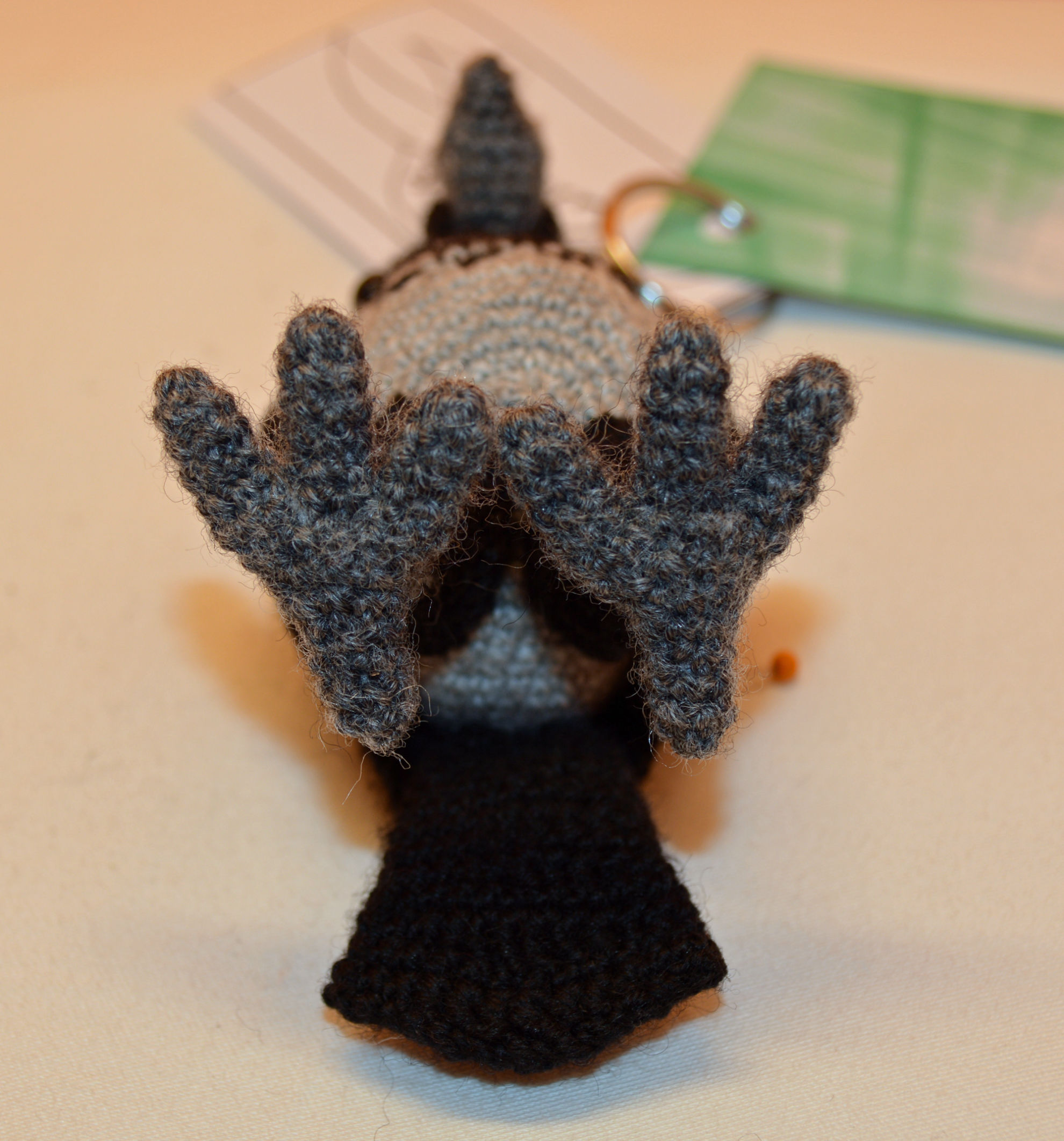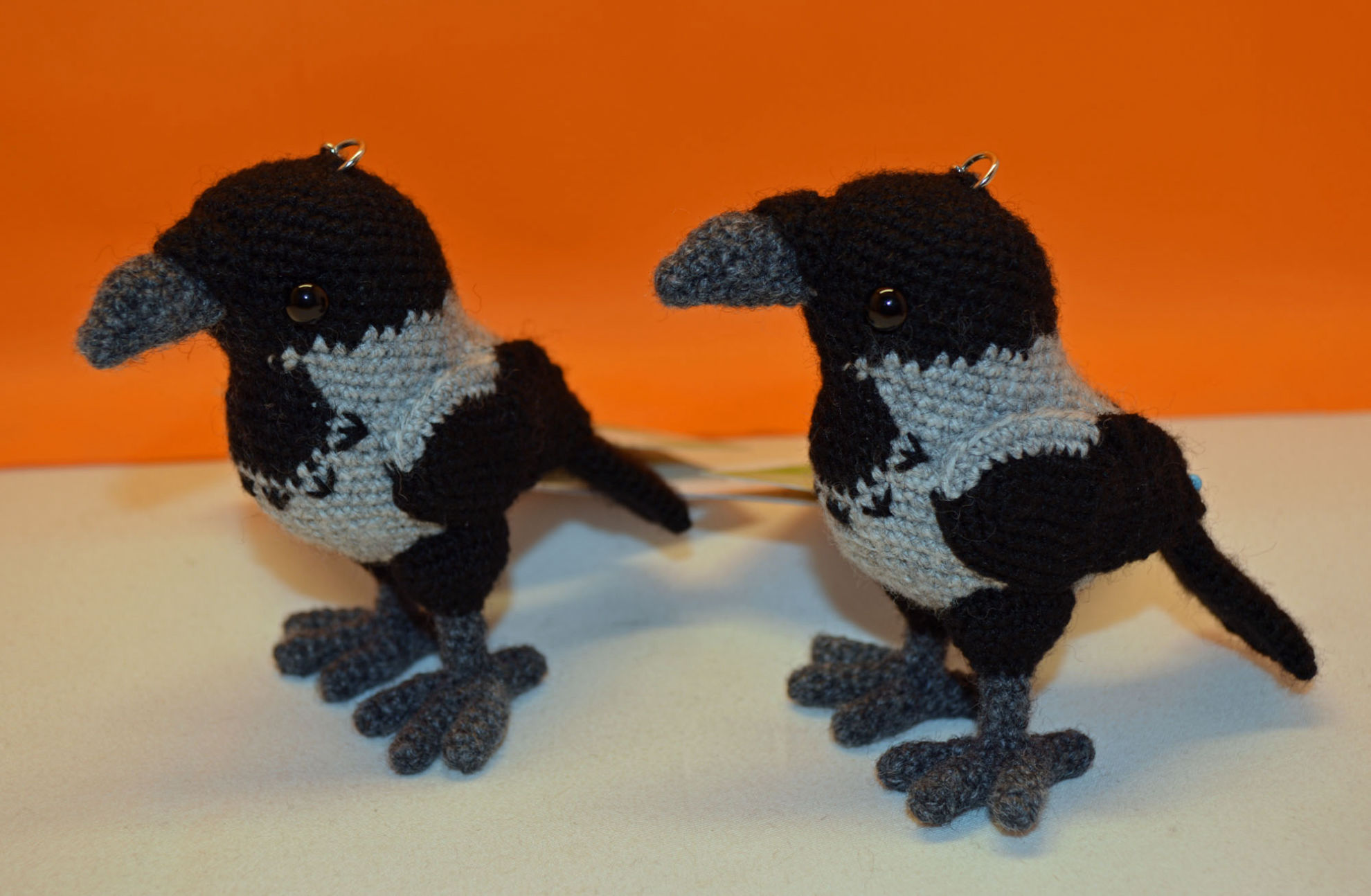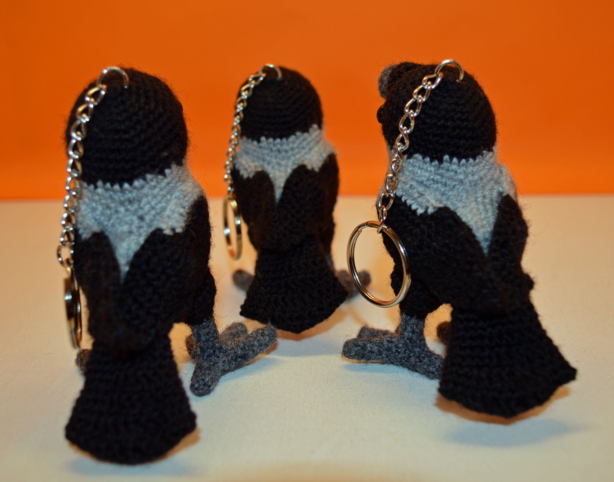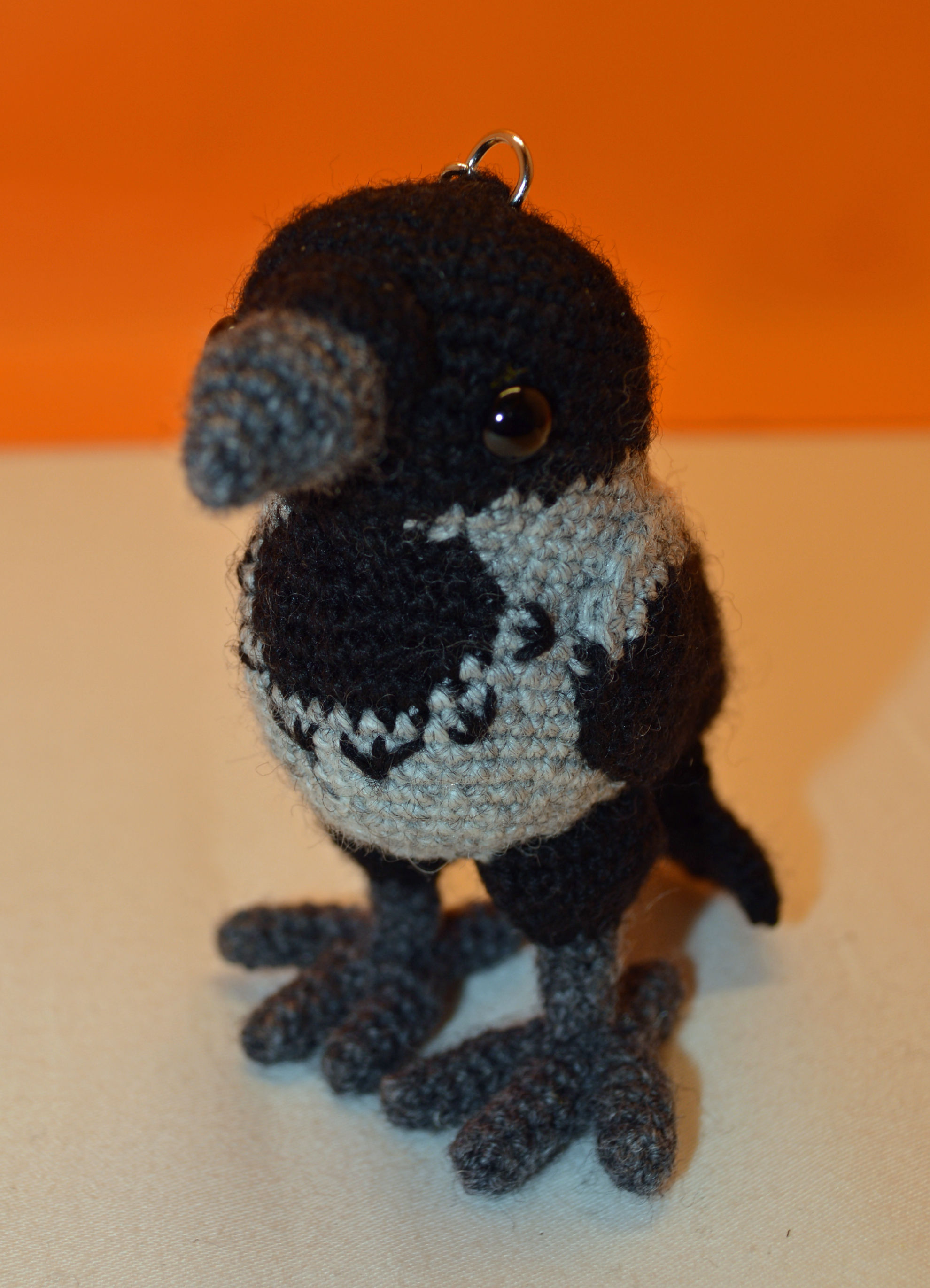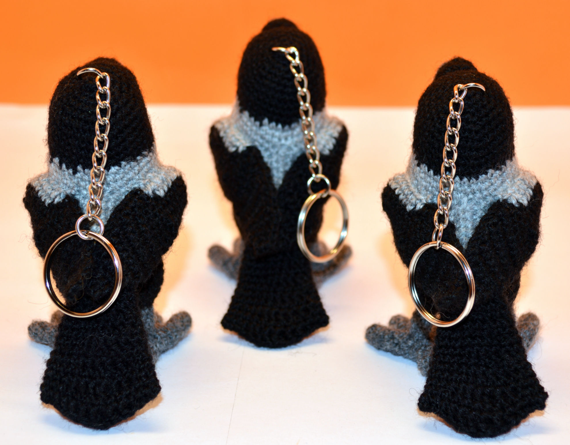 Material: Wolle Schwarz, Silber, Grau, Glasaugen, Bastelwatte