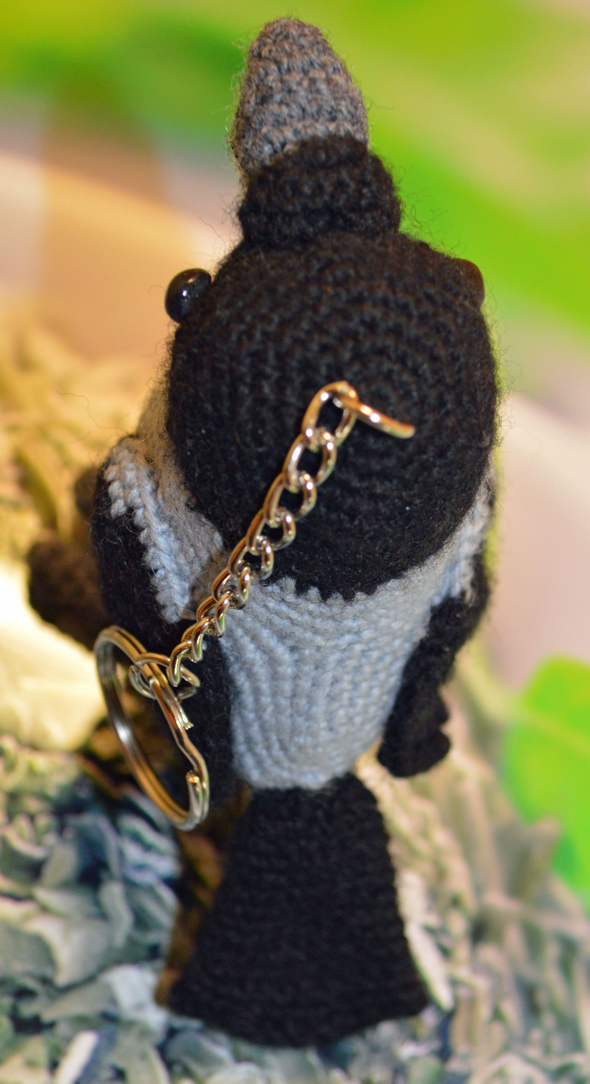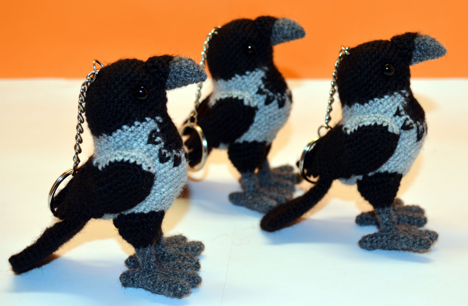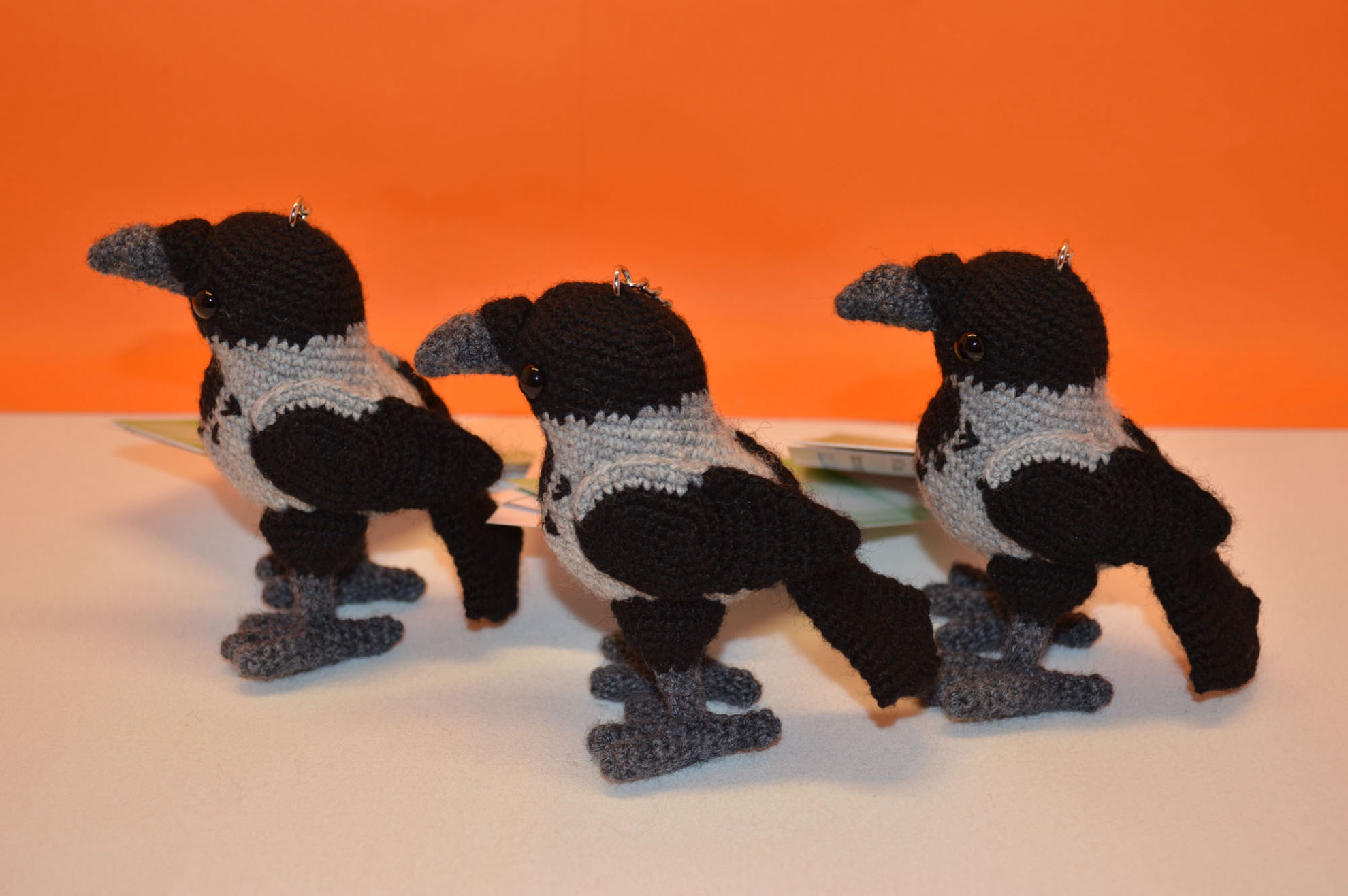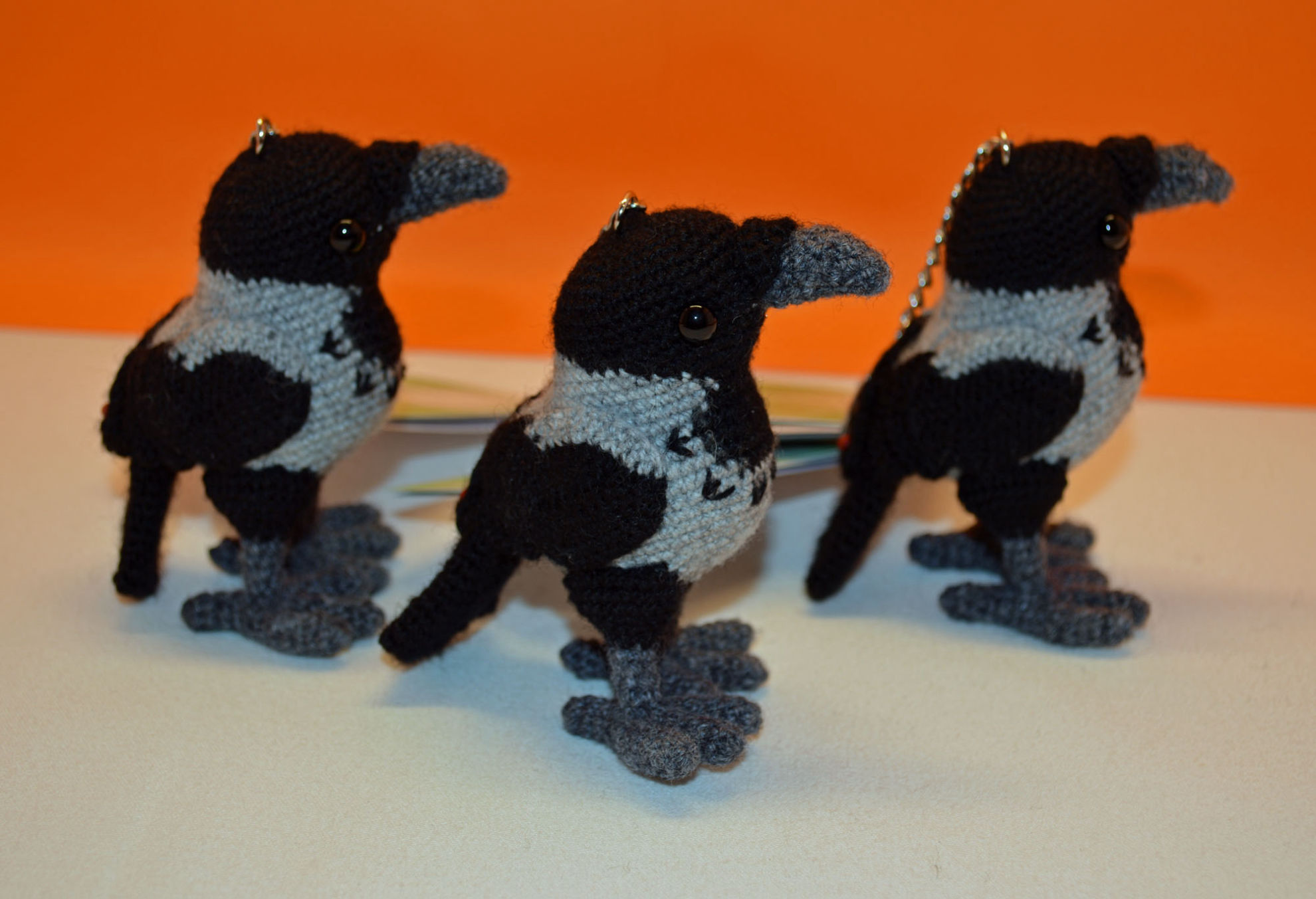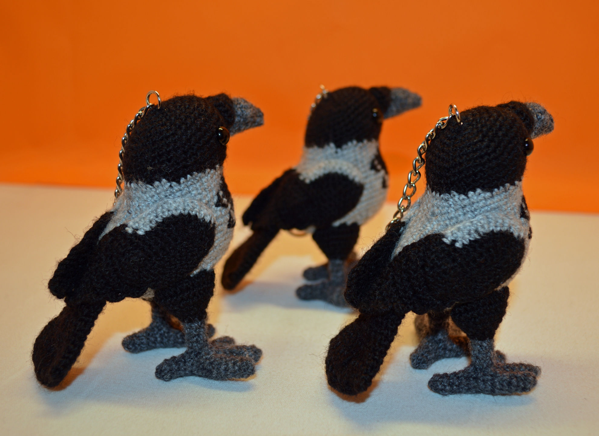 Material: Wolle Schwarz, Silber, Grau, Glasaugen, Bastelwatte