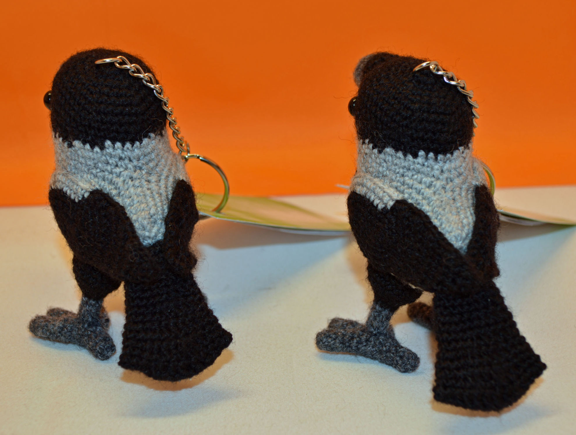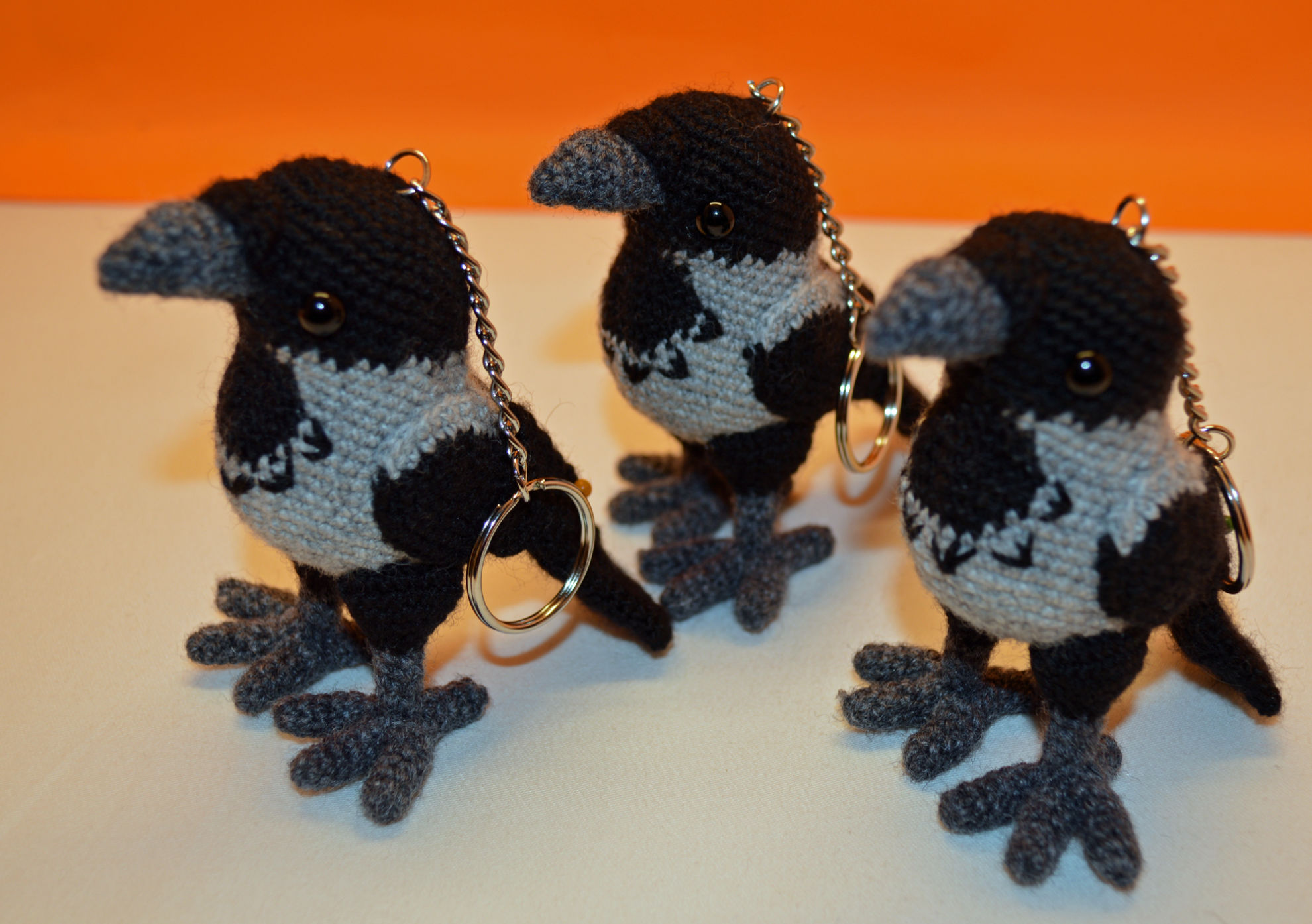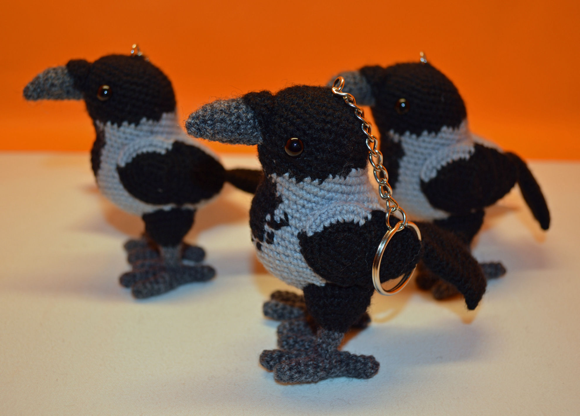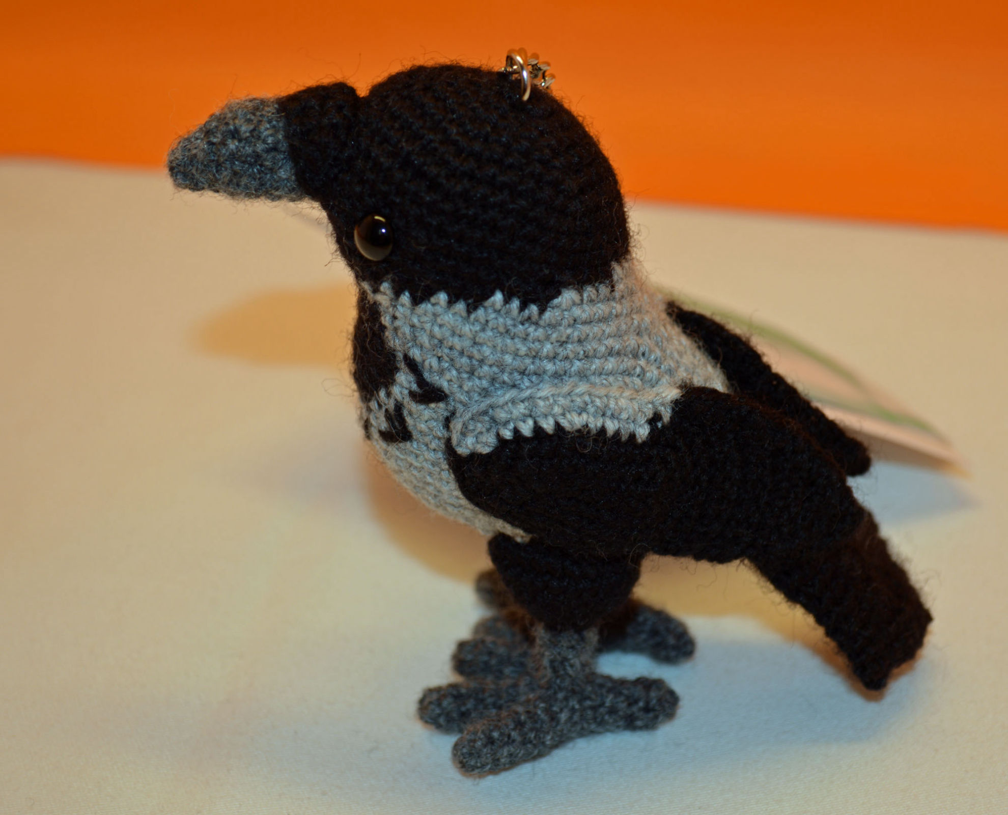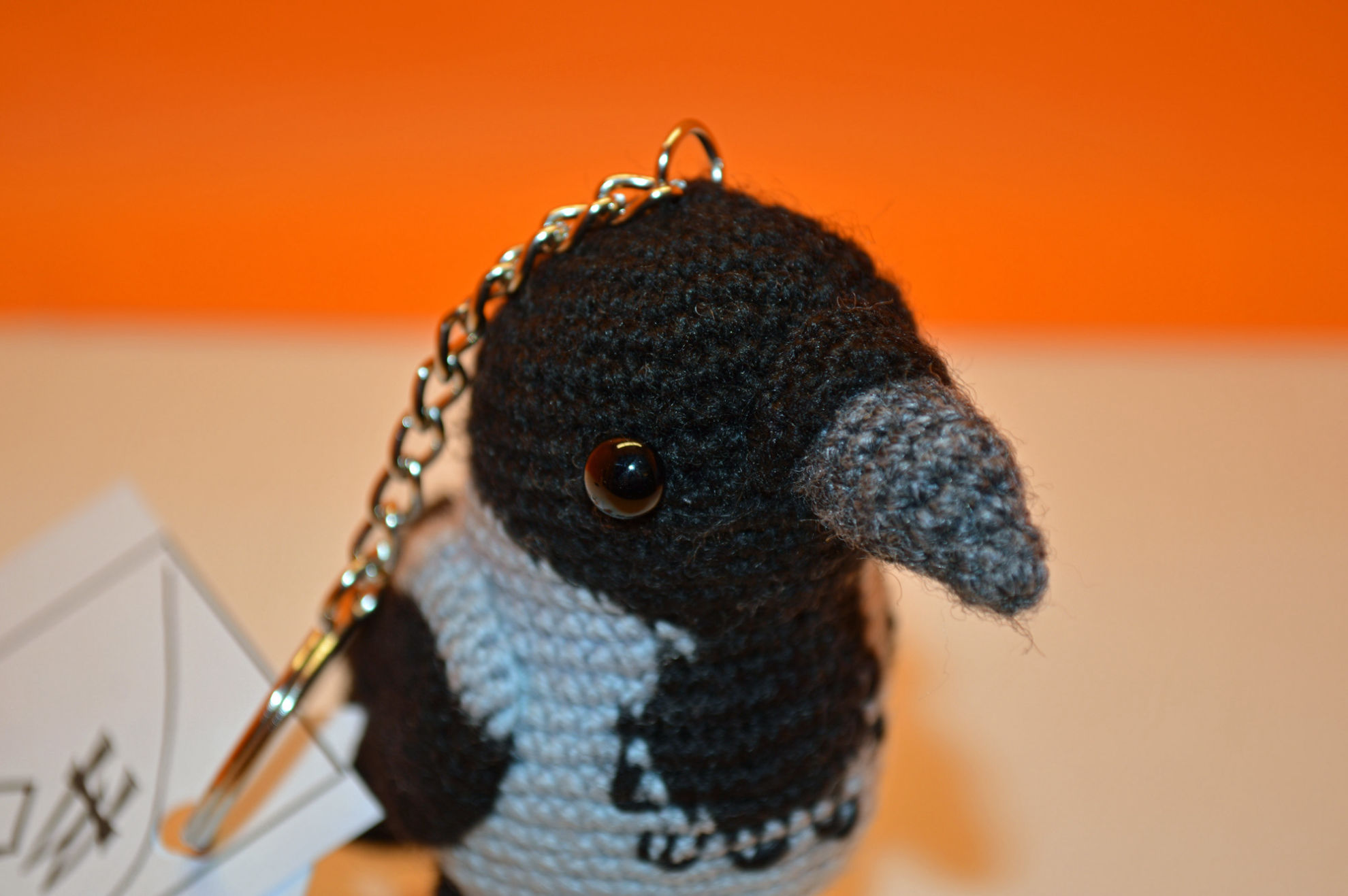 Material: Wolle Schwarz, Silber, Grau, Glasaugen, Bastelwatte