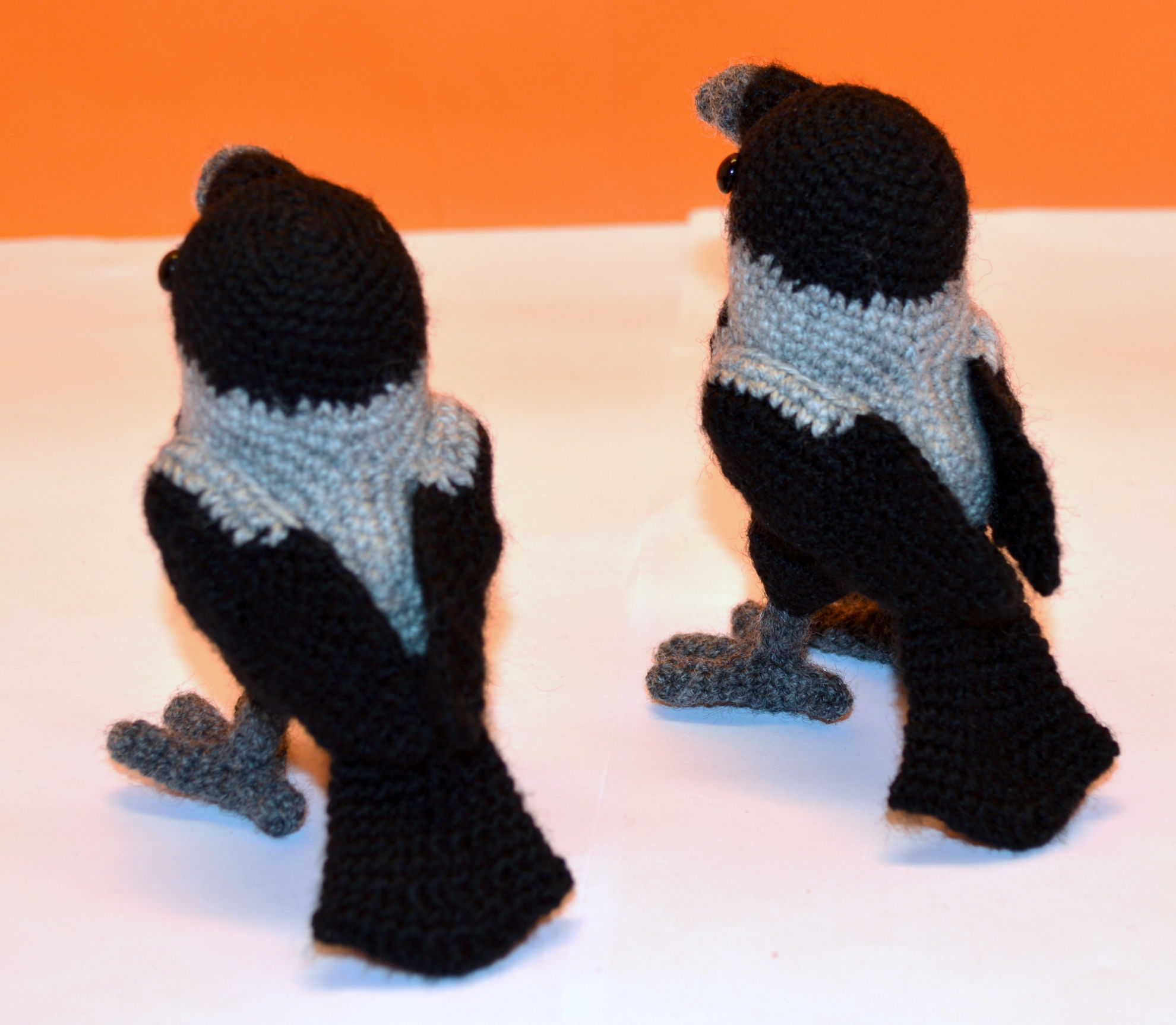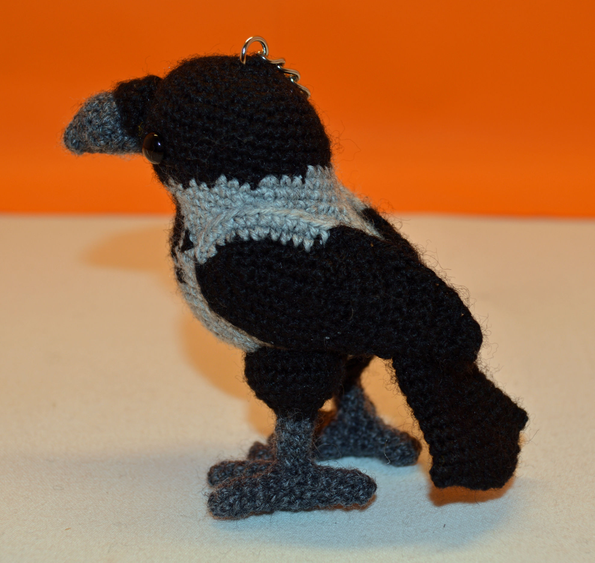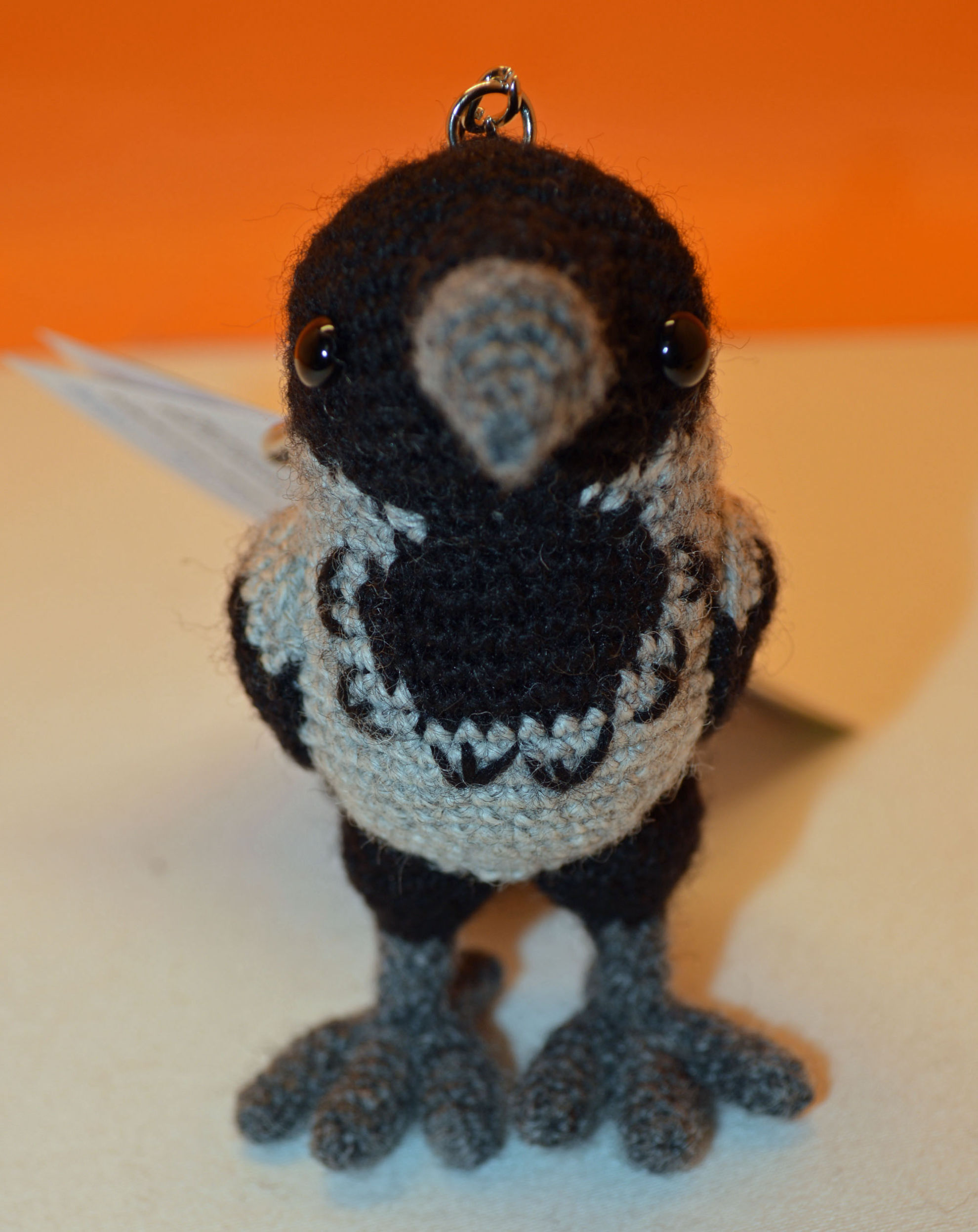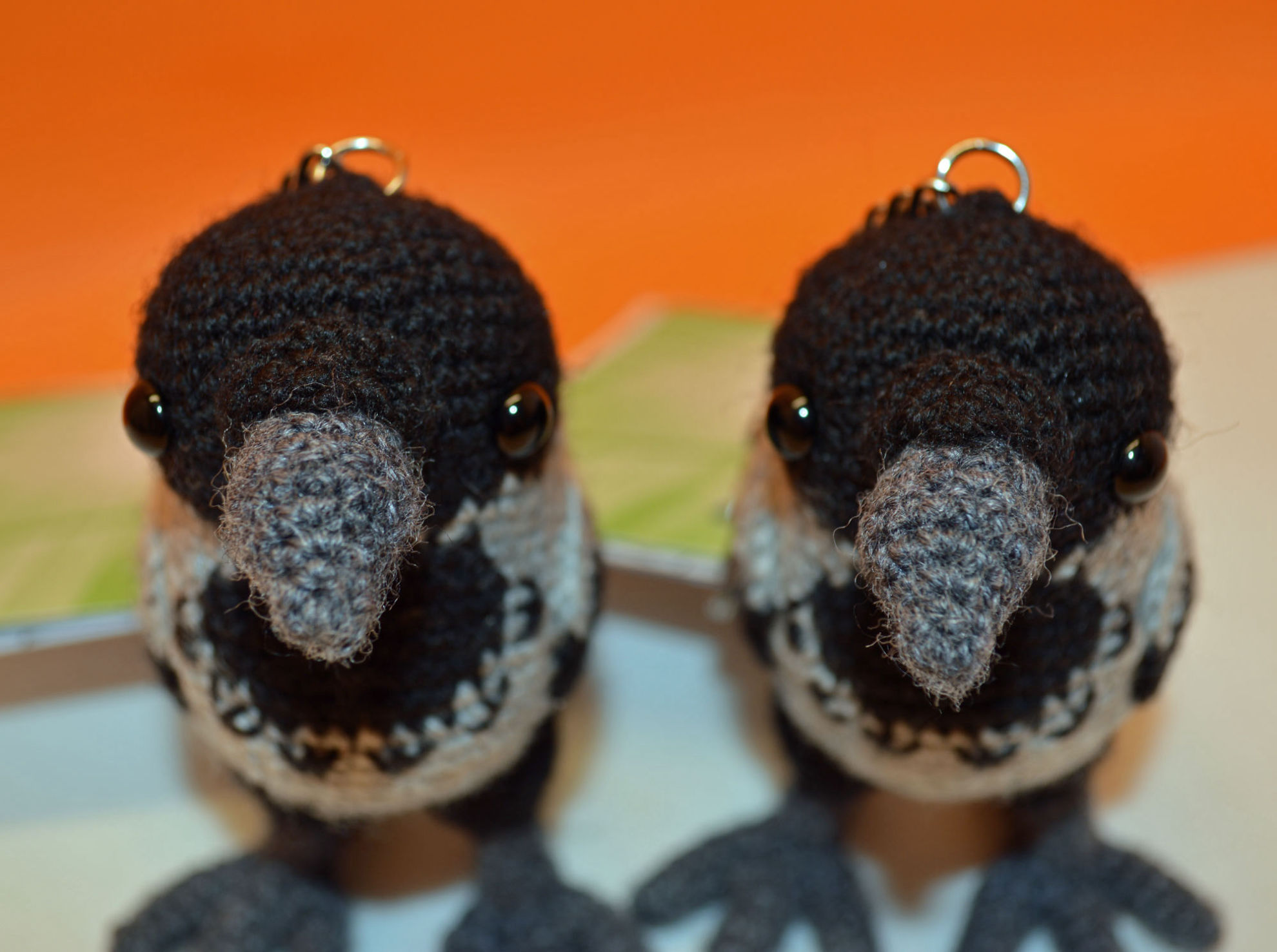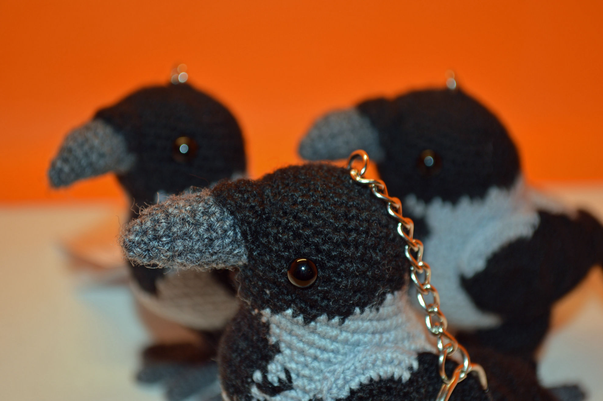 Material: Wolle Schwarz, Silber, Grau, Glasaugen, Bastelwatte