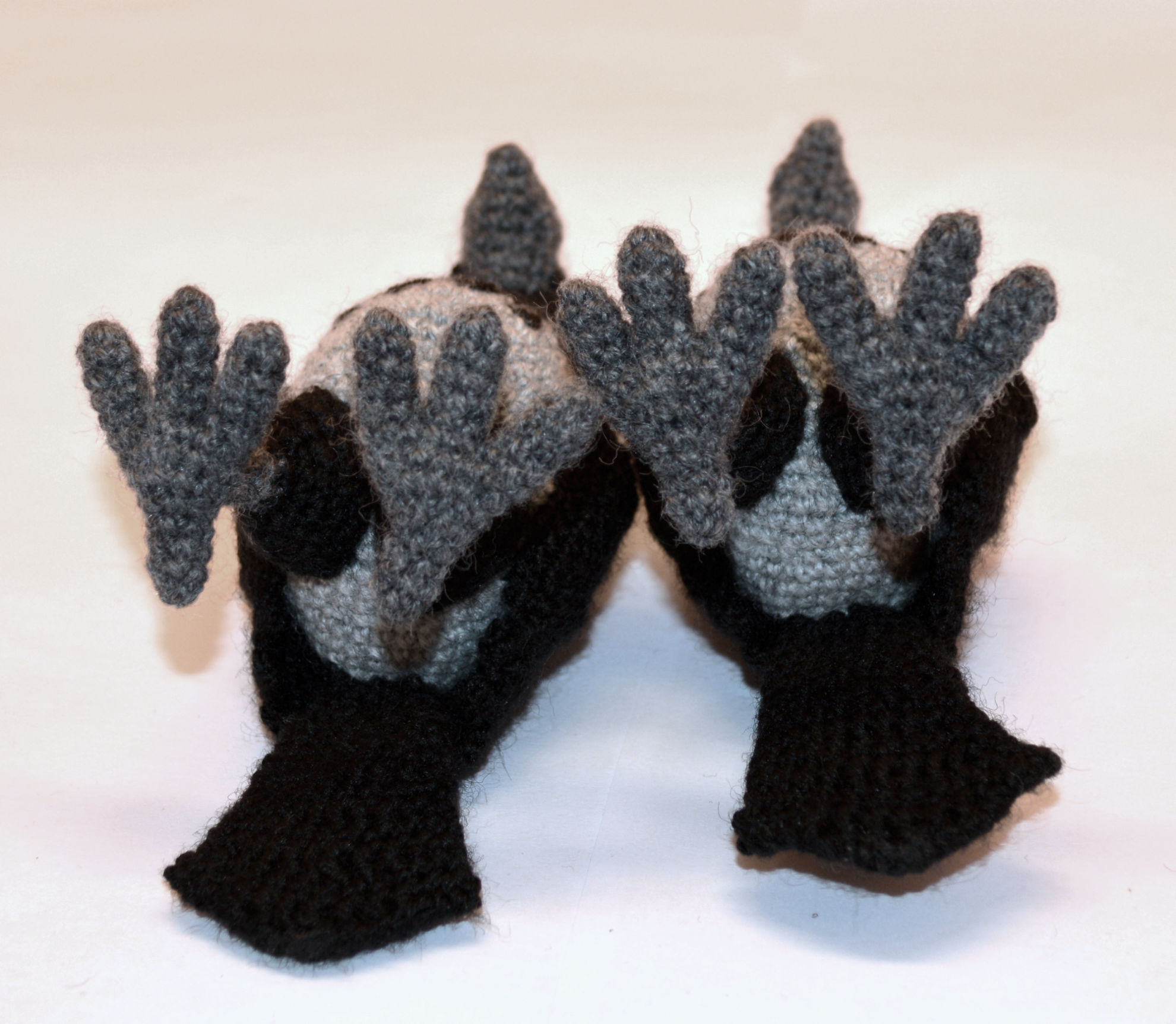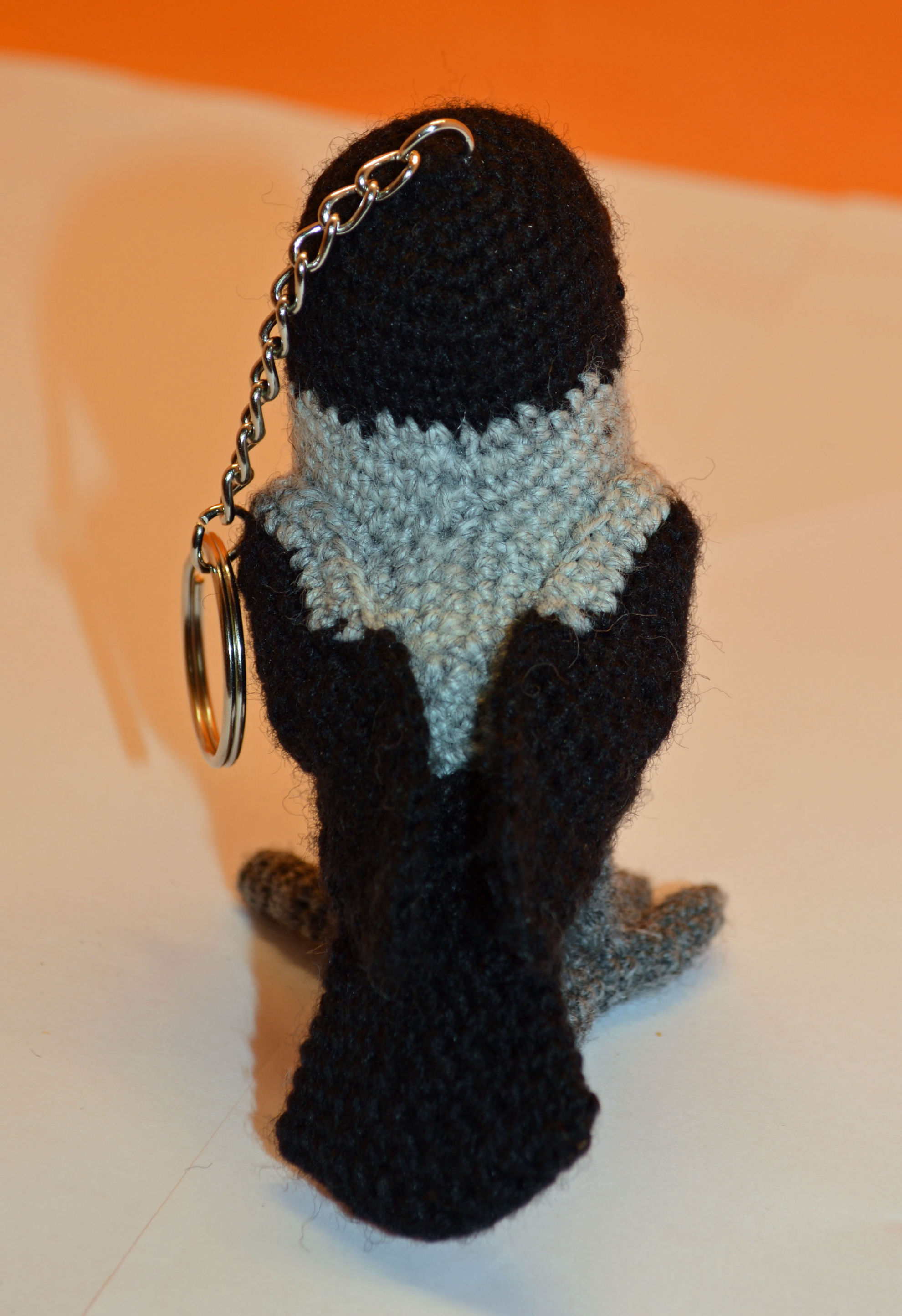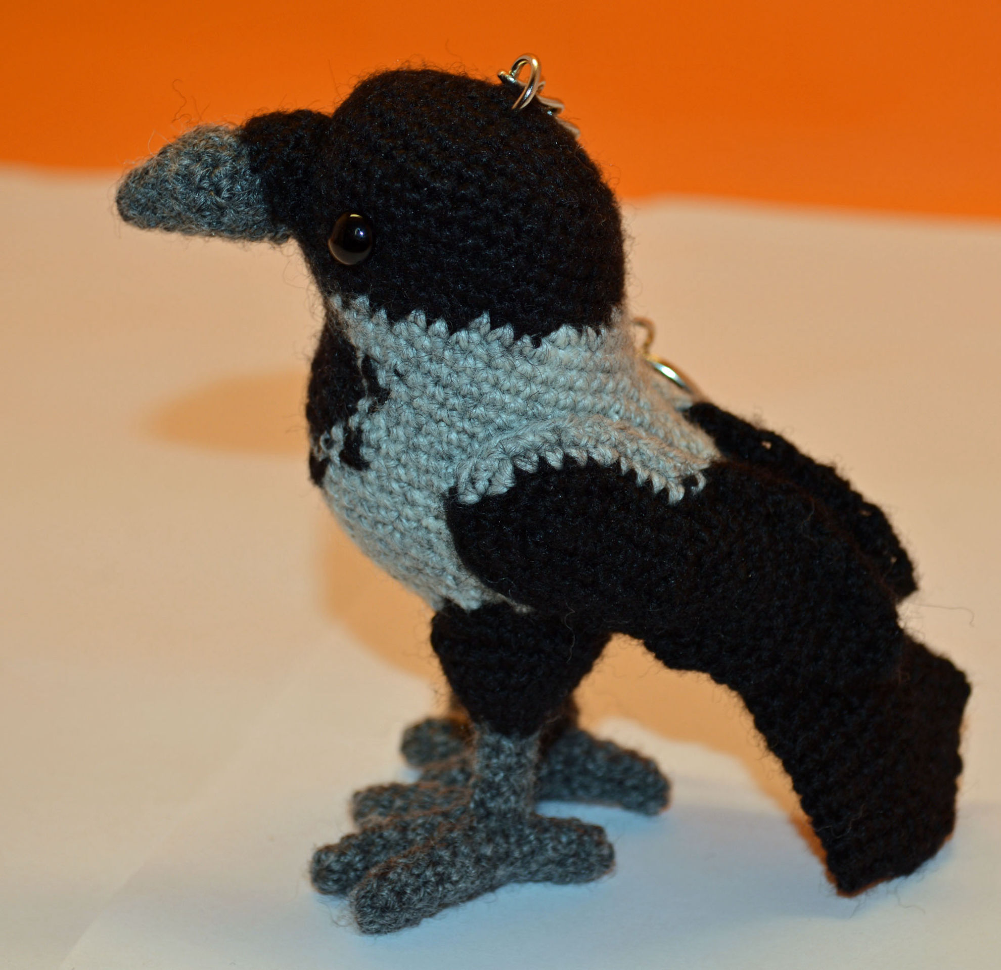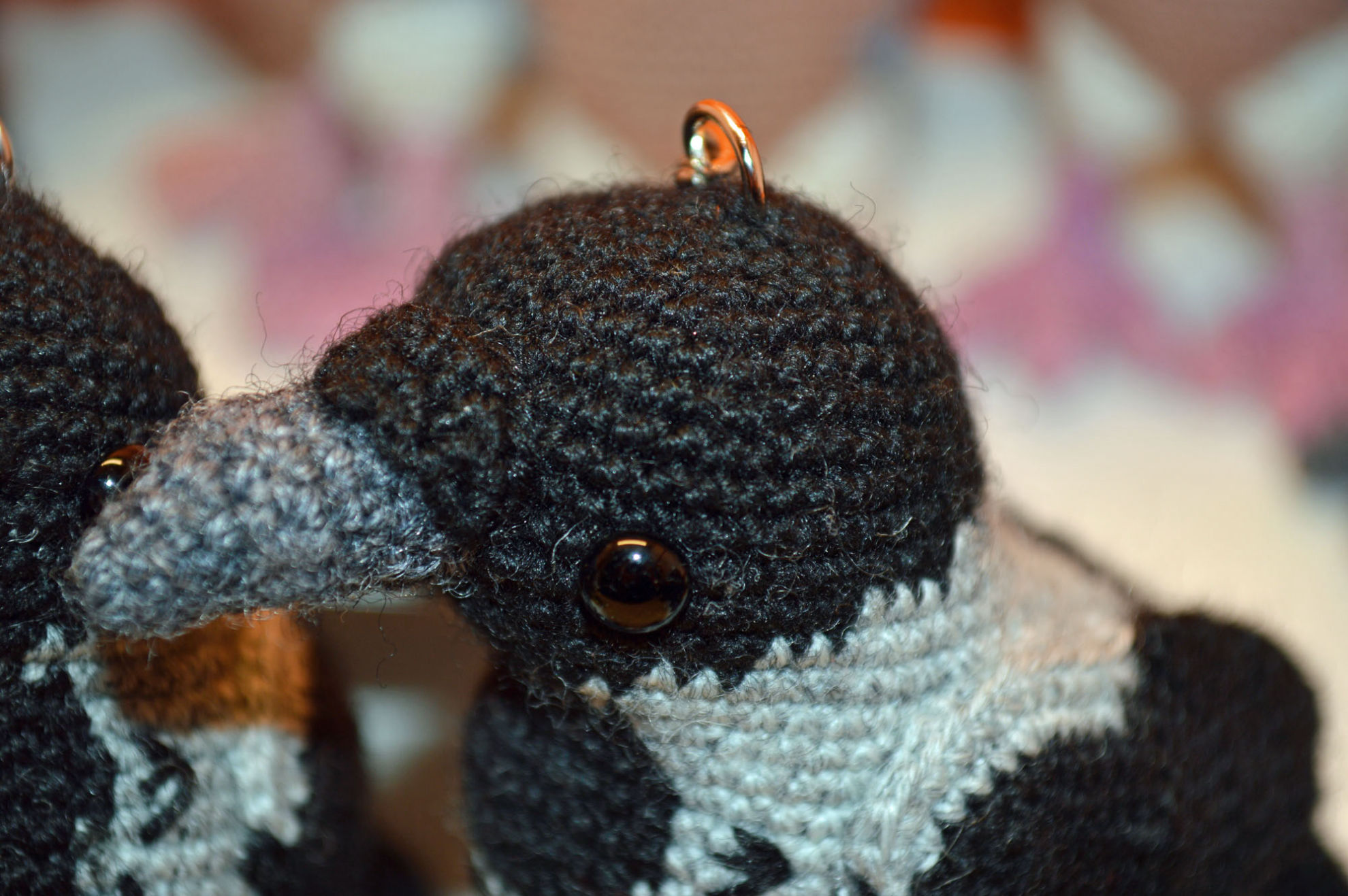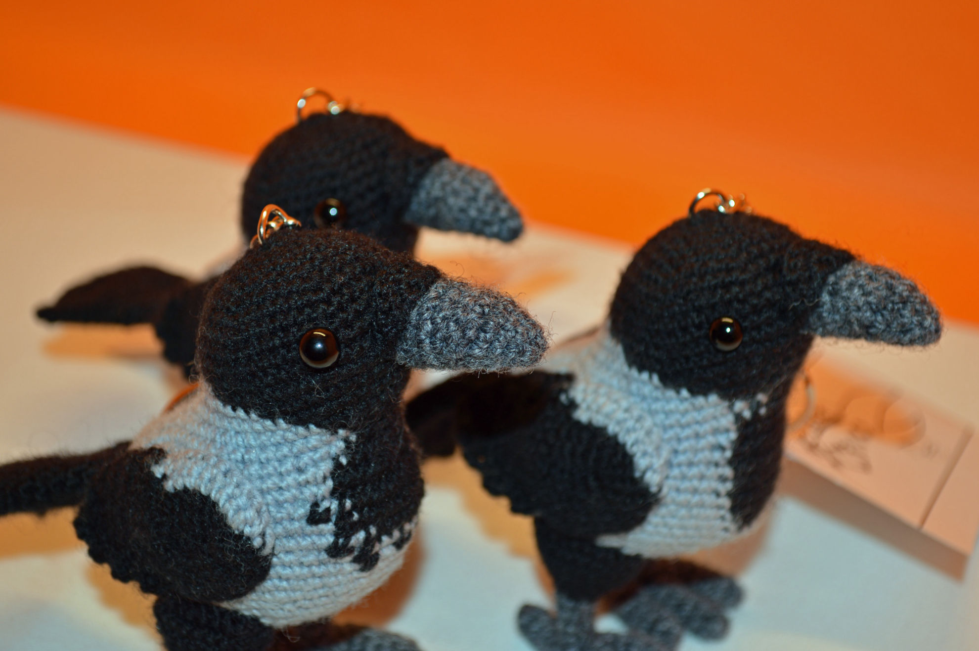 Material: Wolle Schwarz, Silber, Grau, Glasaugen, Bastelwatte
