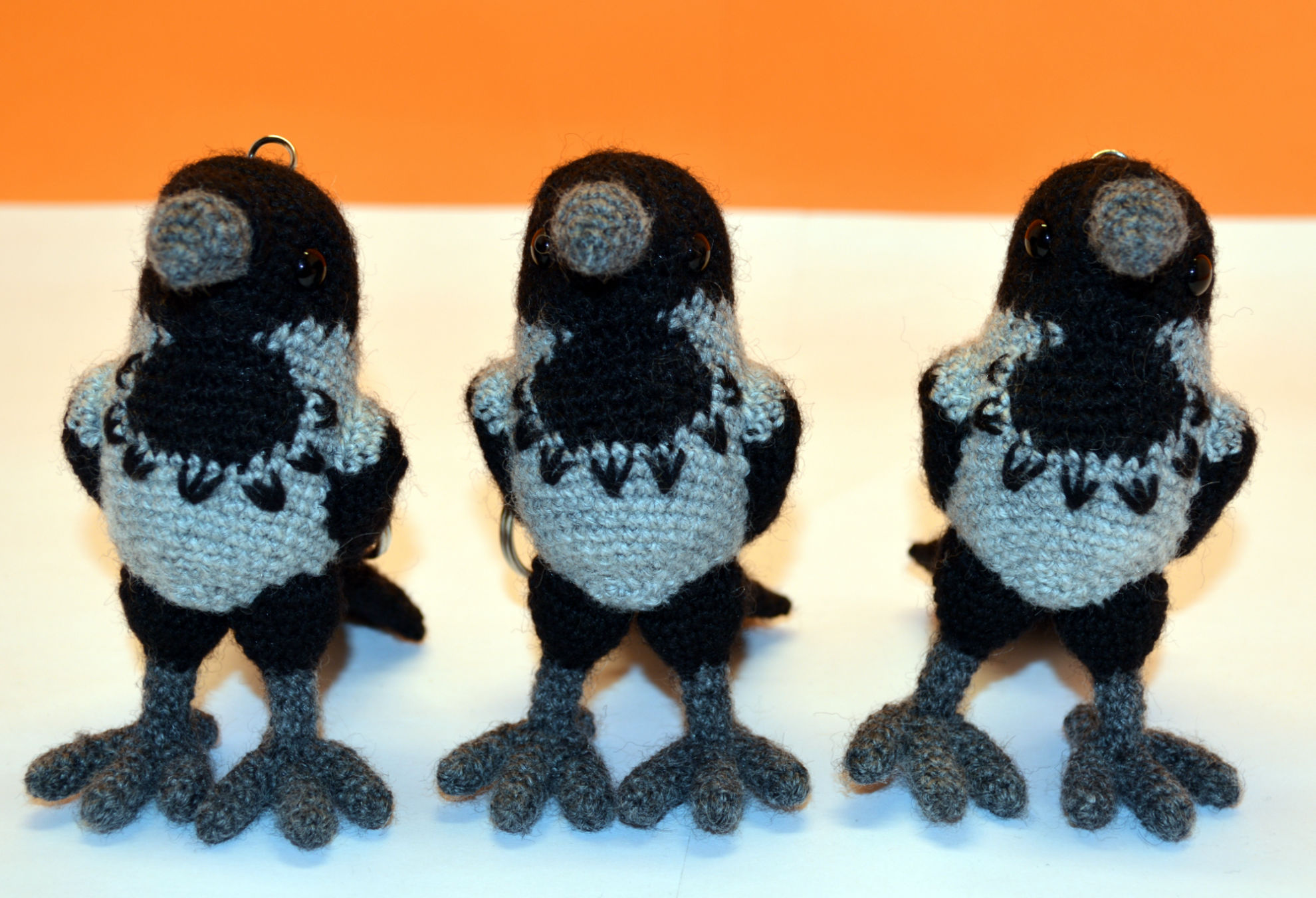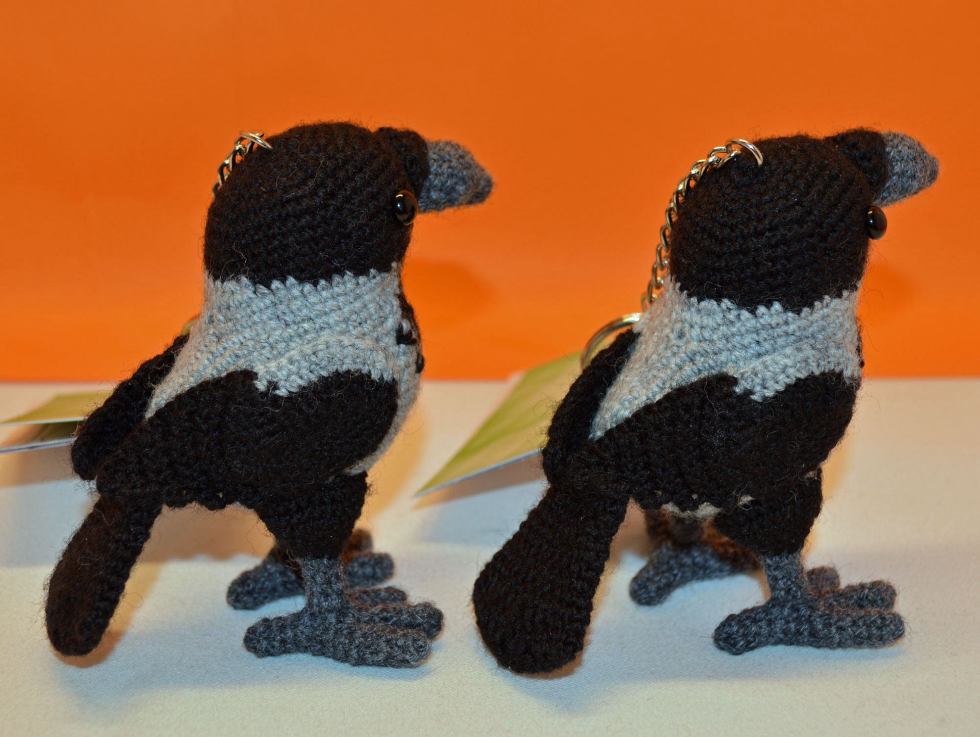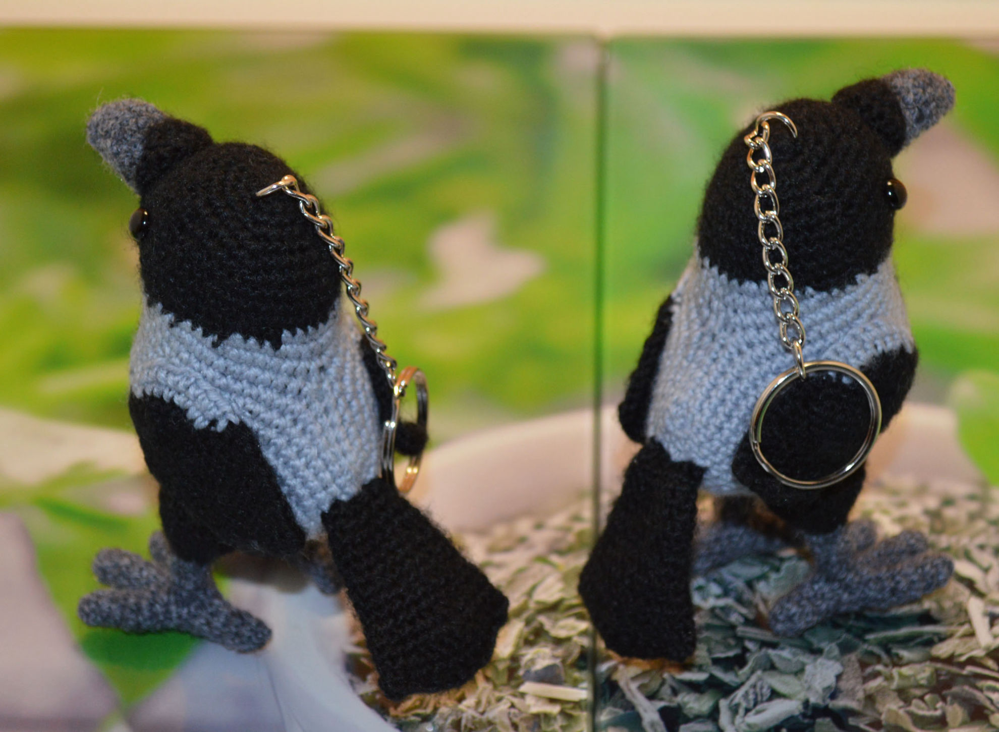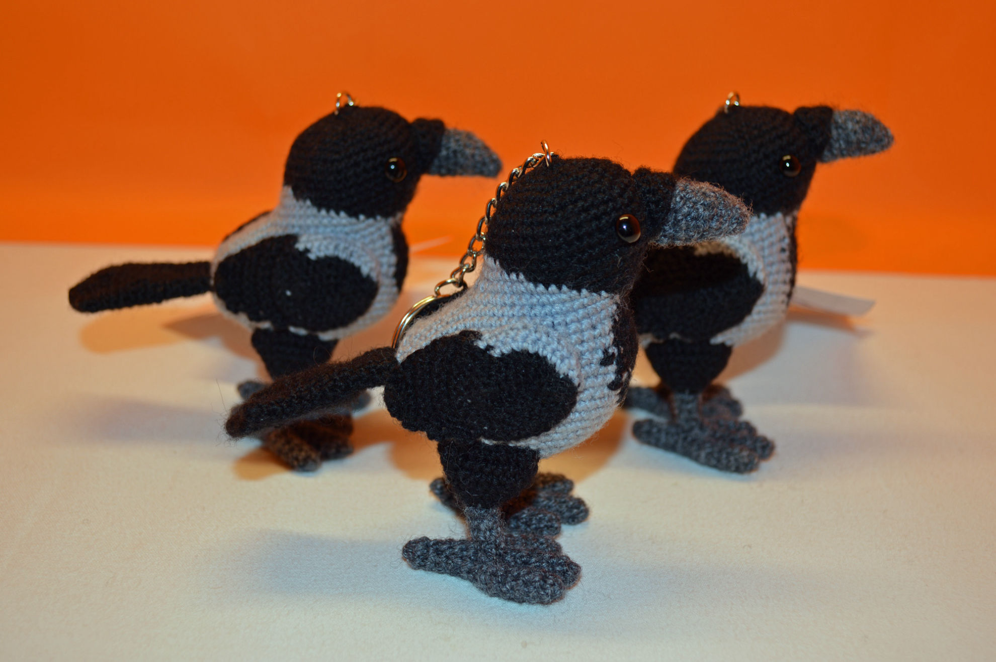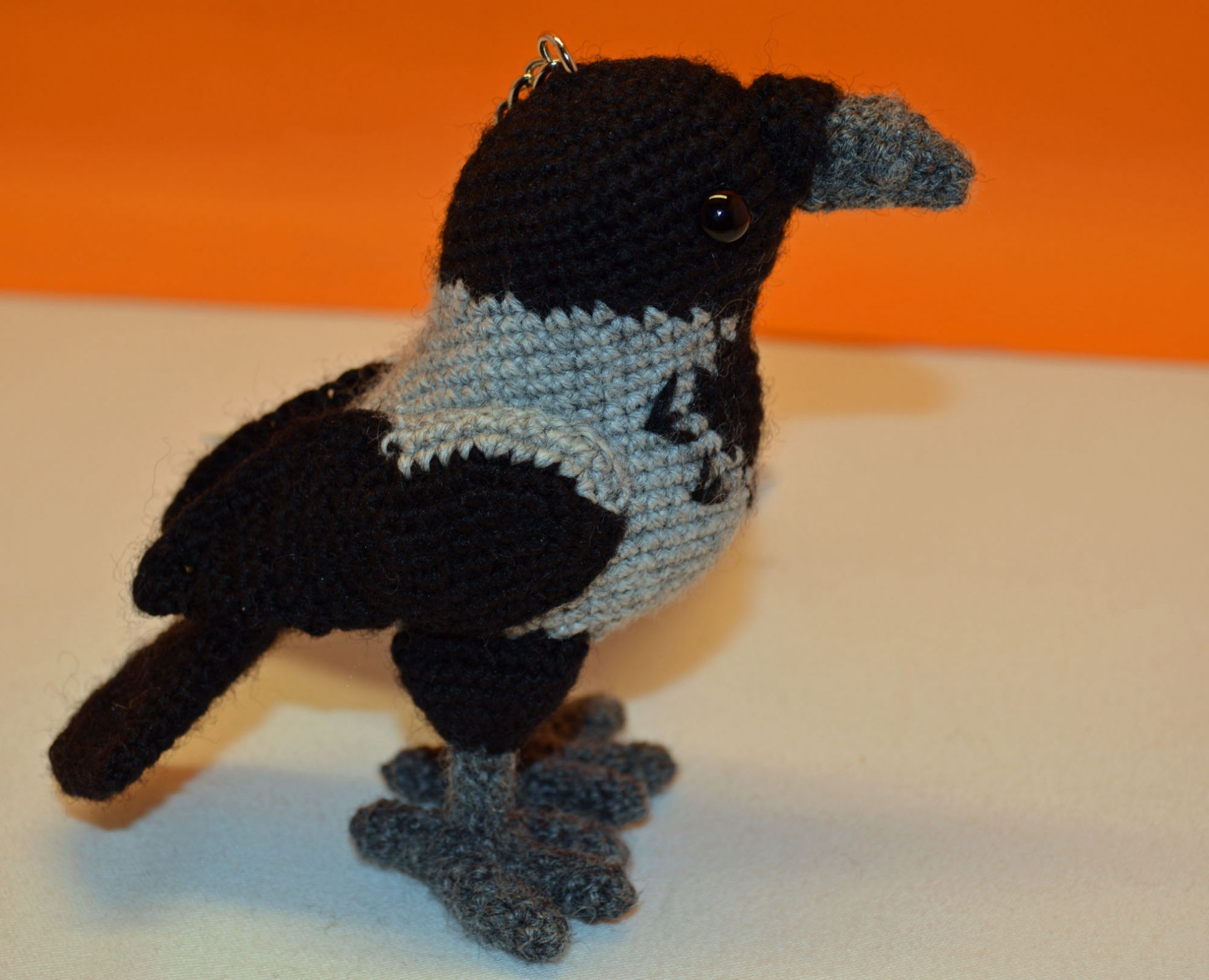 Material: Wolle Schwarz, Silber, Grau, Glasaugen, Bastelwatte
