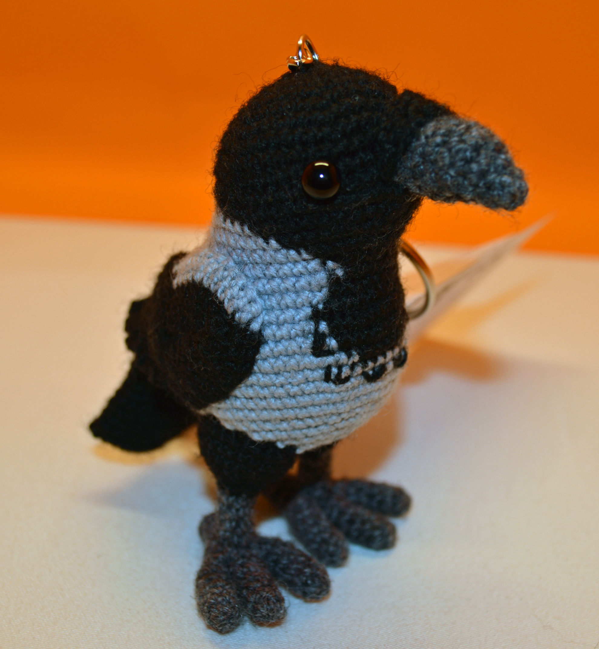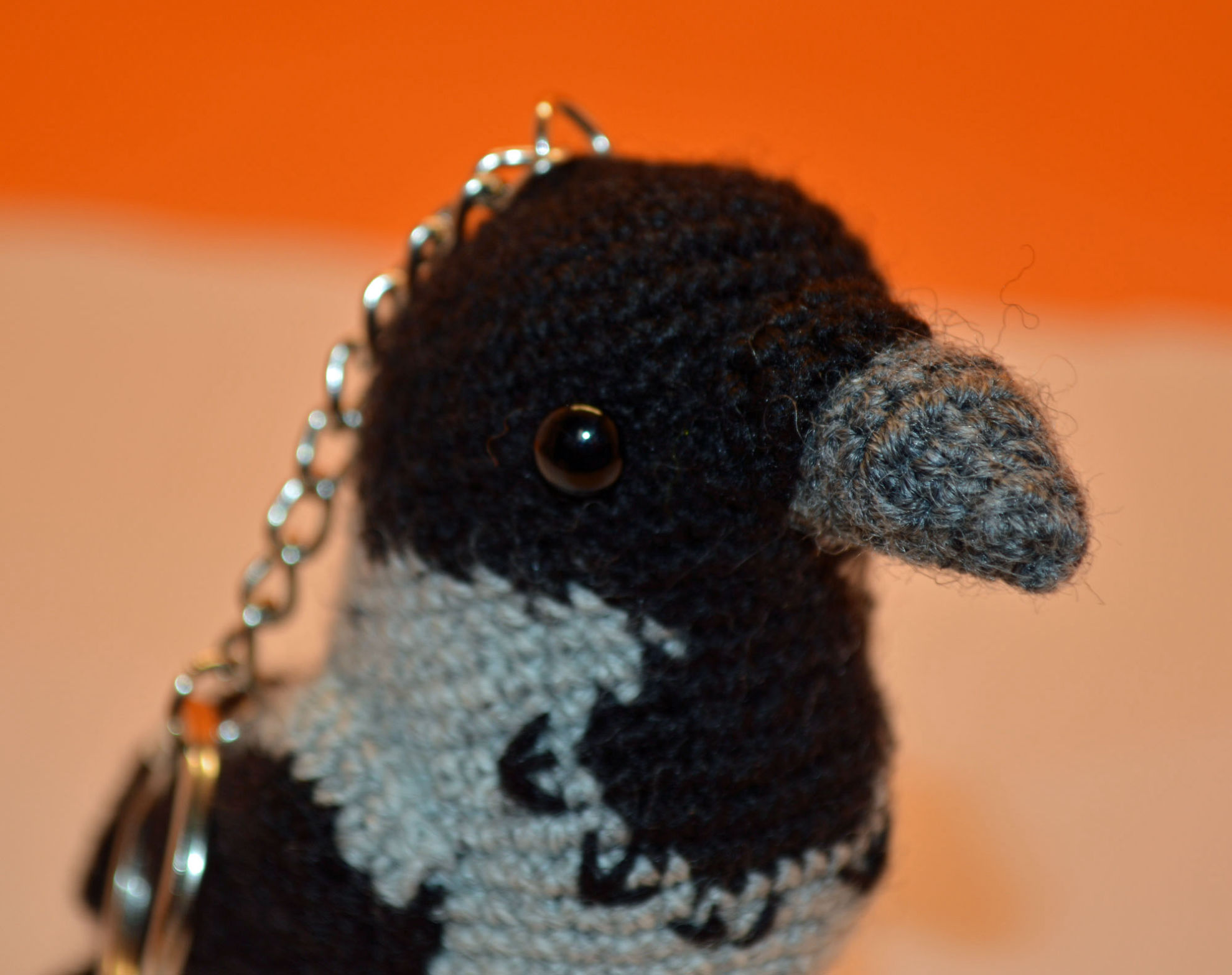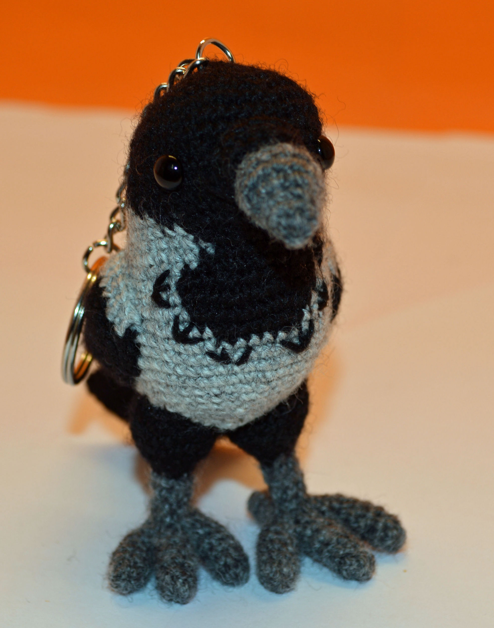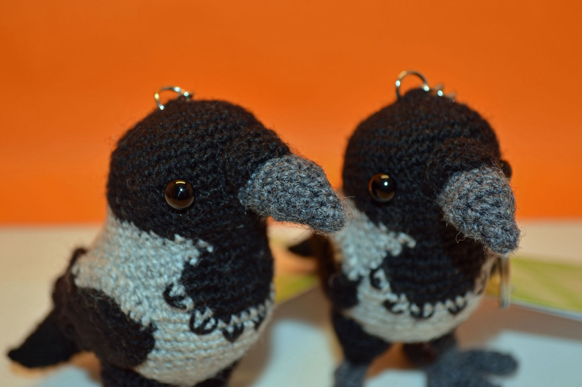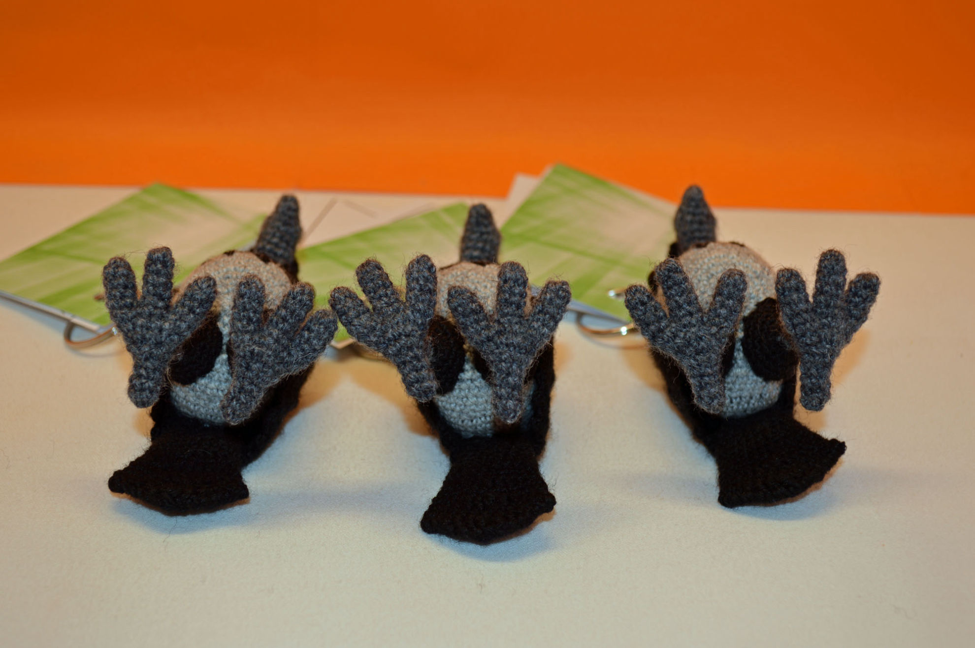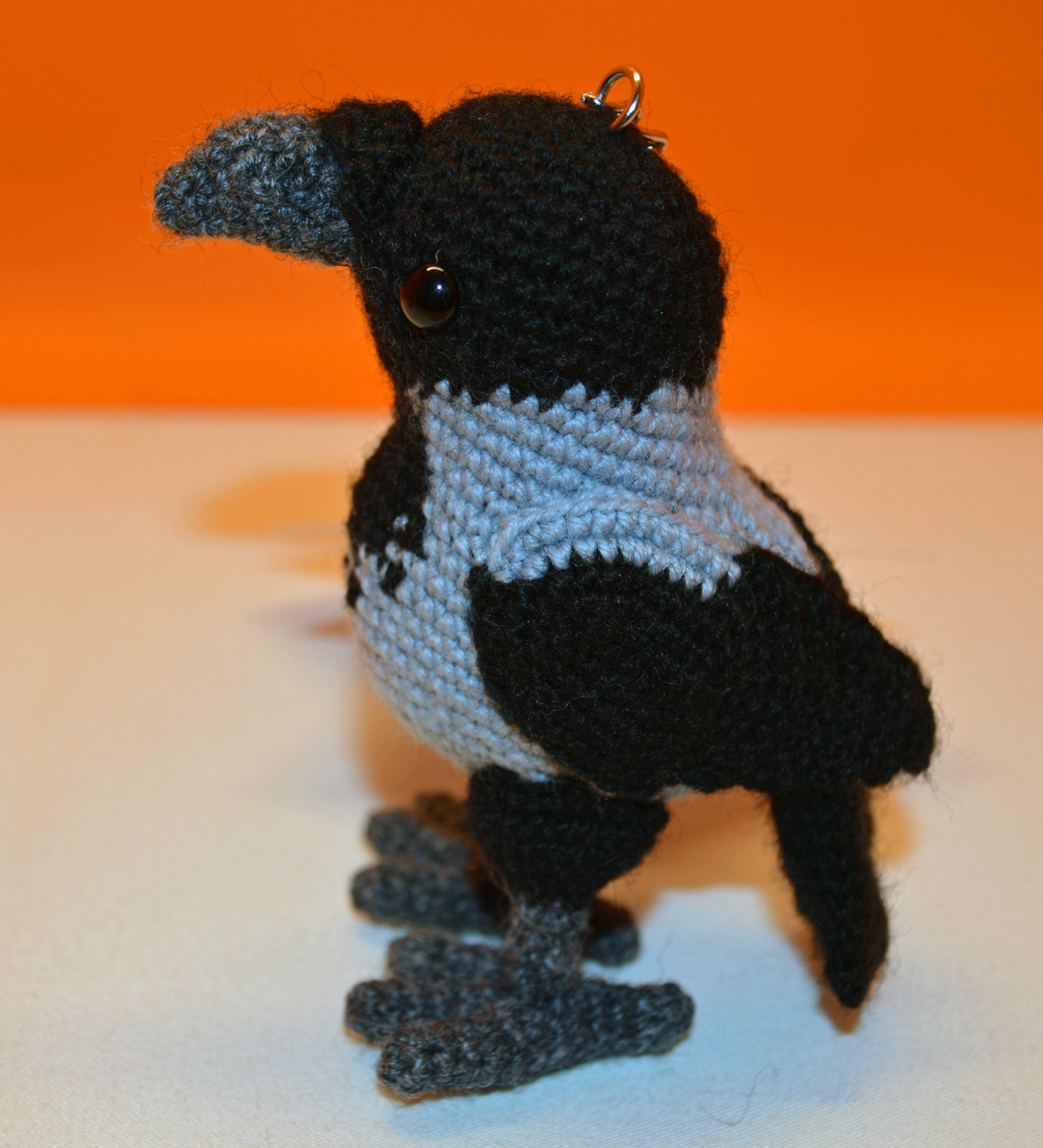 Material: Wolle Schwarz, Silber, Grau, Glasaugen, Bastelwatte