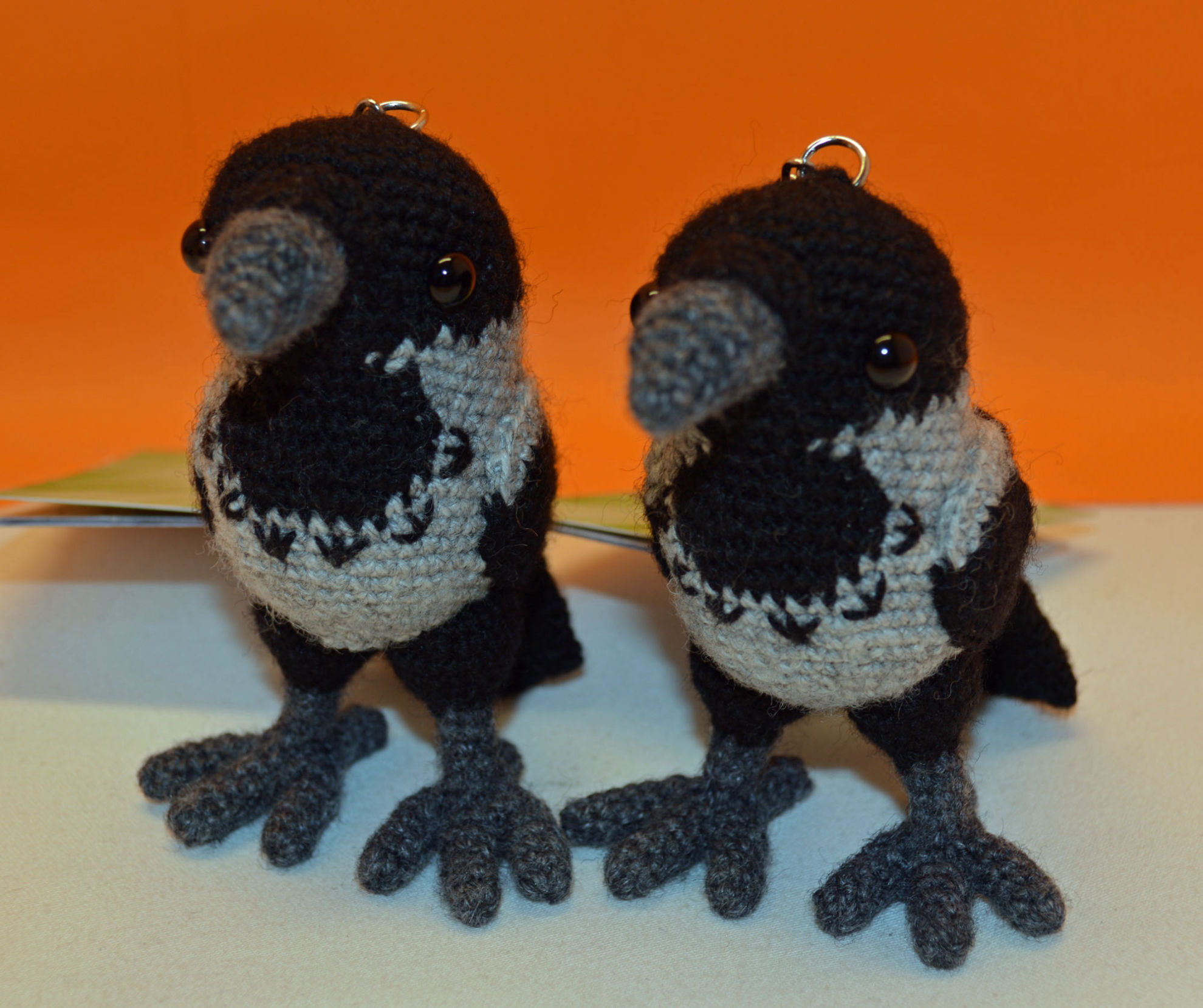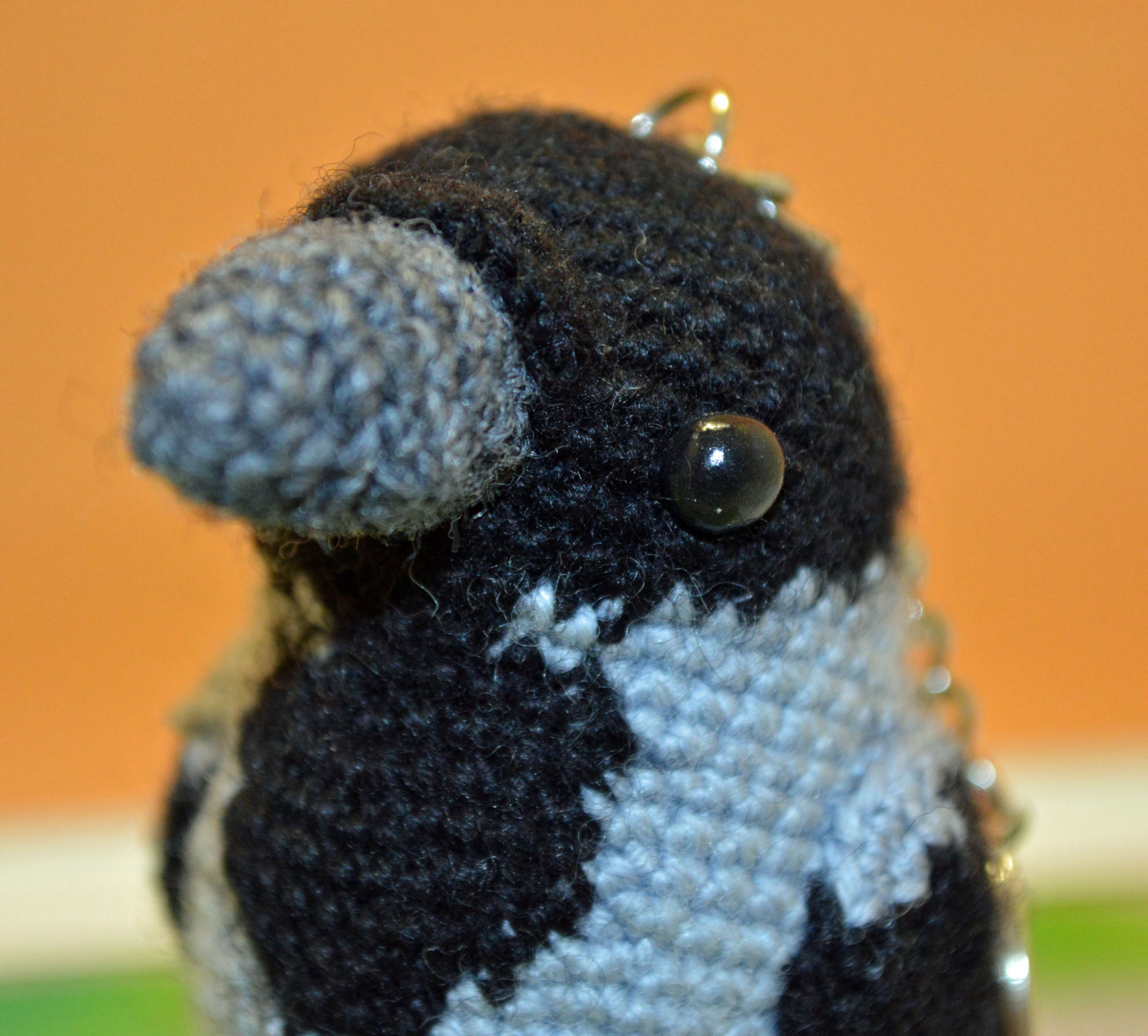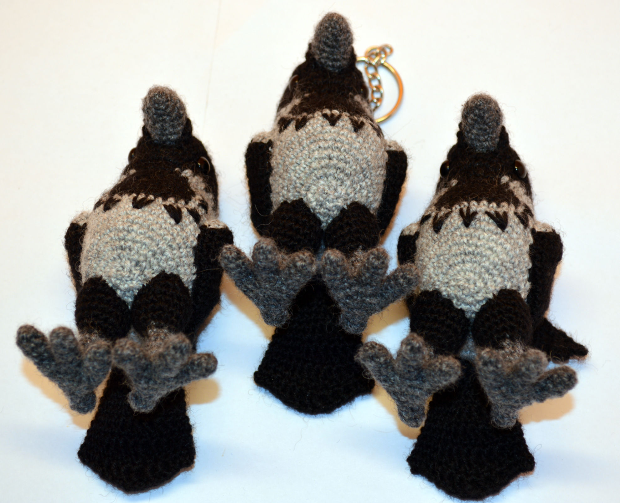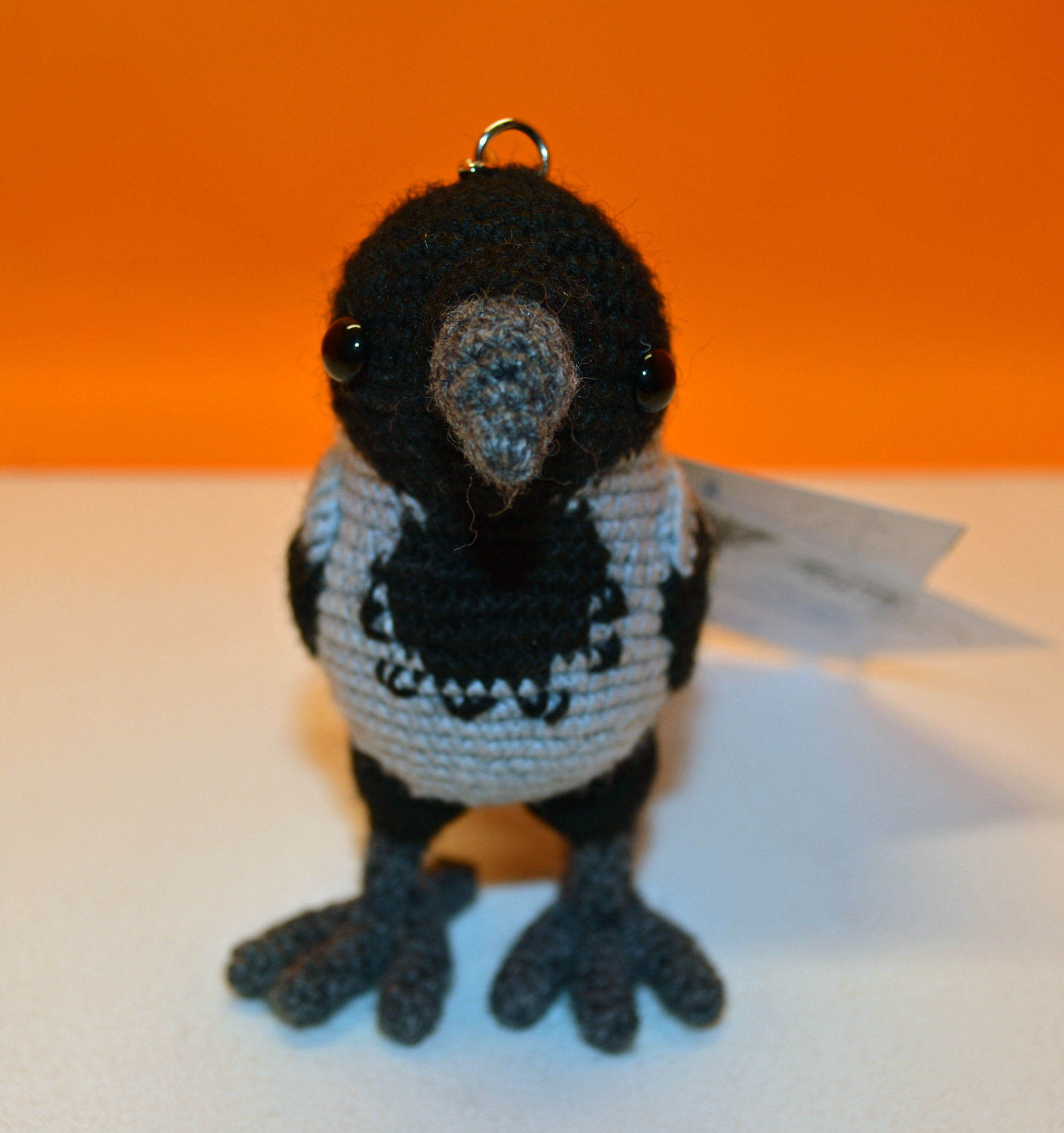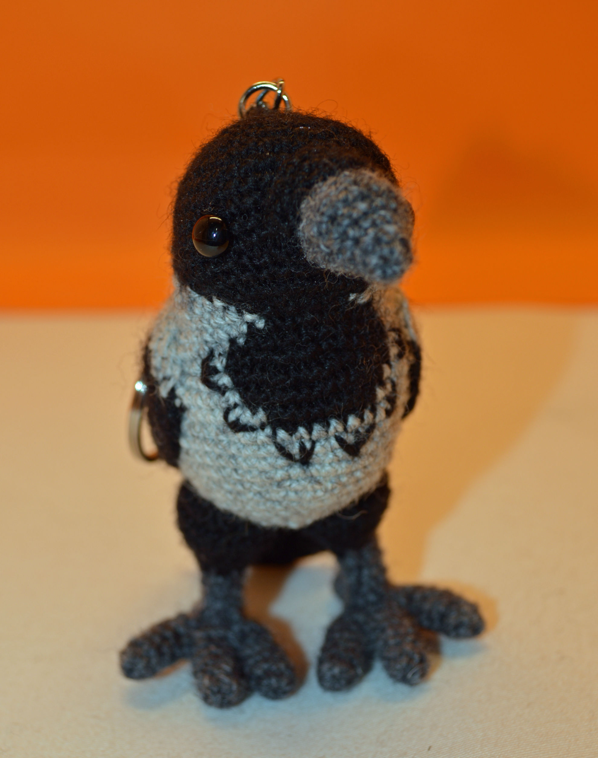 Material: Wolle Schwarz, Silber, Grau, Glasaugen, Bastelwatte