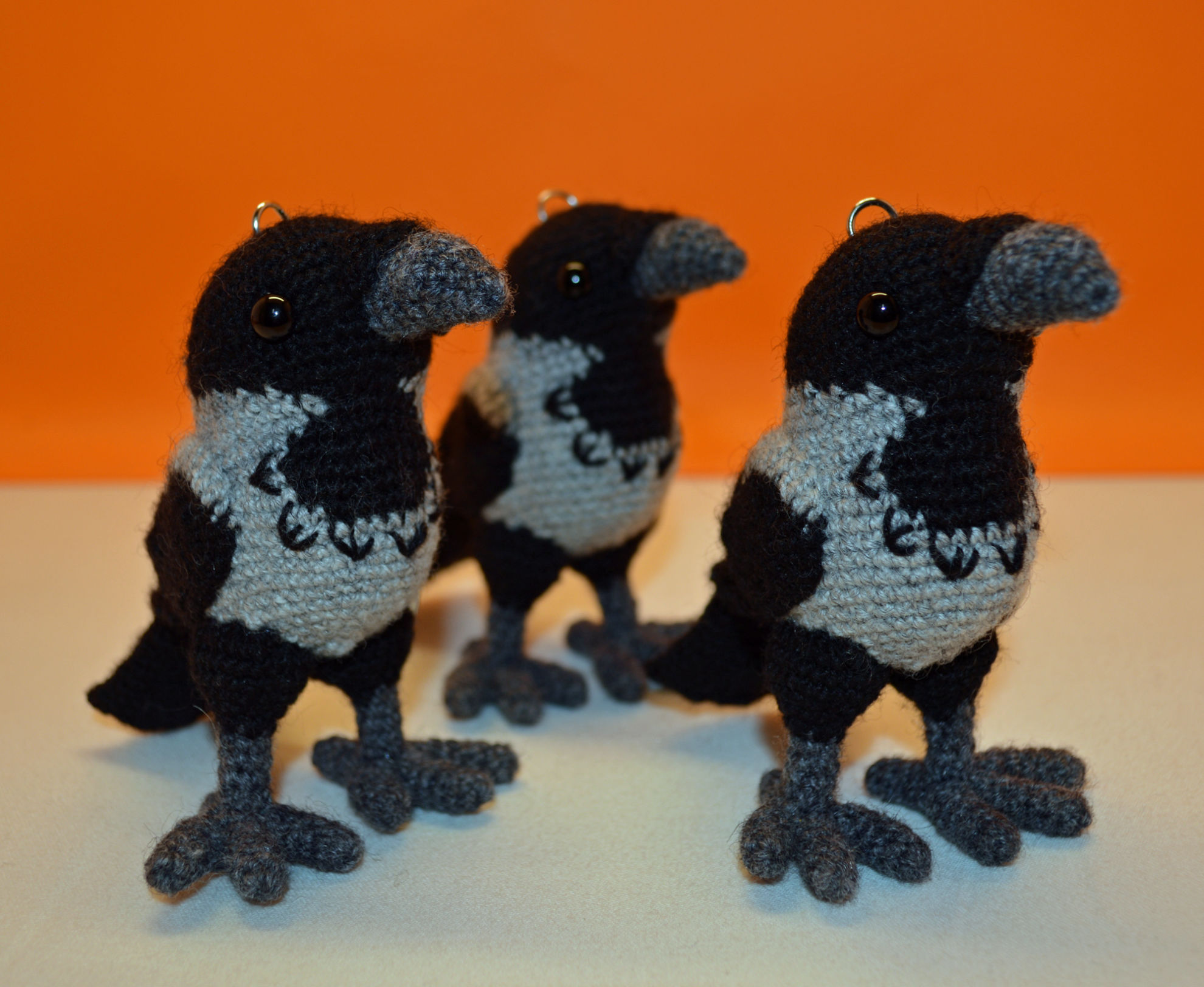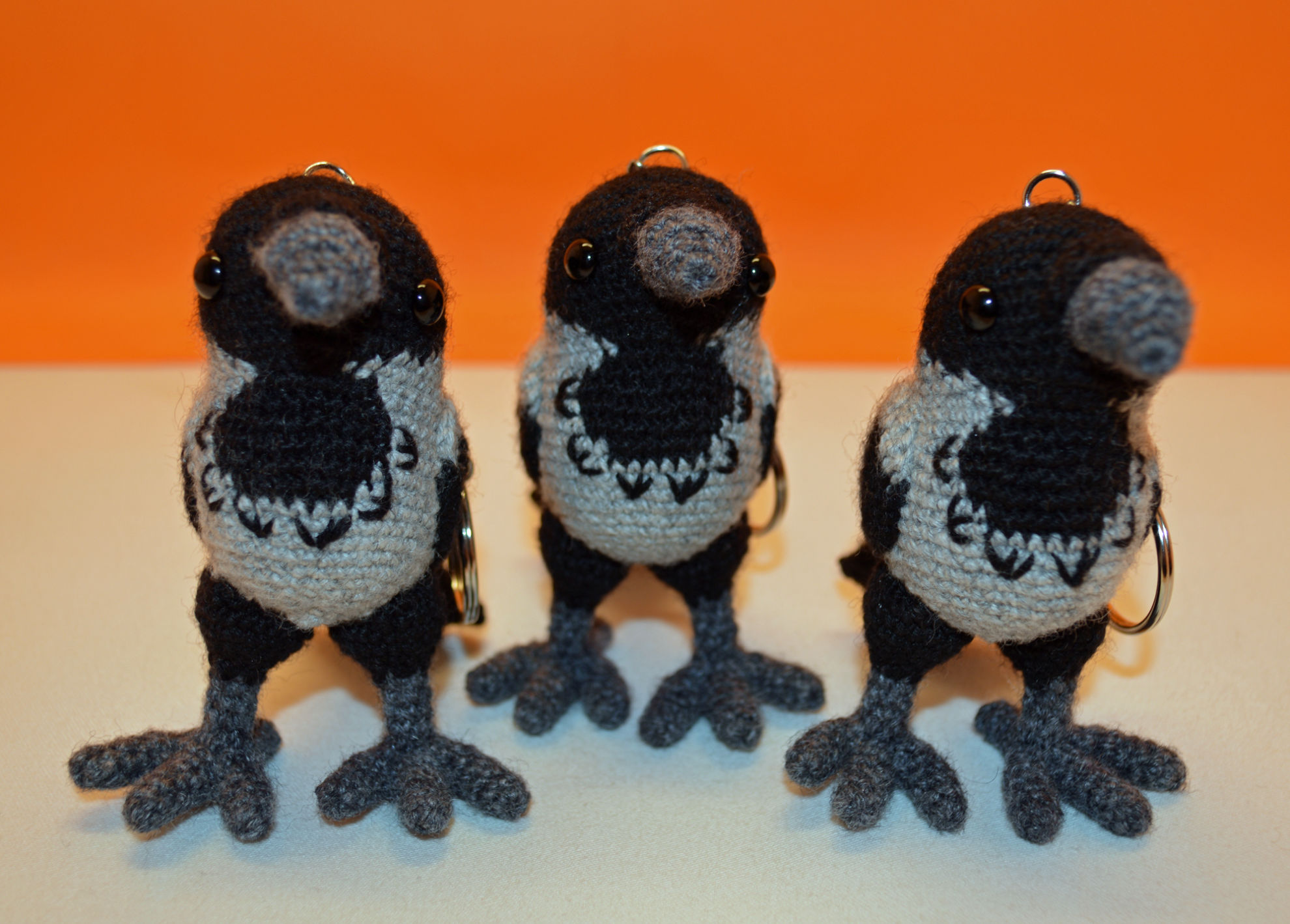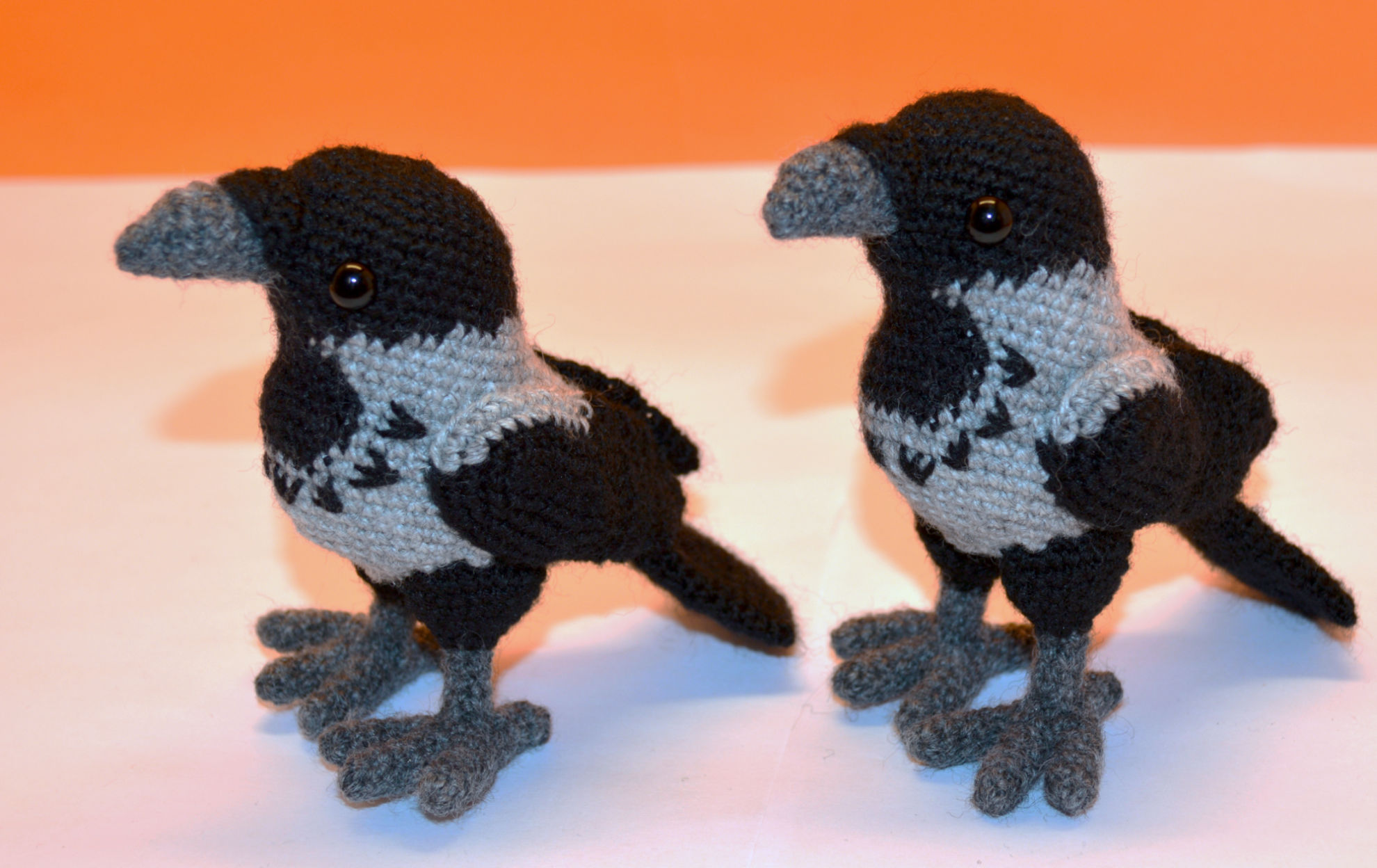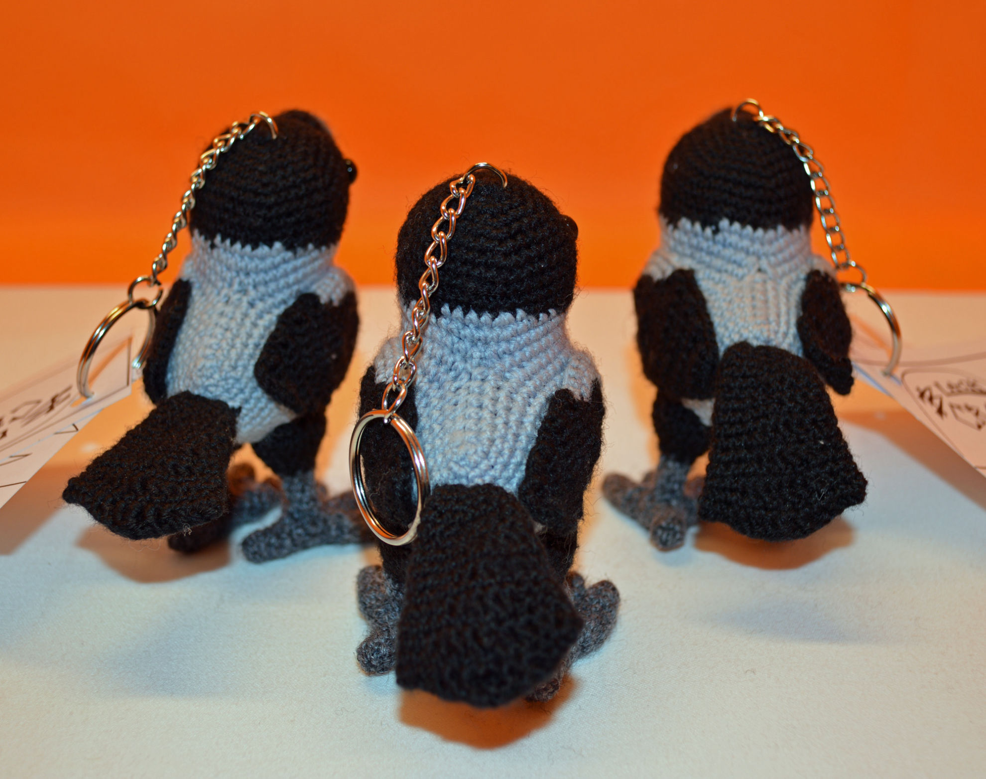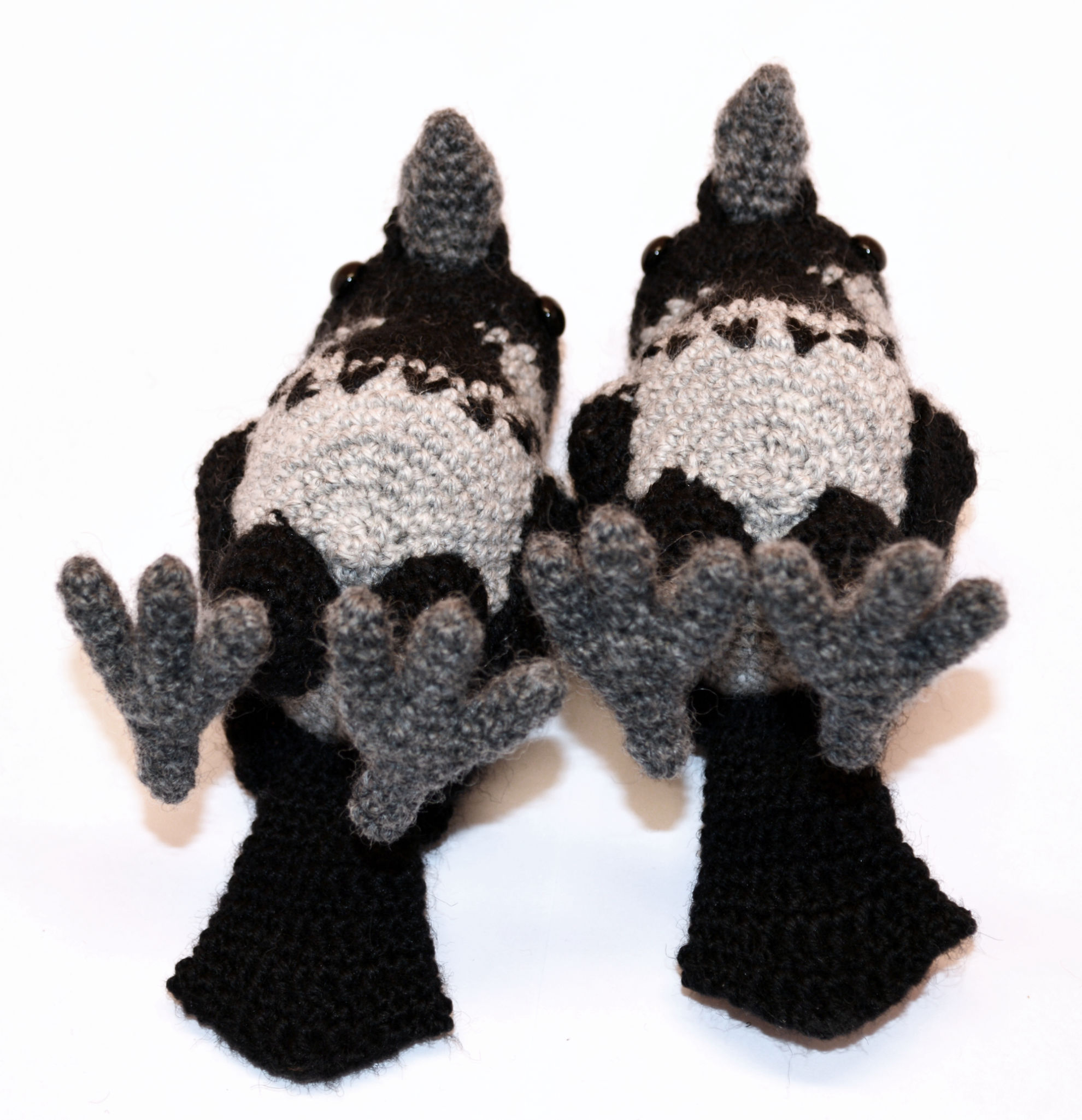 Material: Wolle Schwarz, Silber, Grau, Glasaugen, Bastelwatte