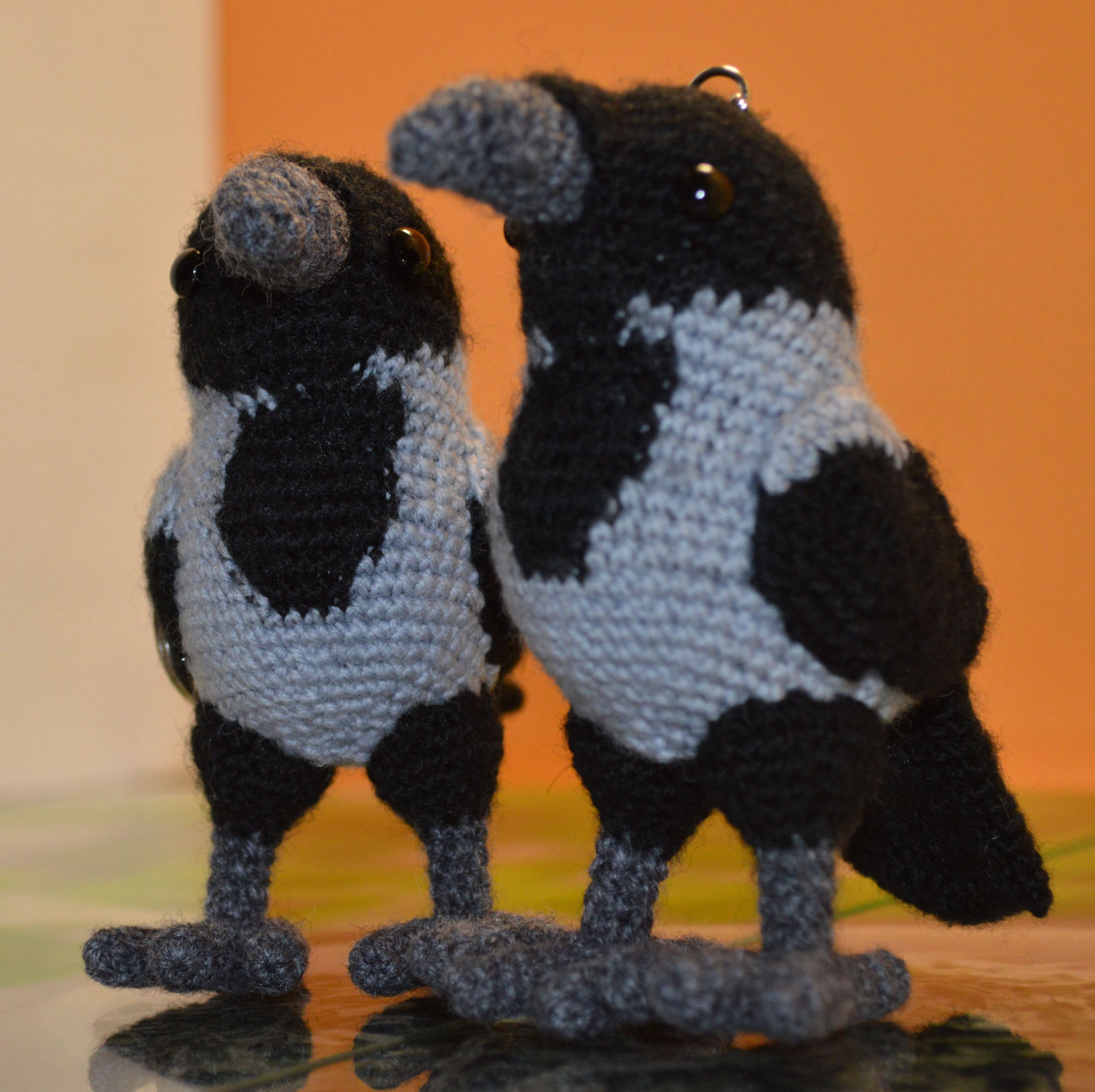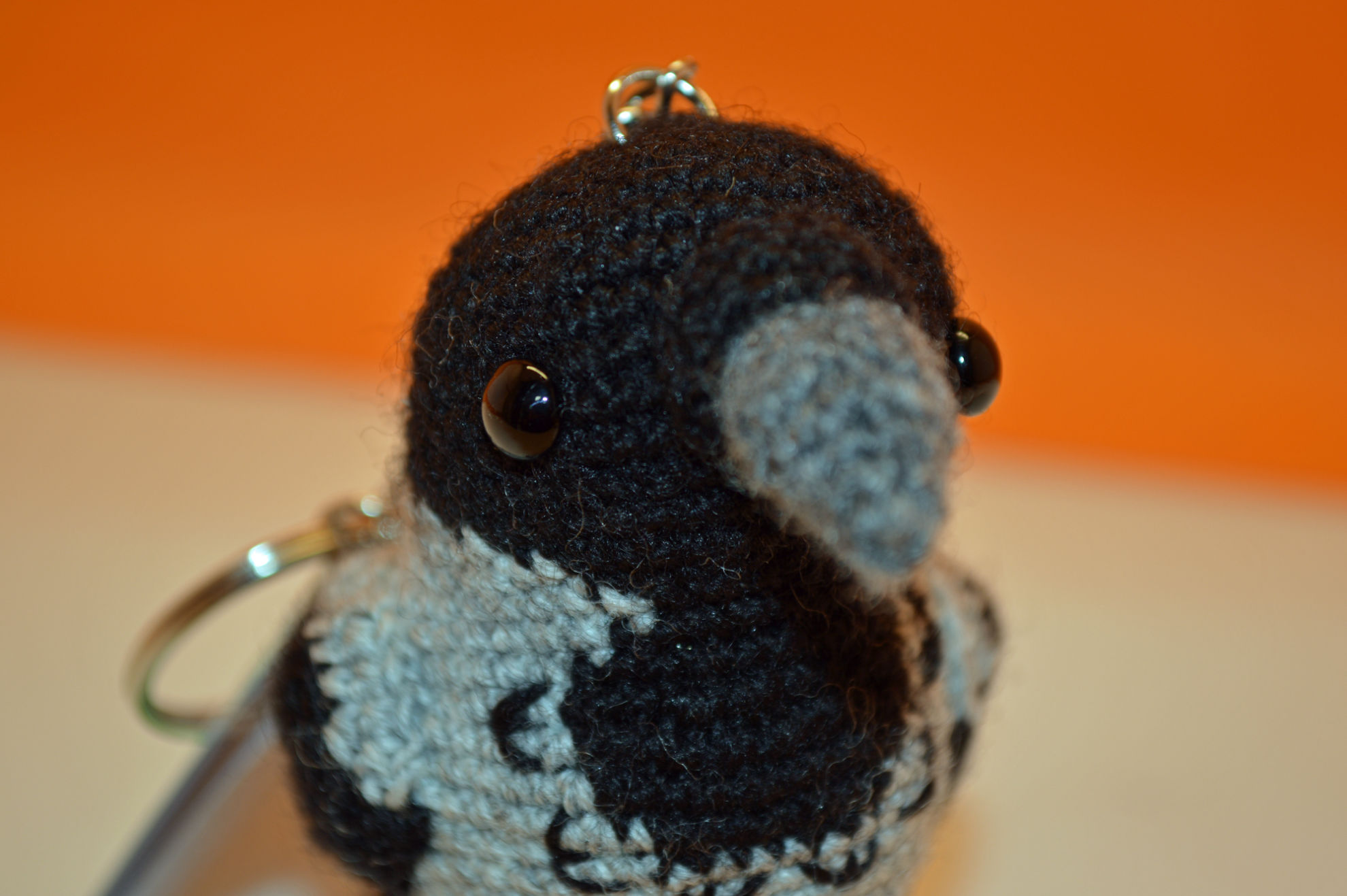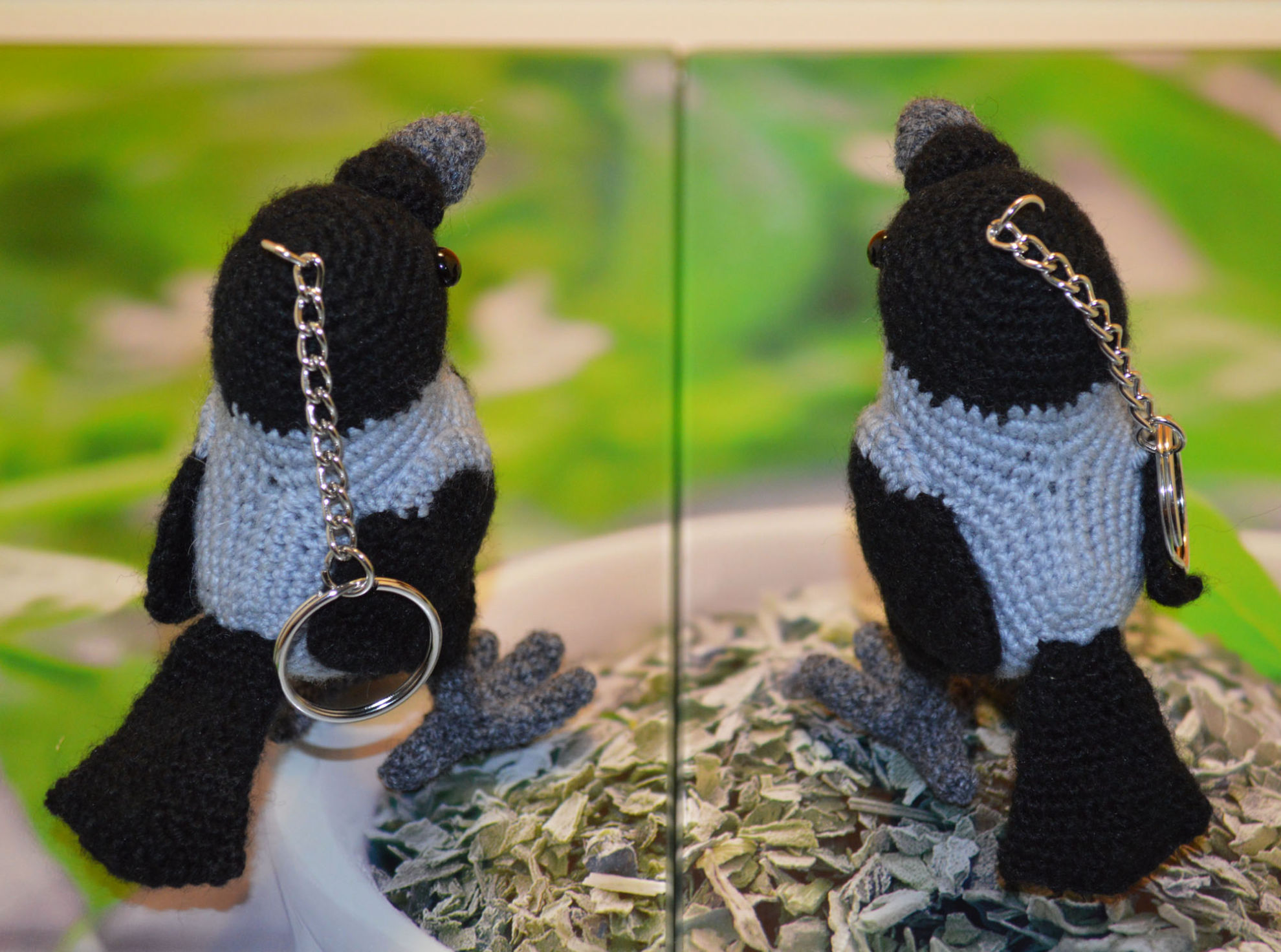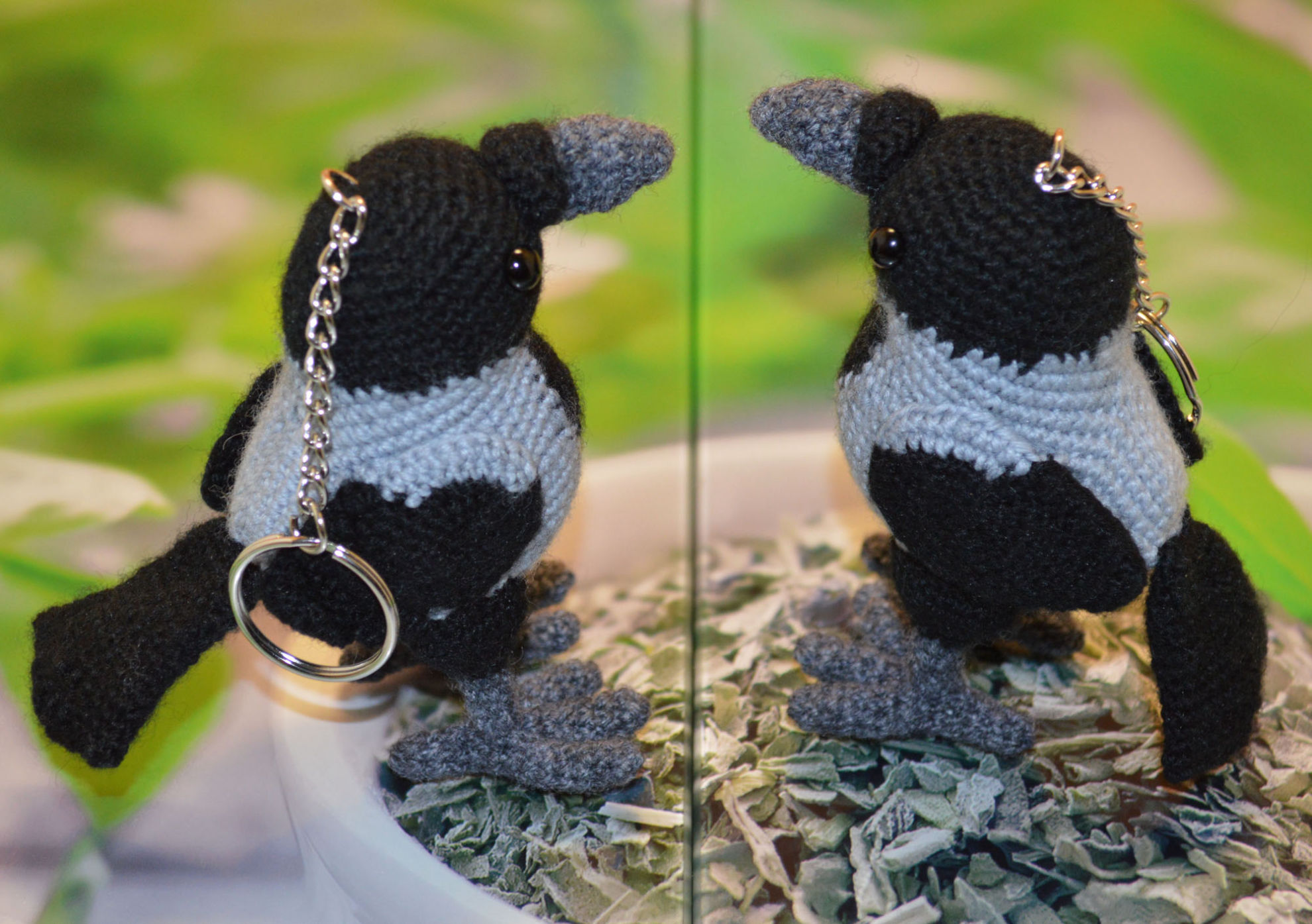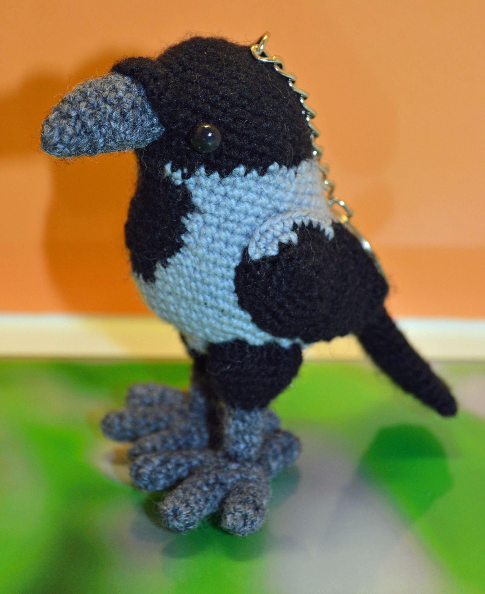 Material: Wolle Schwarz, Silber, Grau, Glasaugen, Bastelwatte