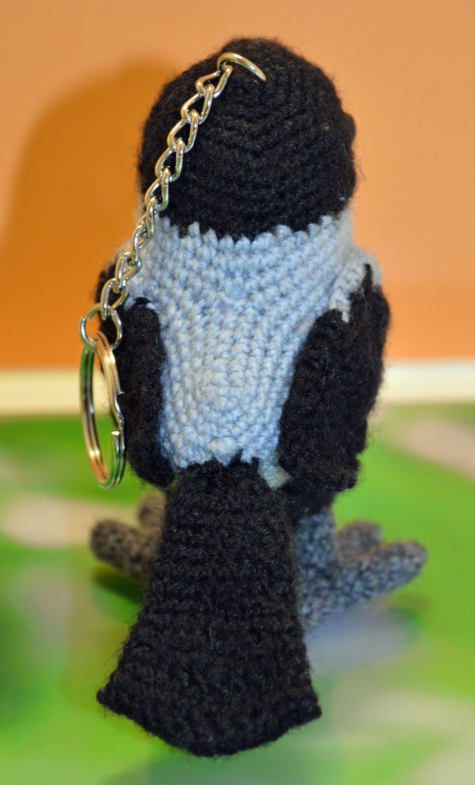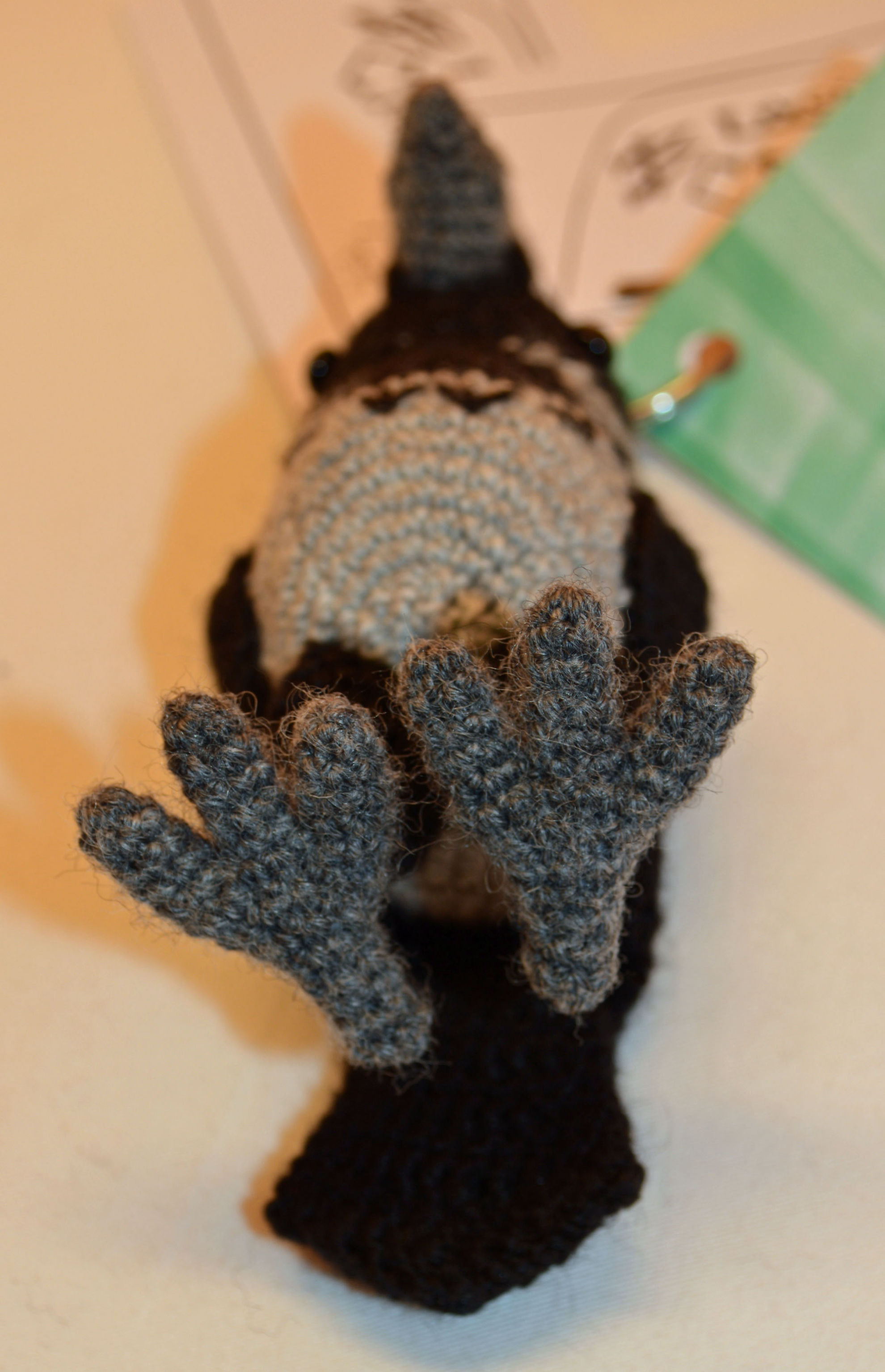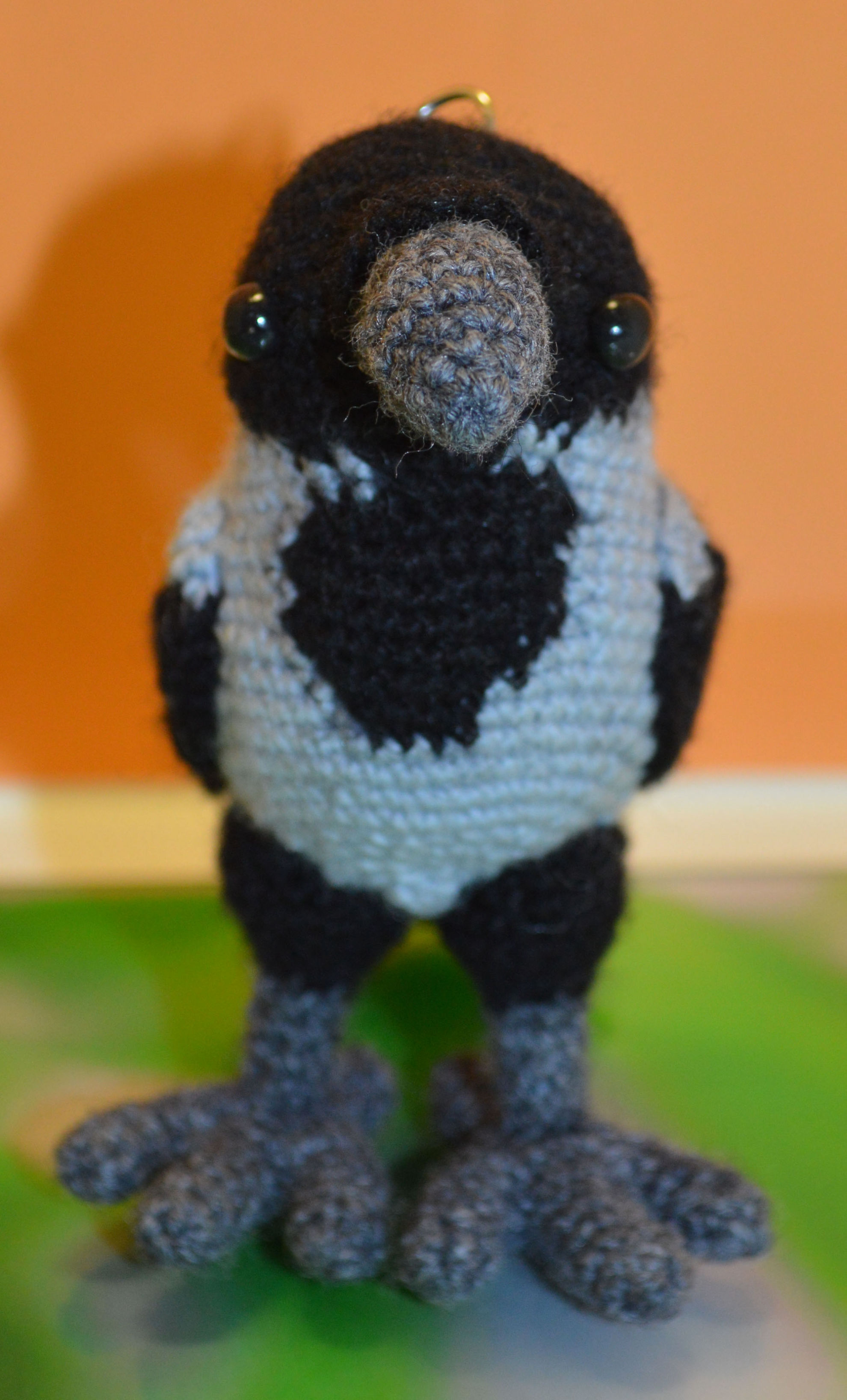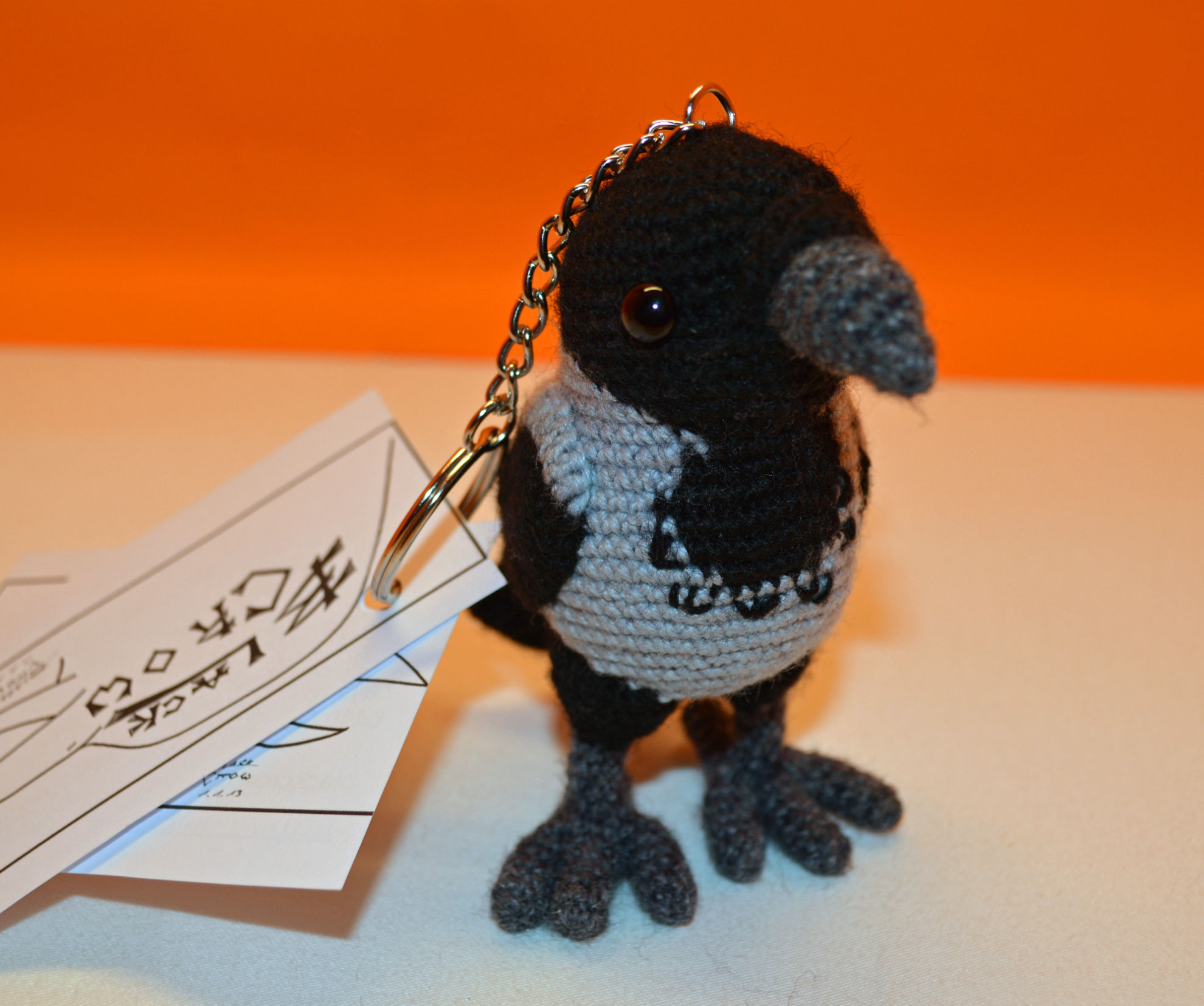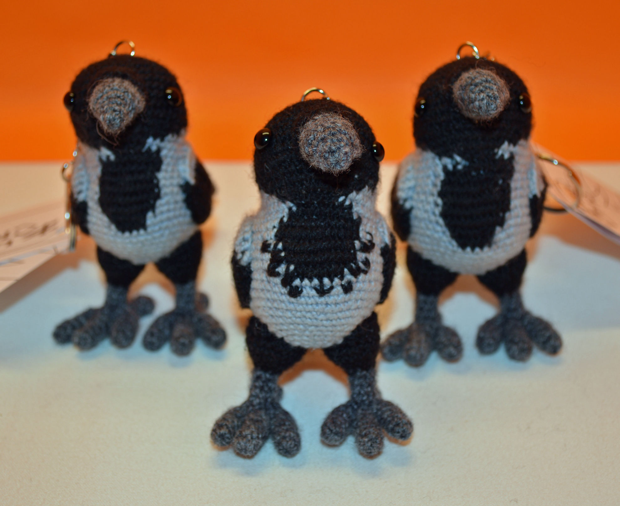 Material: Wolle Schwarz, Silber, Grau, Glasaugen, Bastelwatte