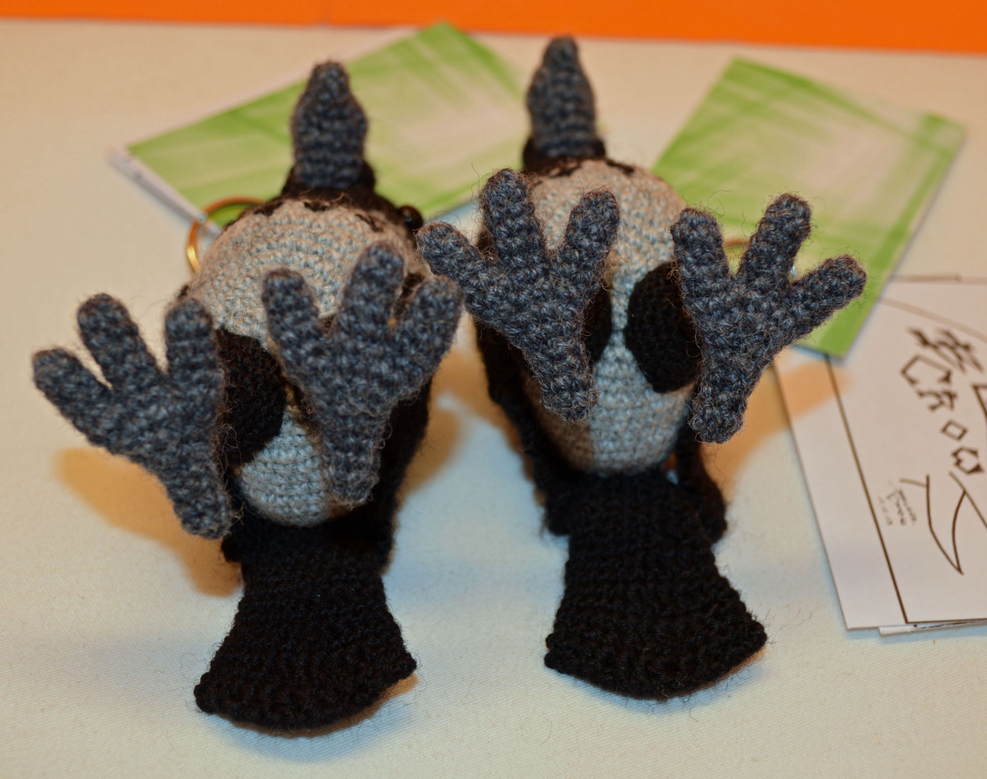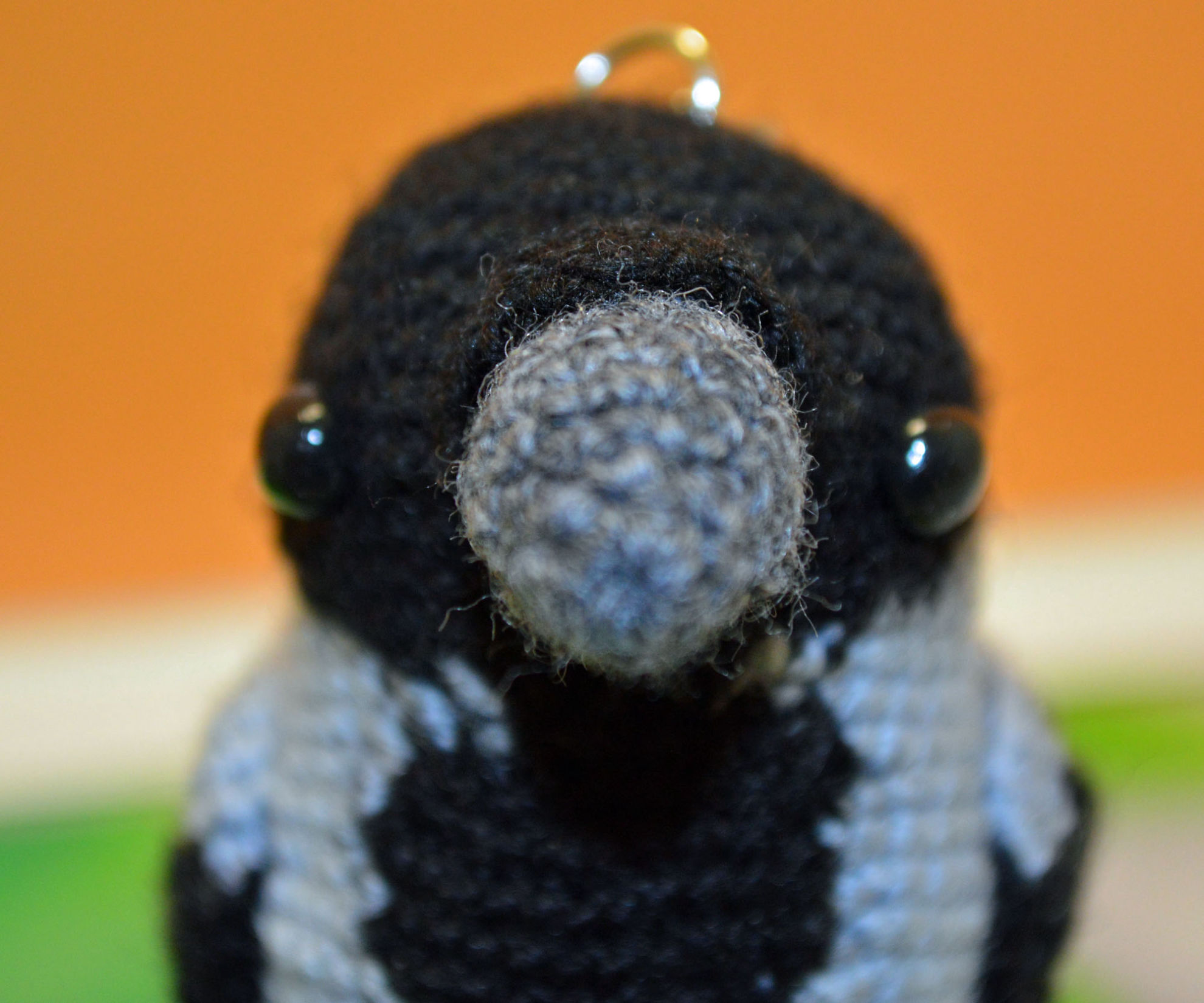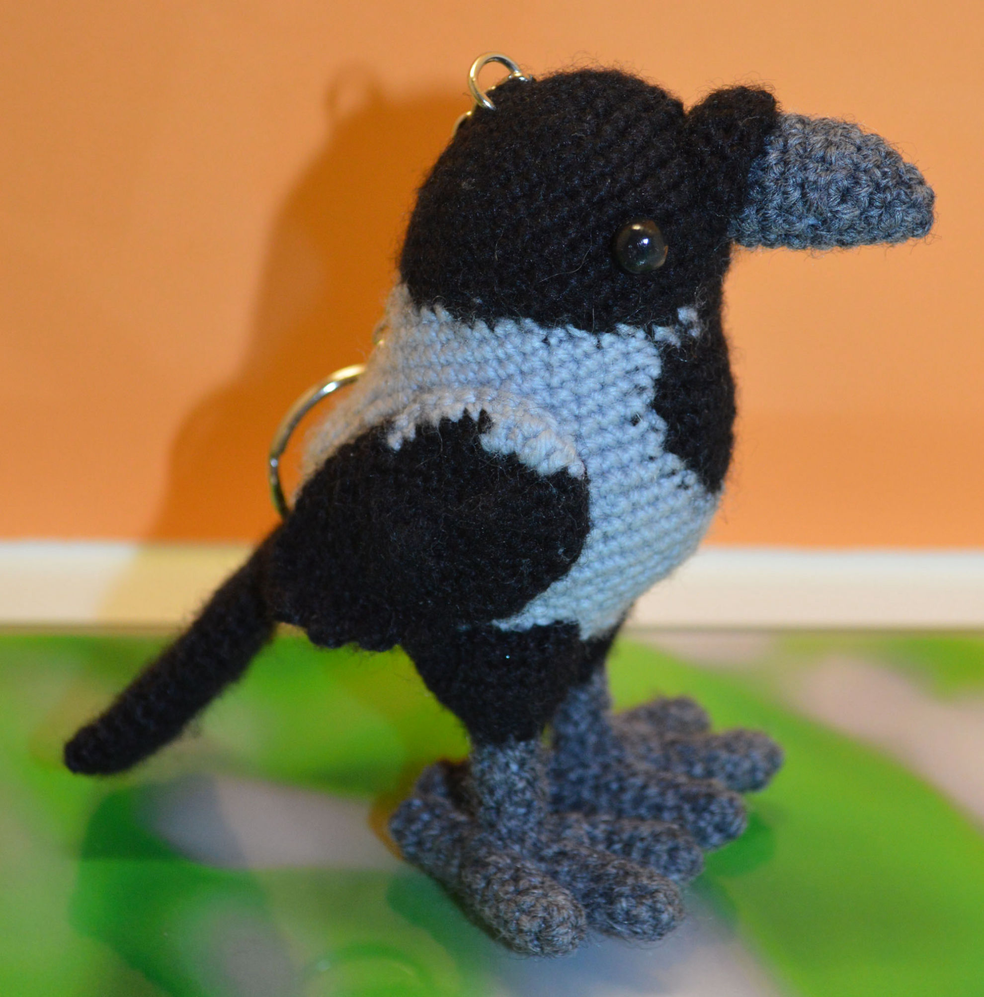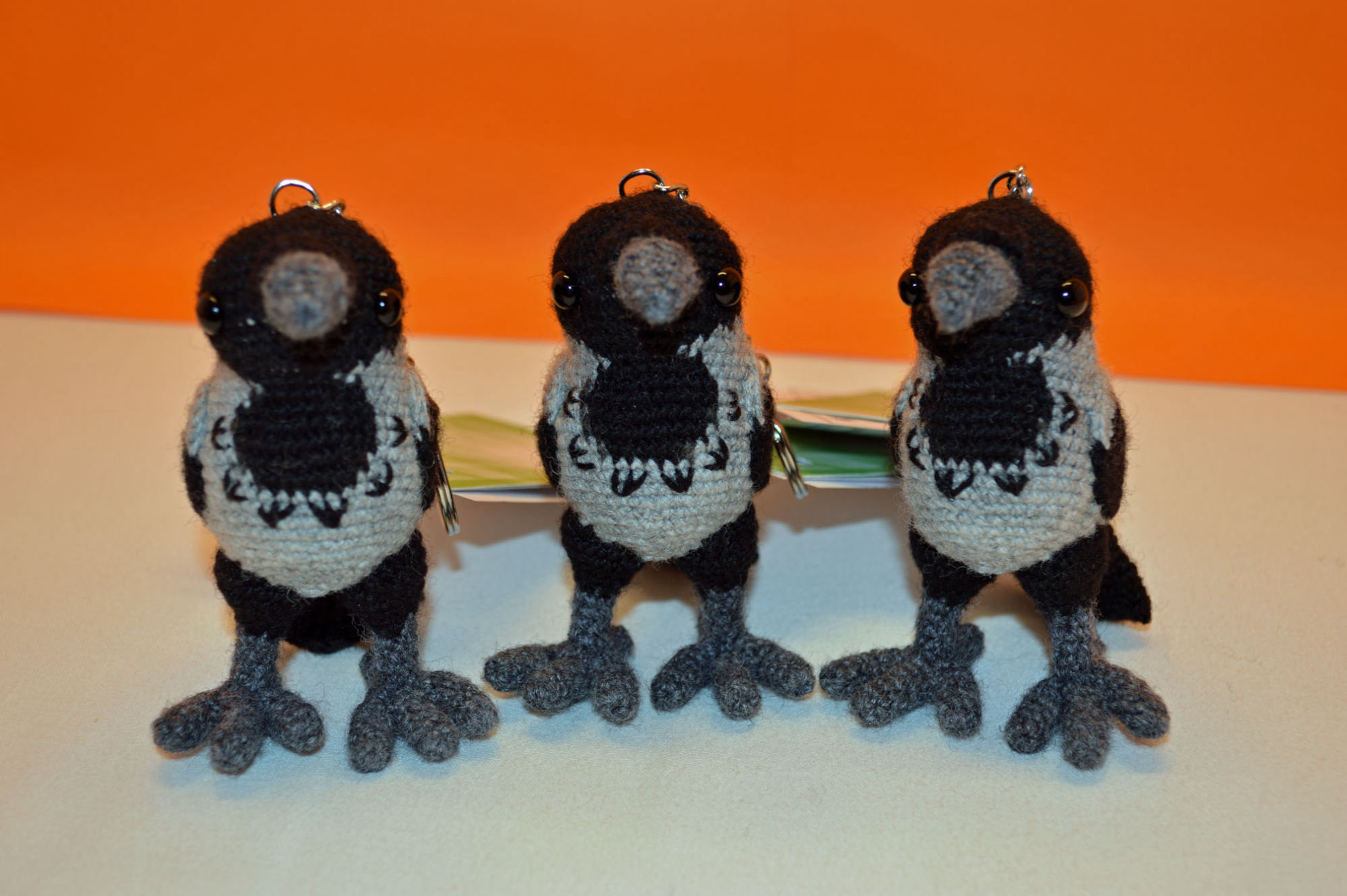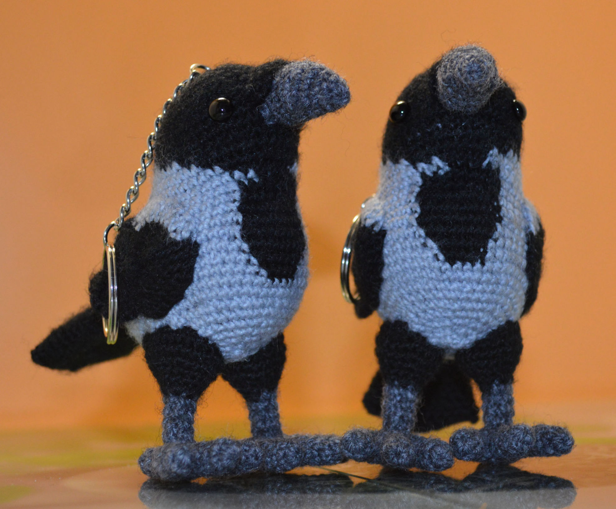 Material: Wolle Schwarz, Silber, Grau, Glasaugen, Bastelwatte