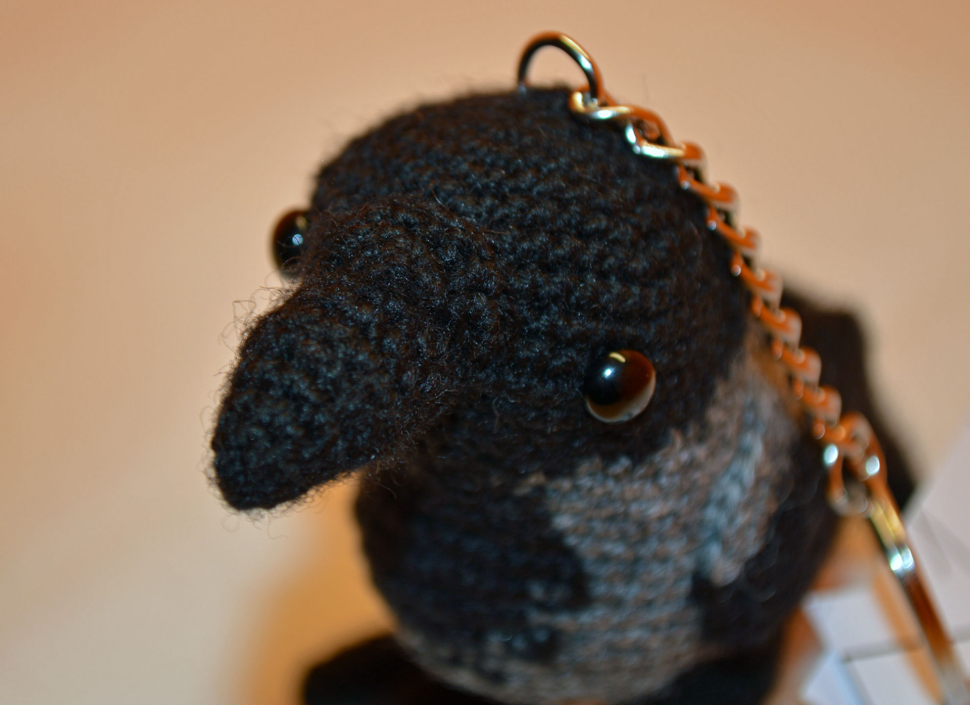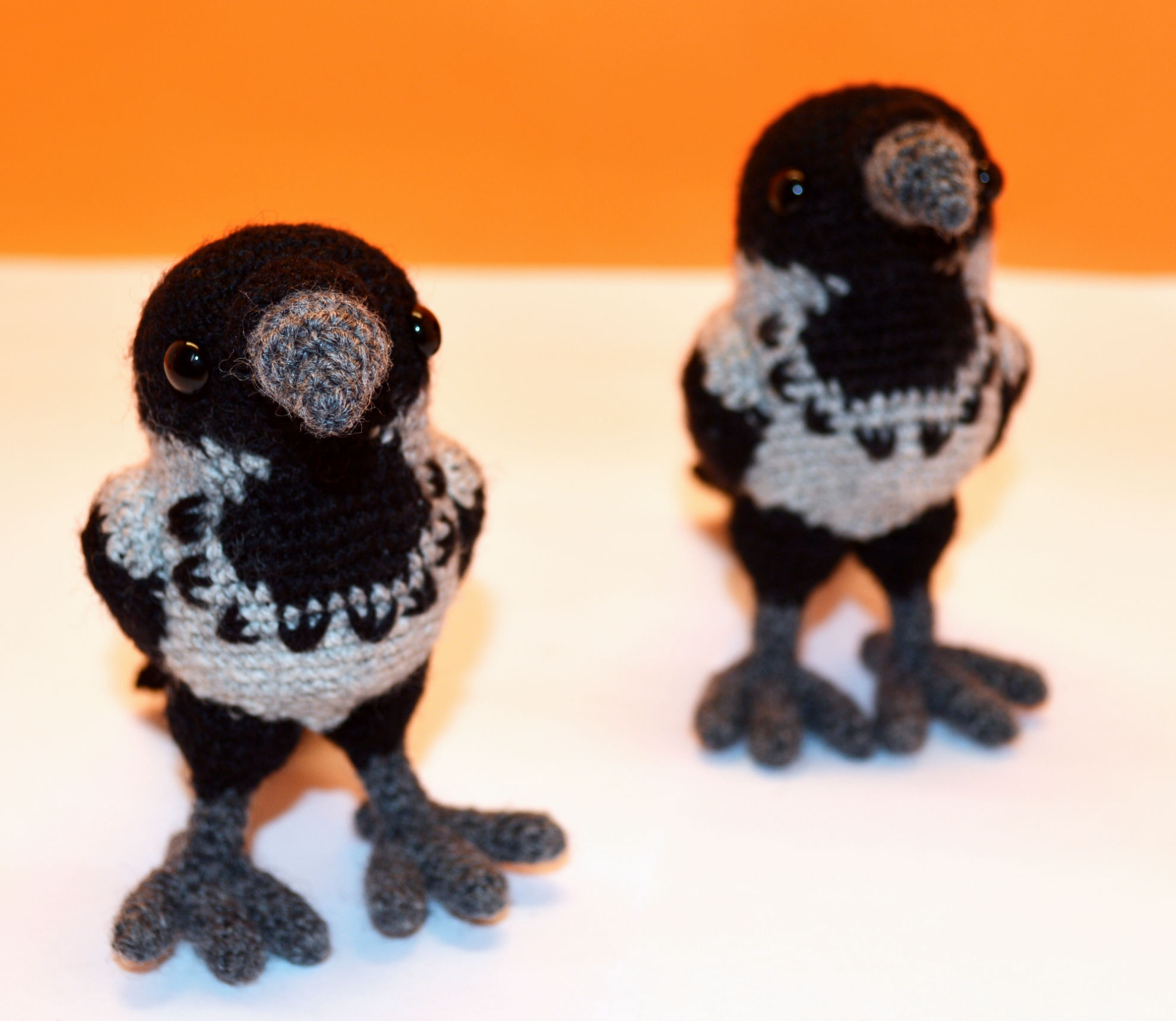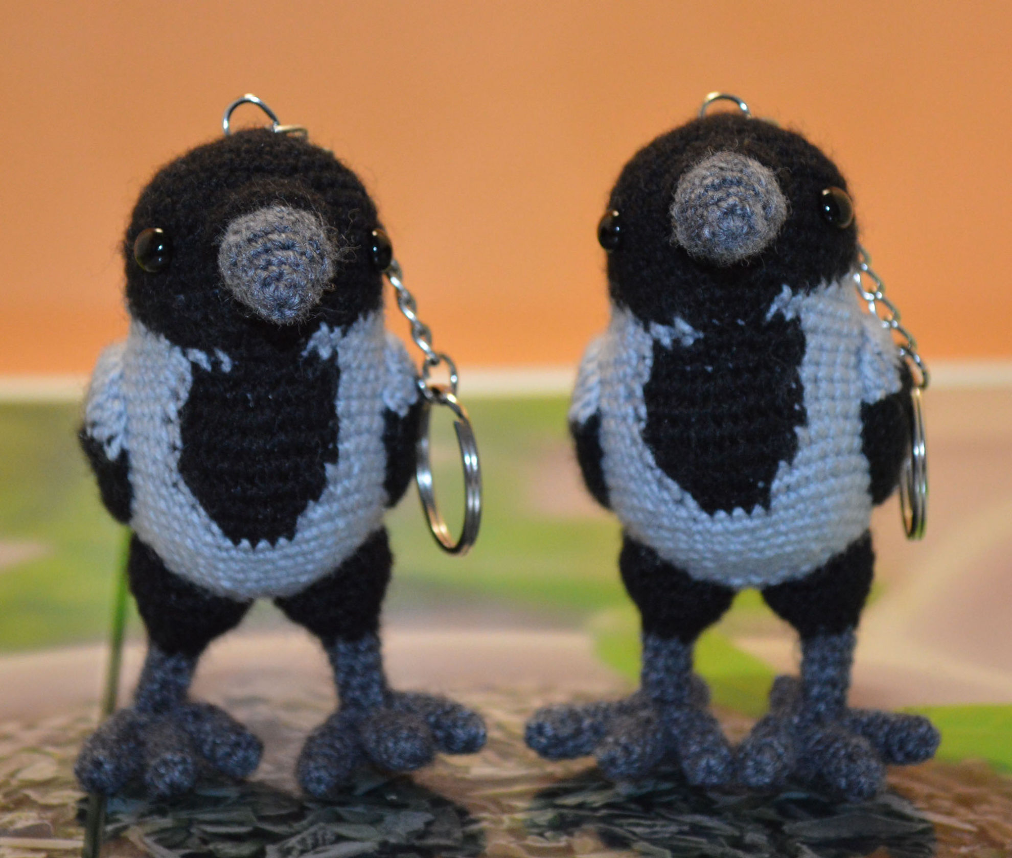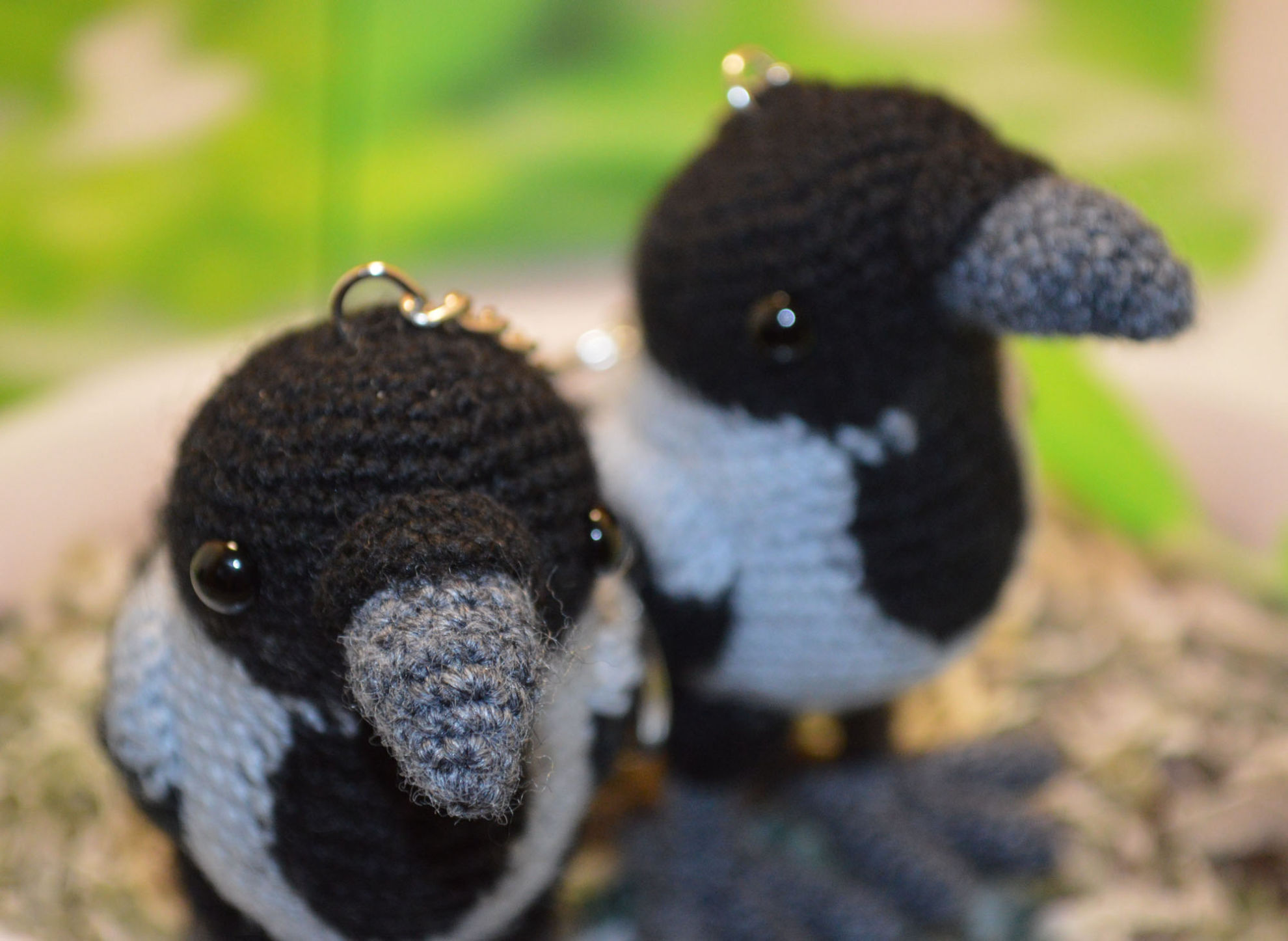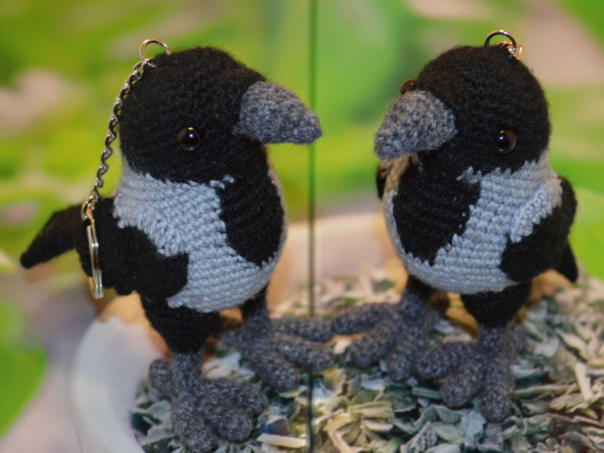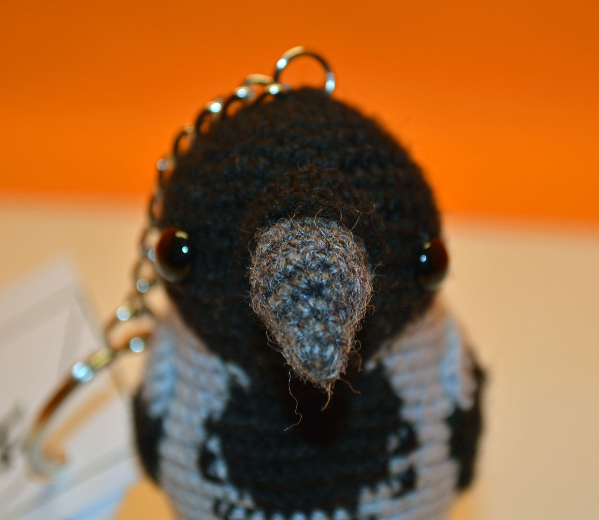 Material: Wolle Schwarz, Silber, Grau, Glasaugen, Bastelwatte
