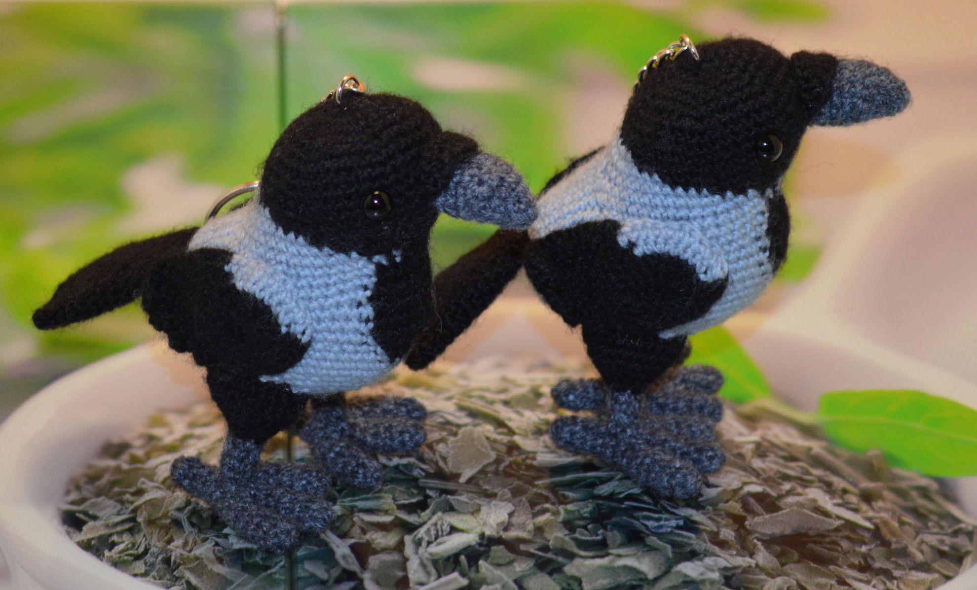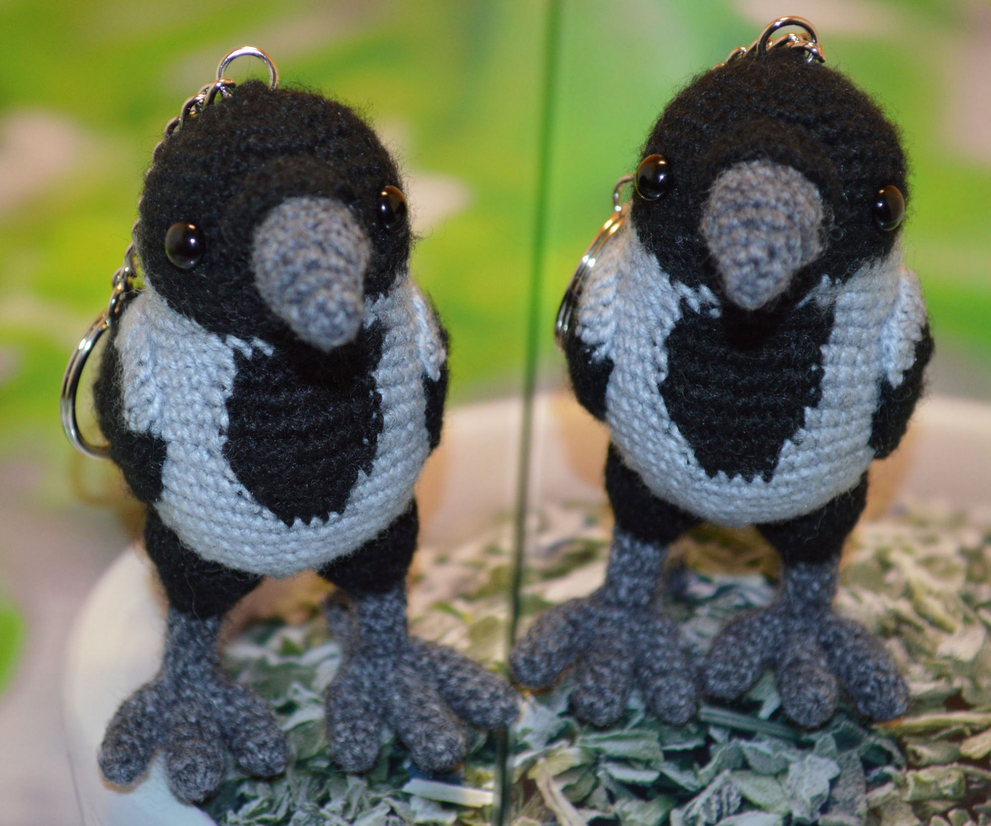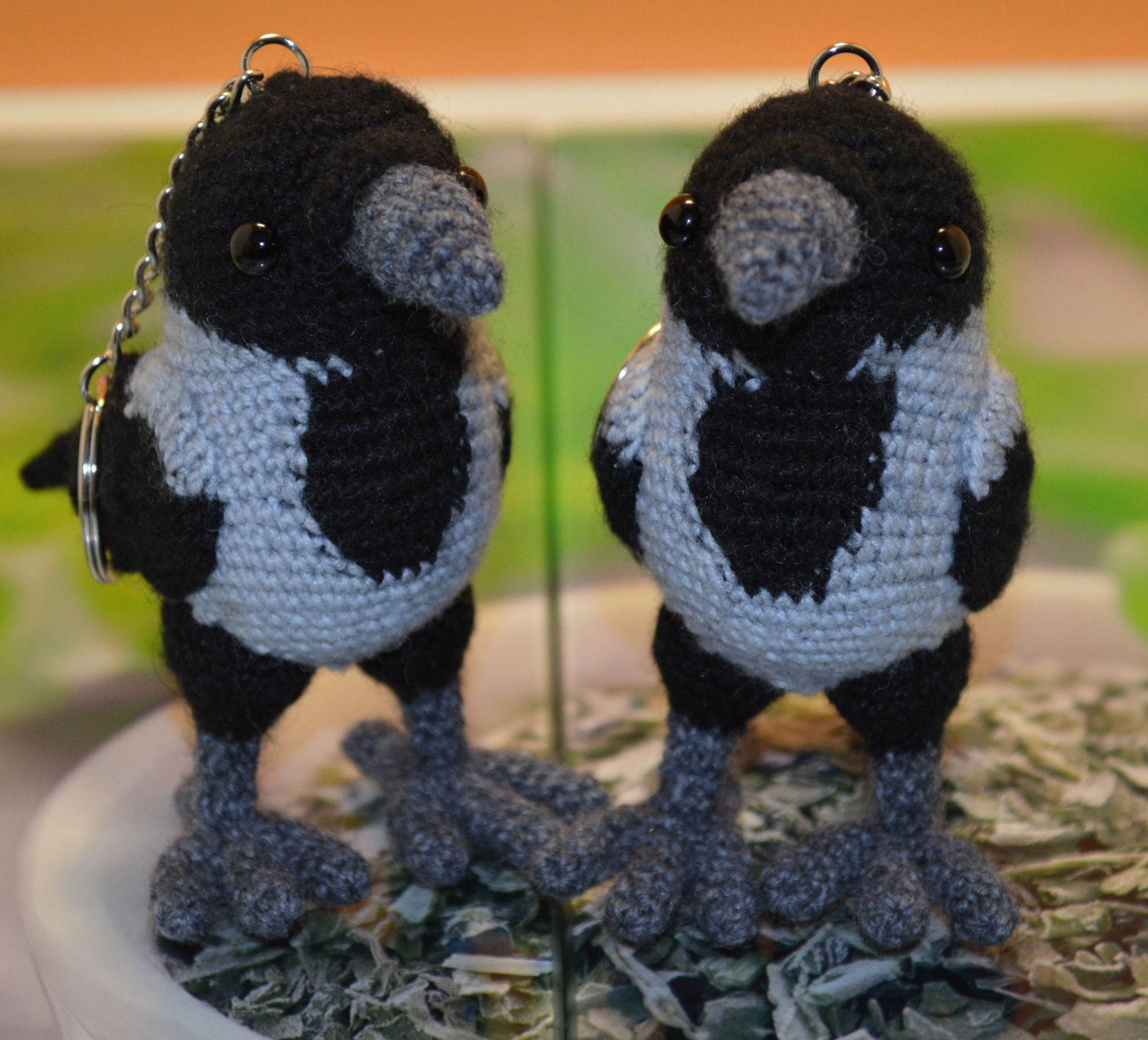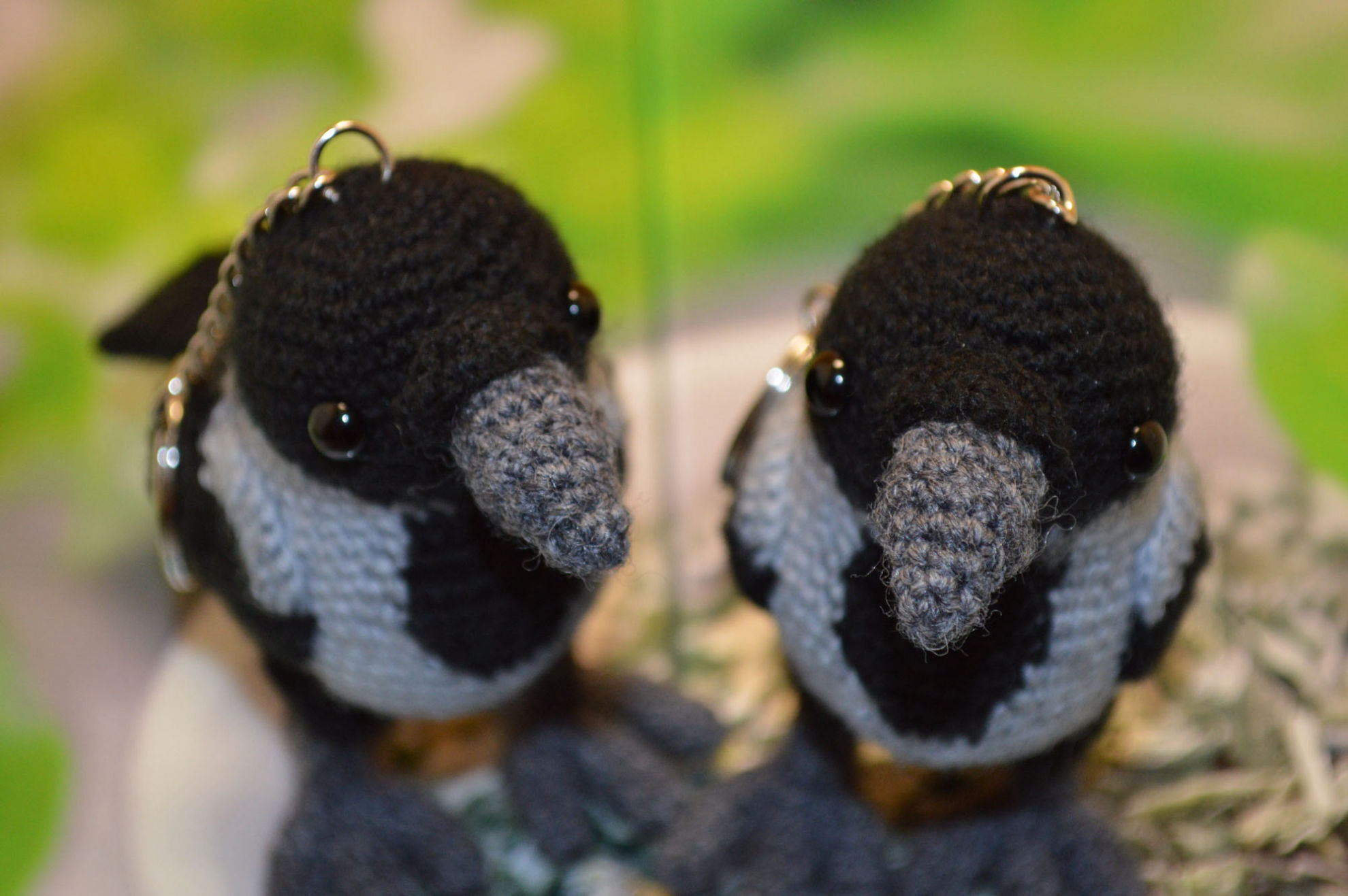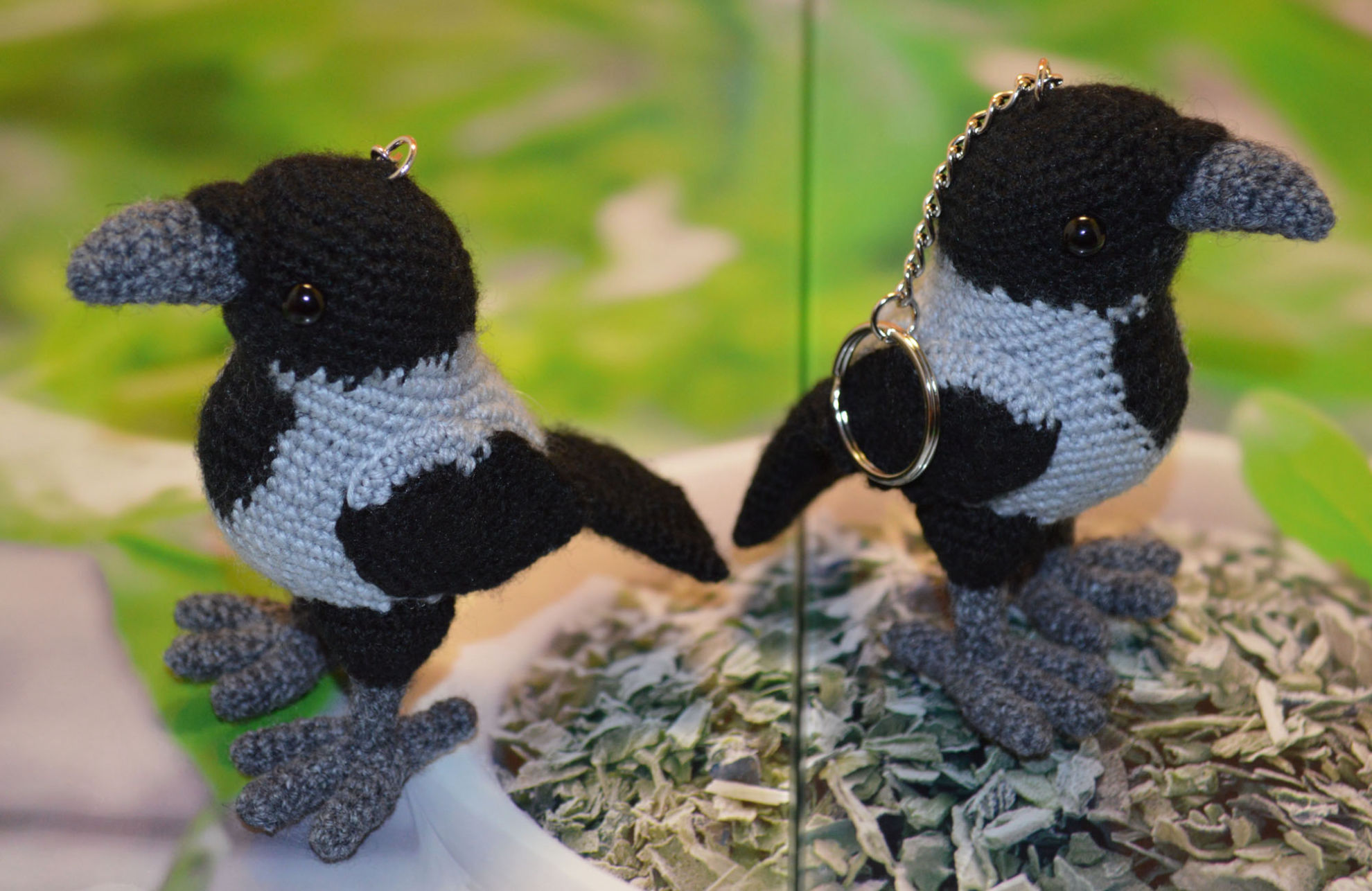 Material: Wolle Schwarz, Silber, Grau, Glasaugen, Bastelwatte