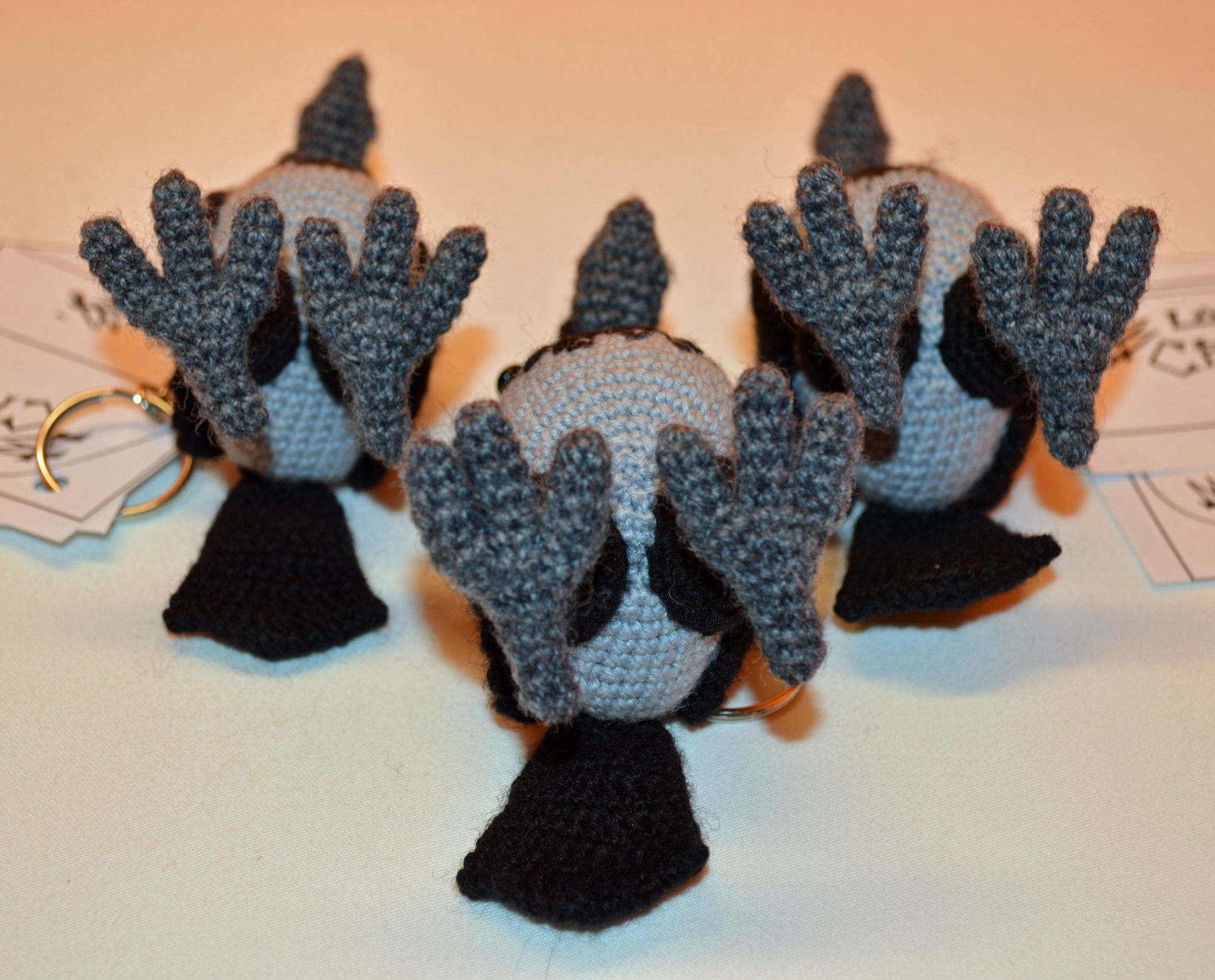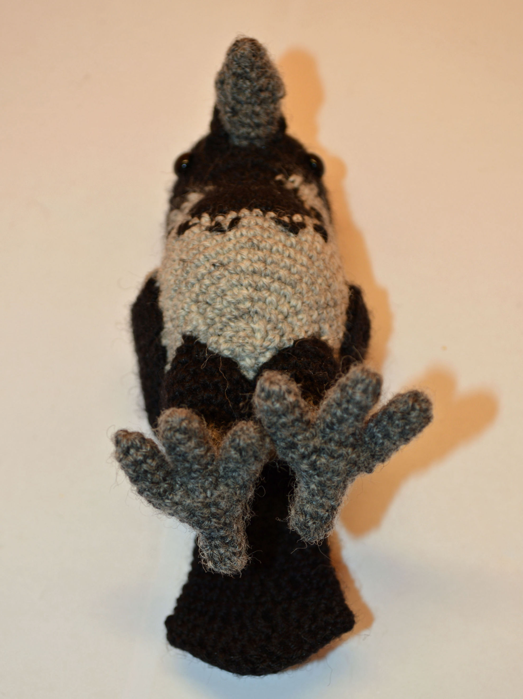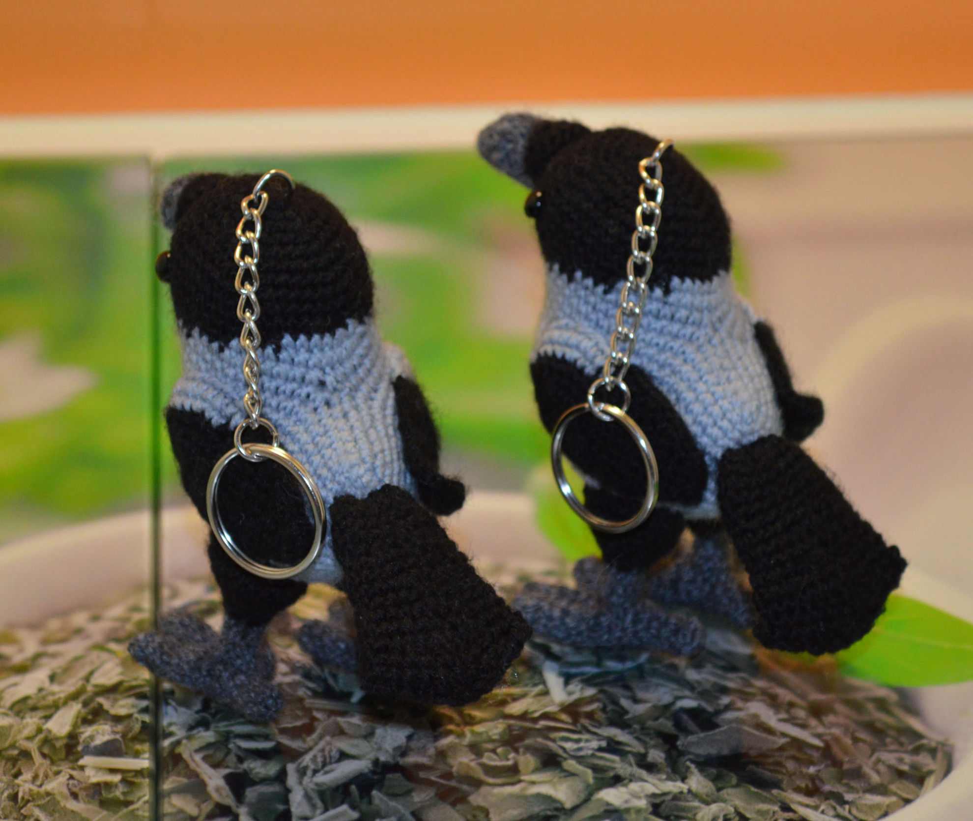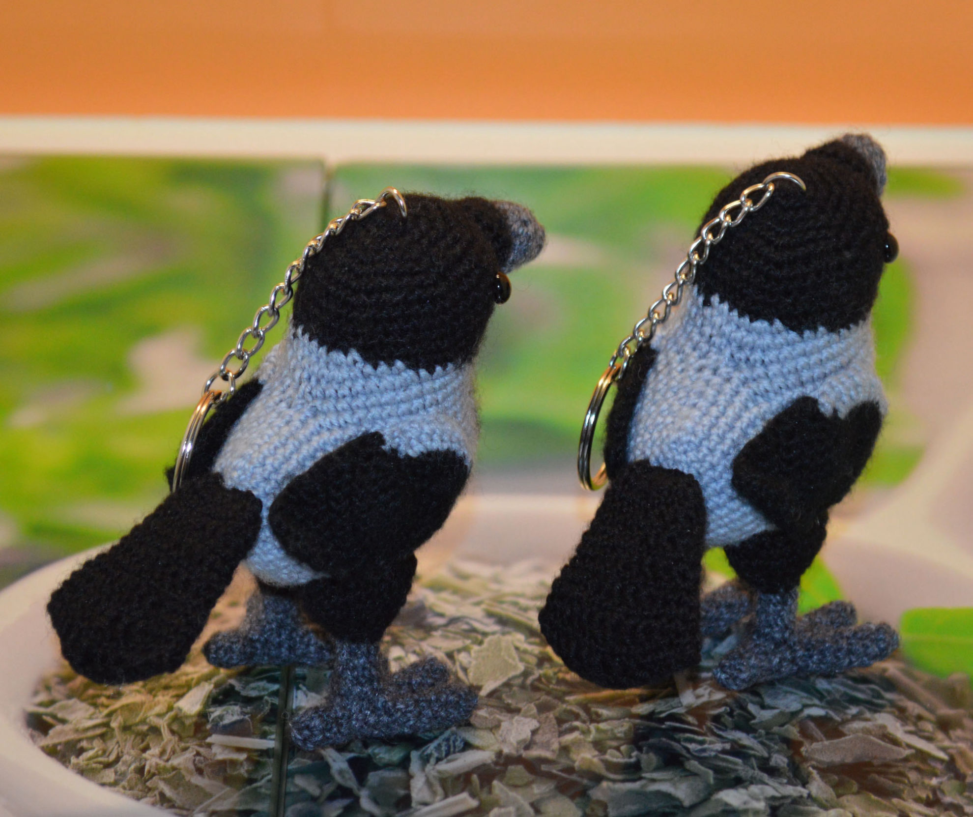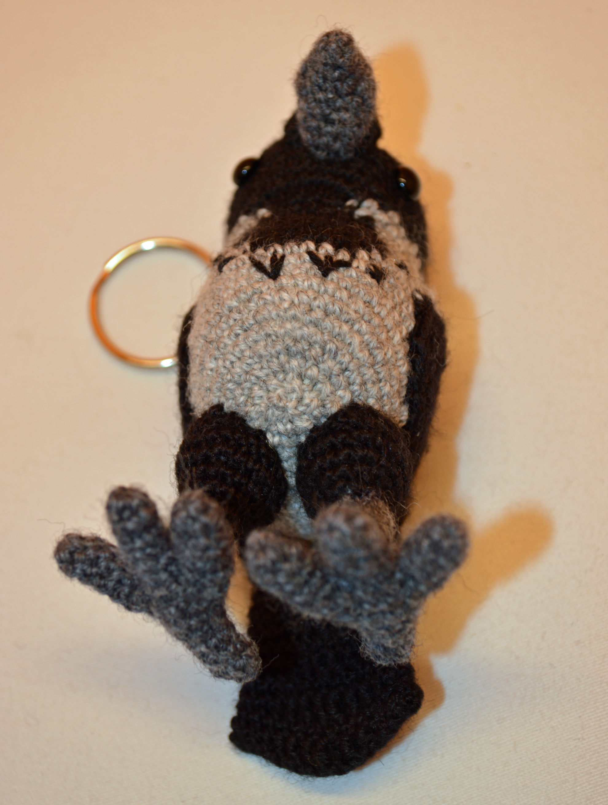 Material: Wolle Schwarz, Silber, Grau, Glasaugen, Bastelwatte