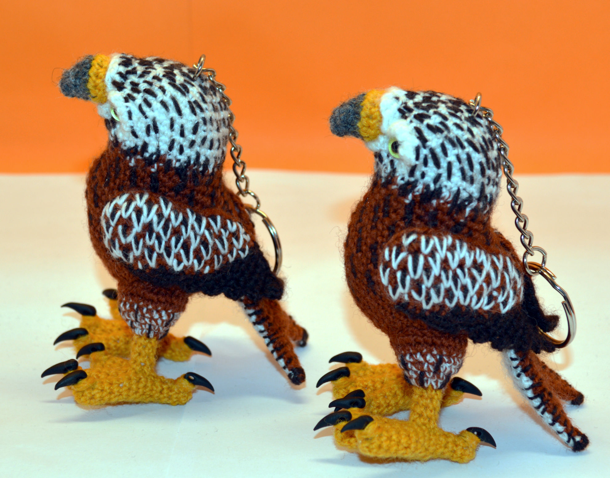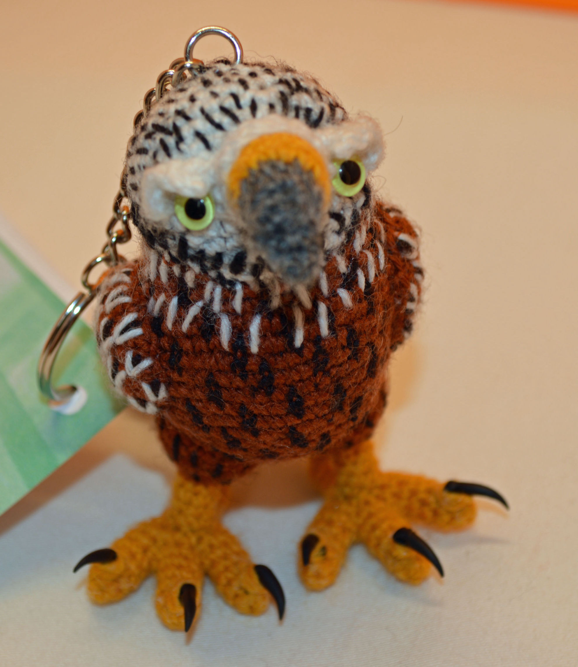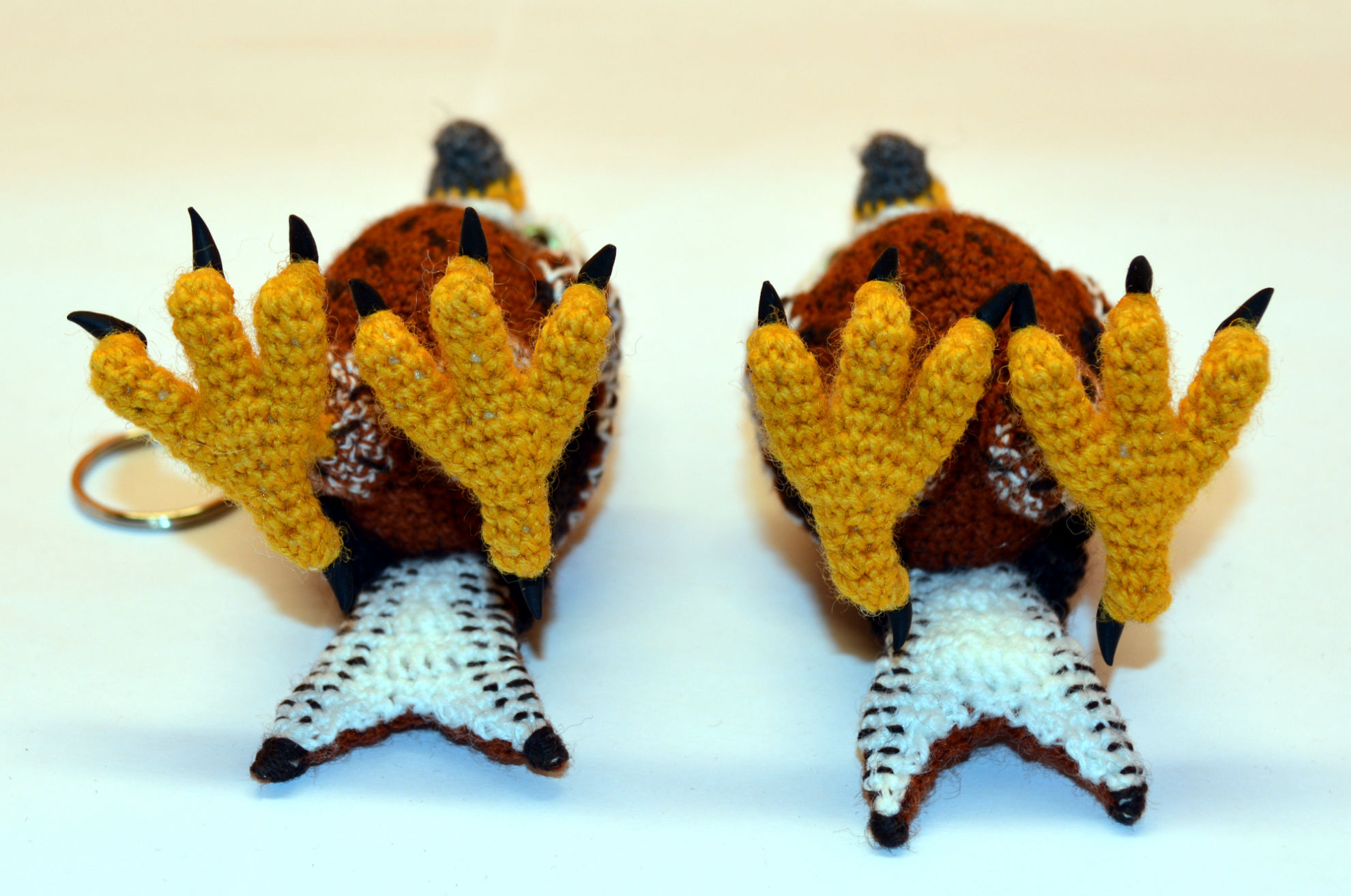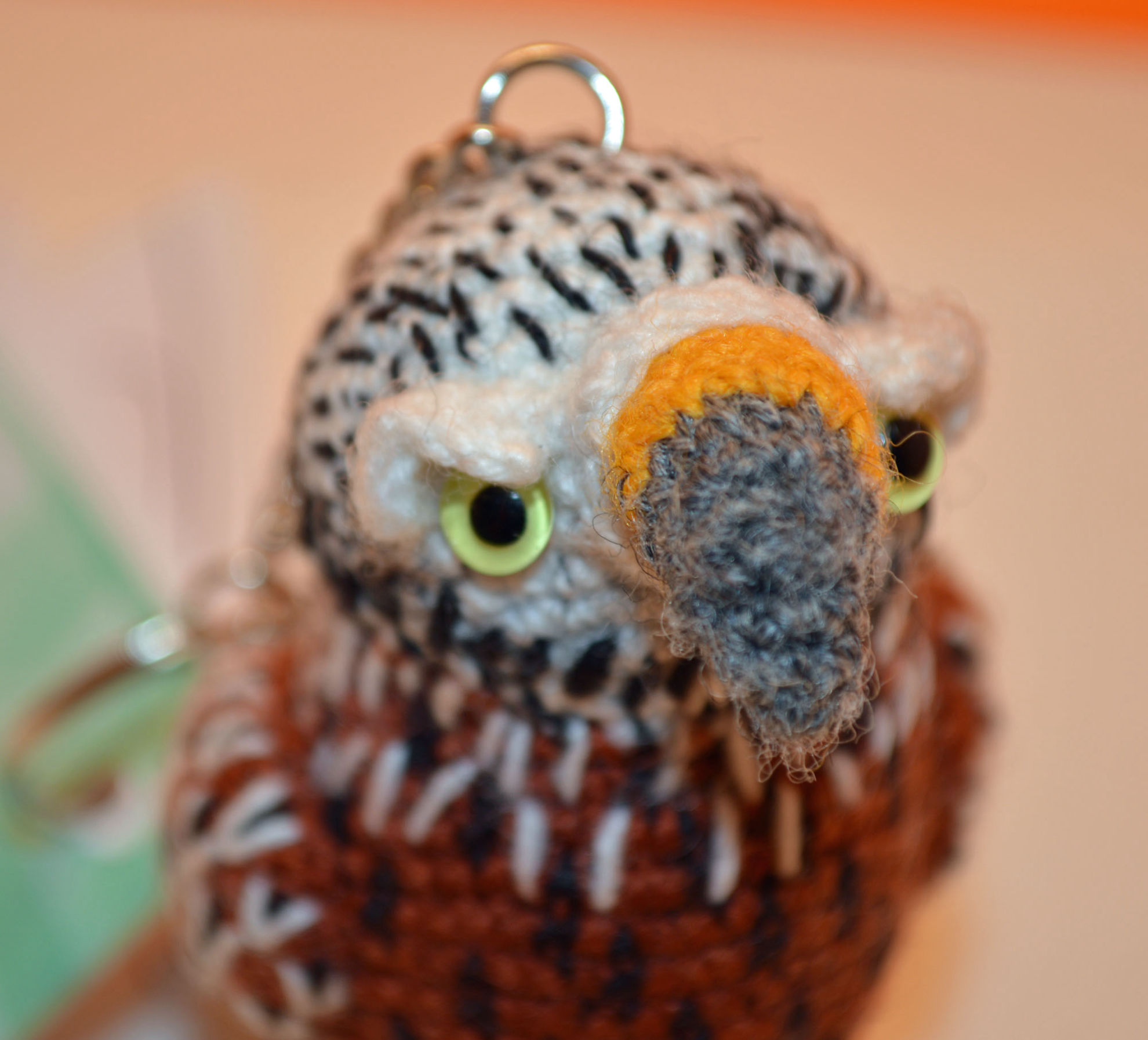Material: Wolle Grau, Goldgelb, Dunkelbraun, Nougat, Weiss, Schwarz, Glasaugen, Bastelwatte, Fimo (krallen)