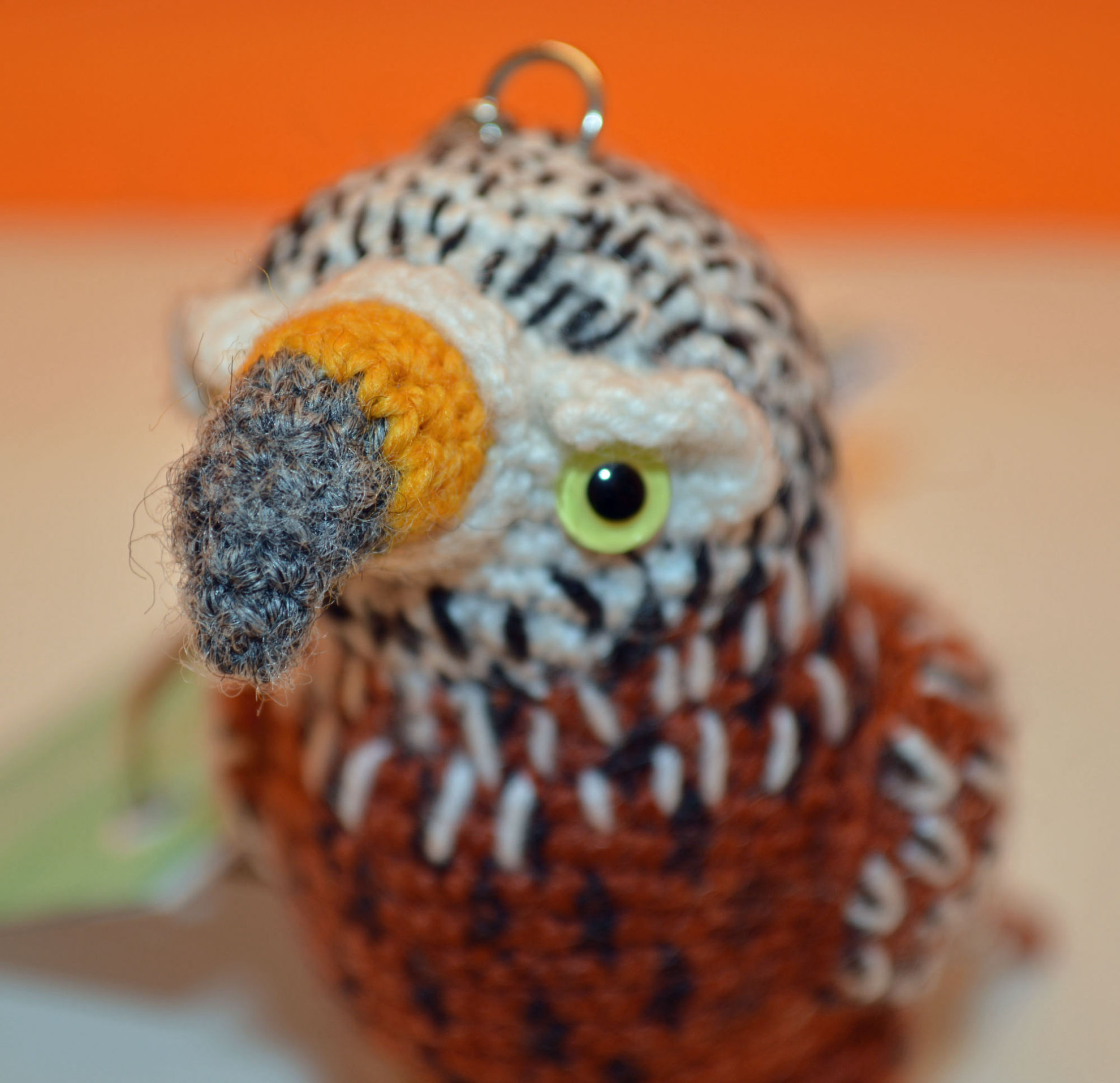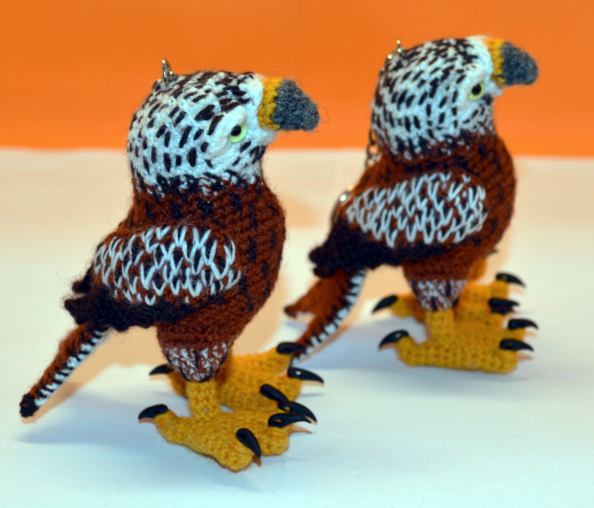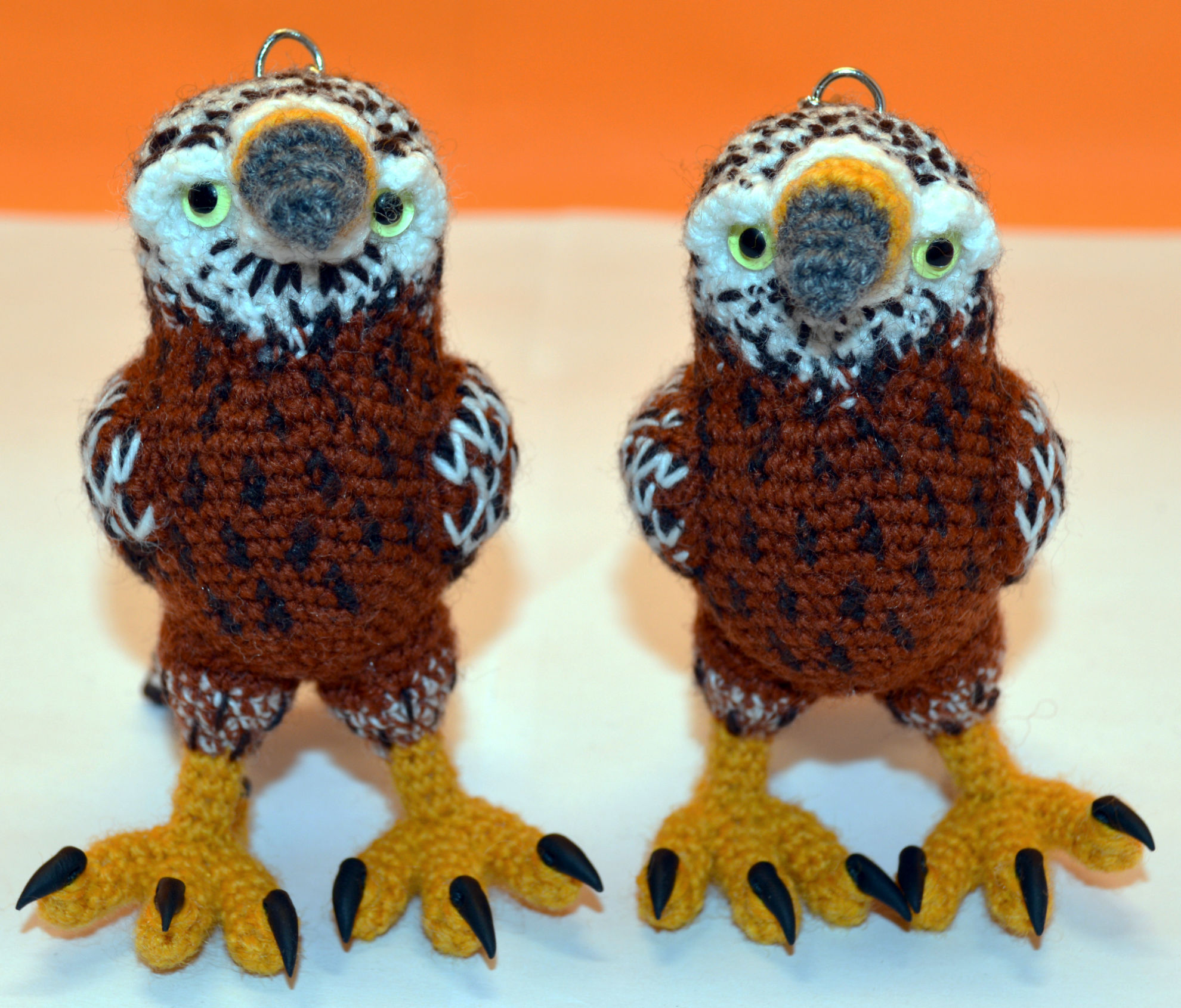 Material: Wolle Grau, Goldgelb, Dunkelbraun, Nougat, Weiss, Schwarz, Glasaugen, Bastelwatte, Fimo (krallen)