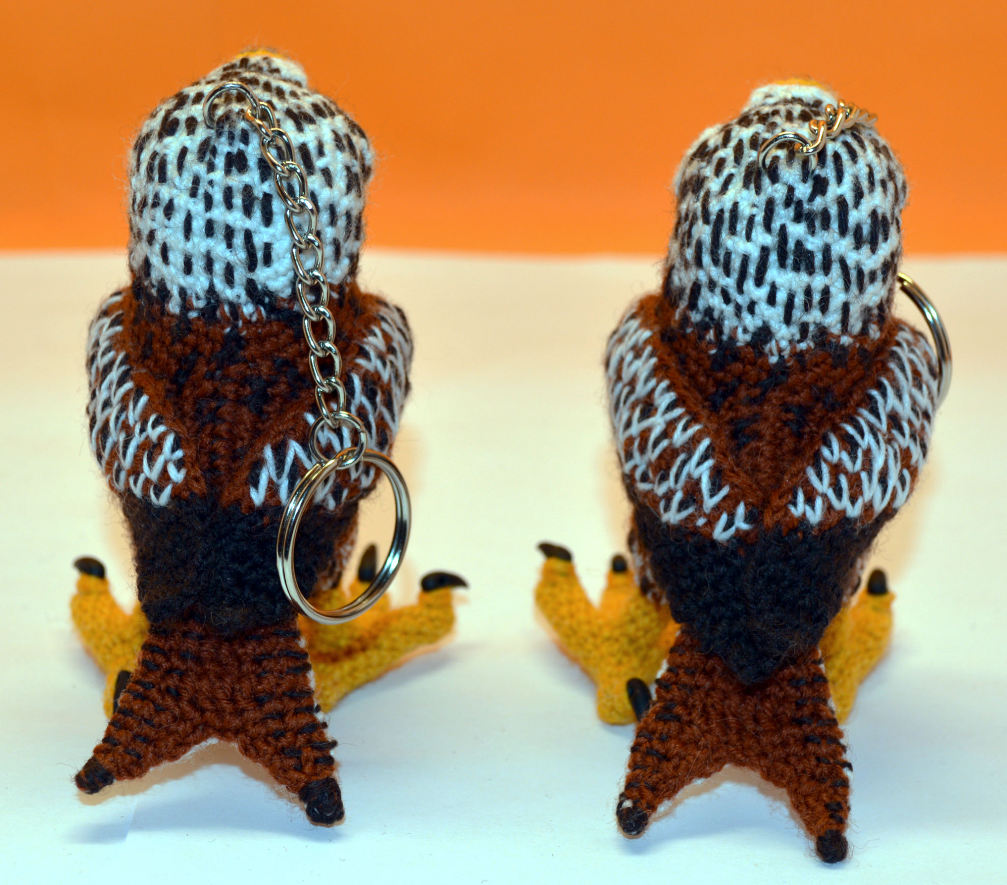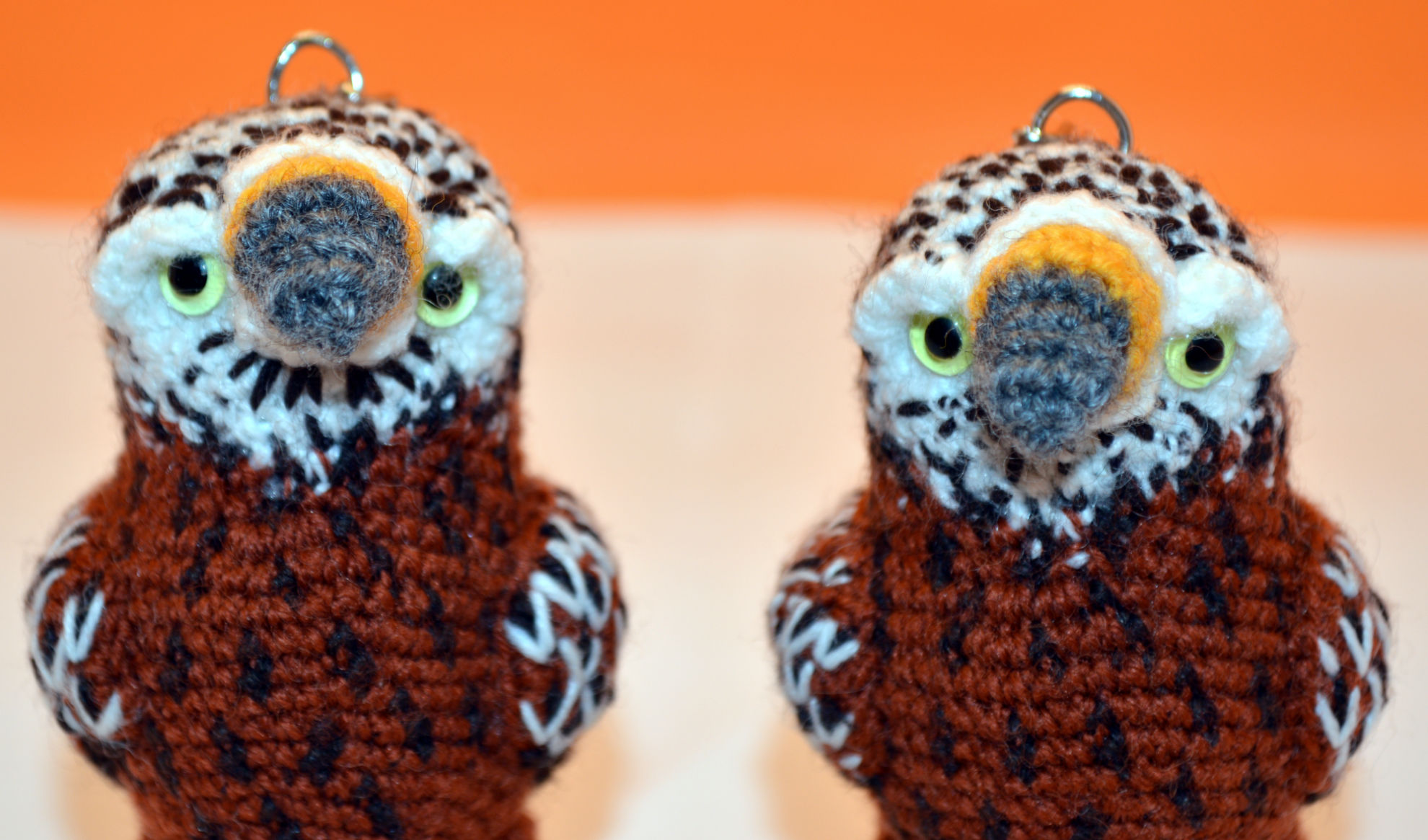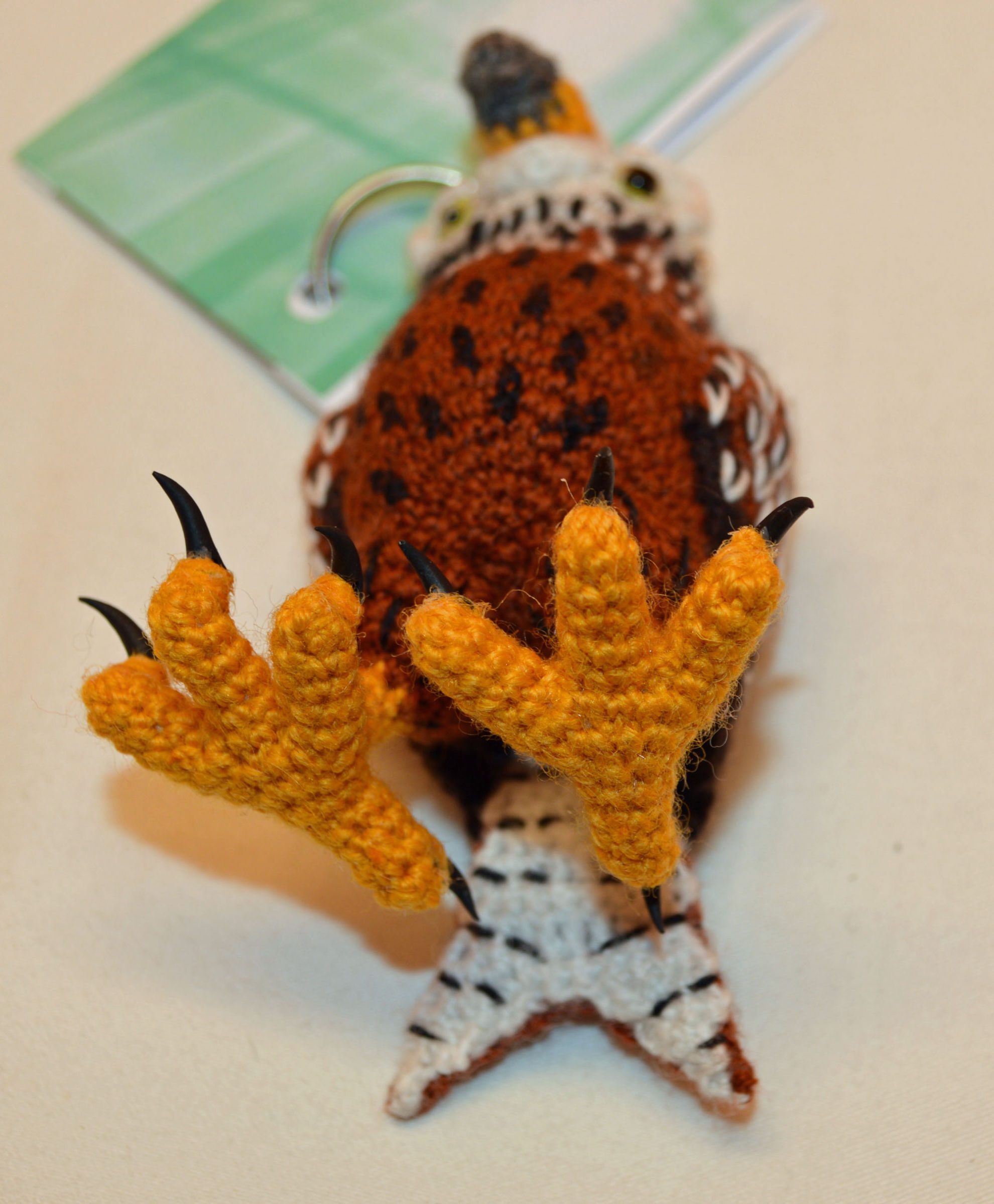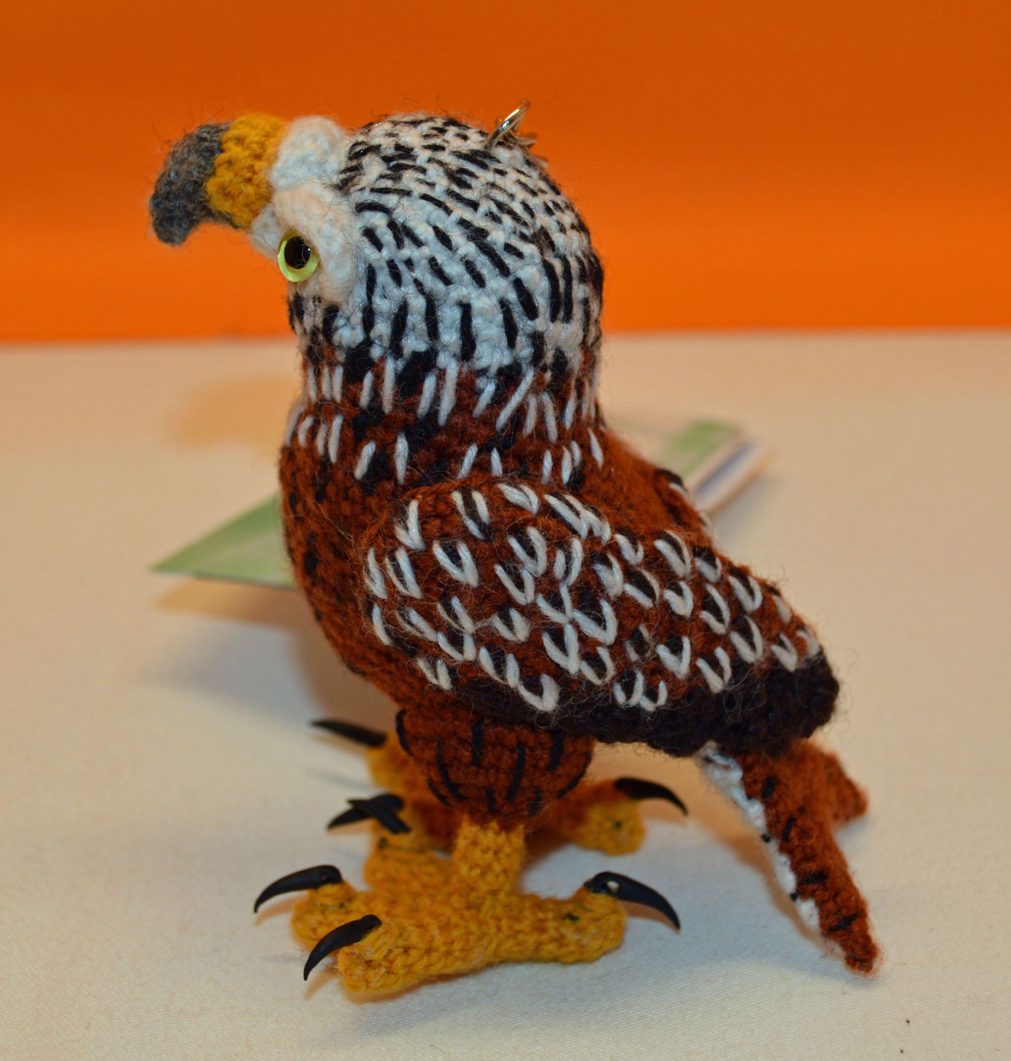 Material: Wolle Grau, Goldgelb, Dunkelbraun, Nougat, Weiss, Schwarz, Glasaugen, Bastelwatte, Fimo (krallen)