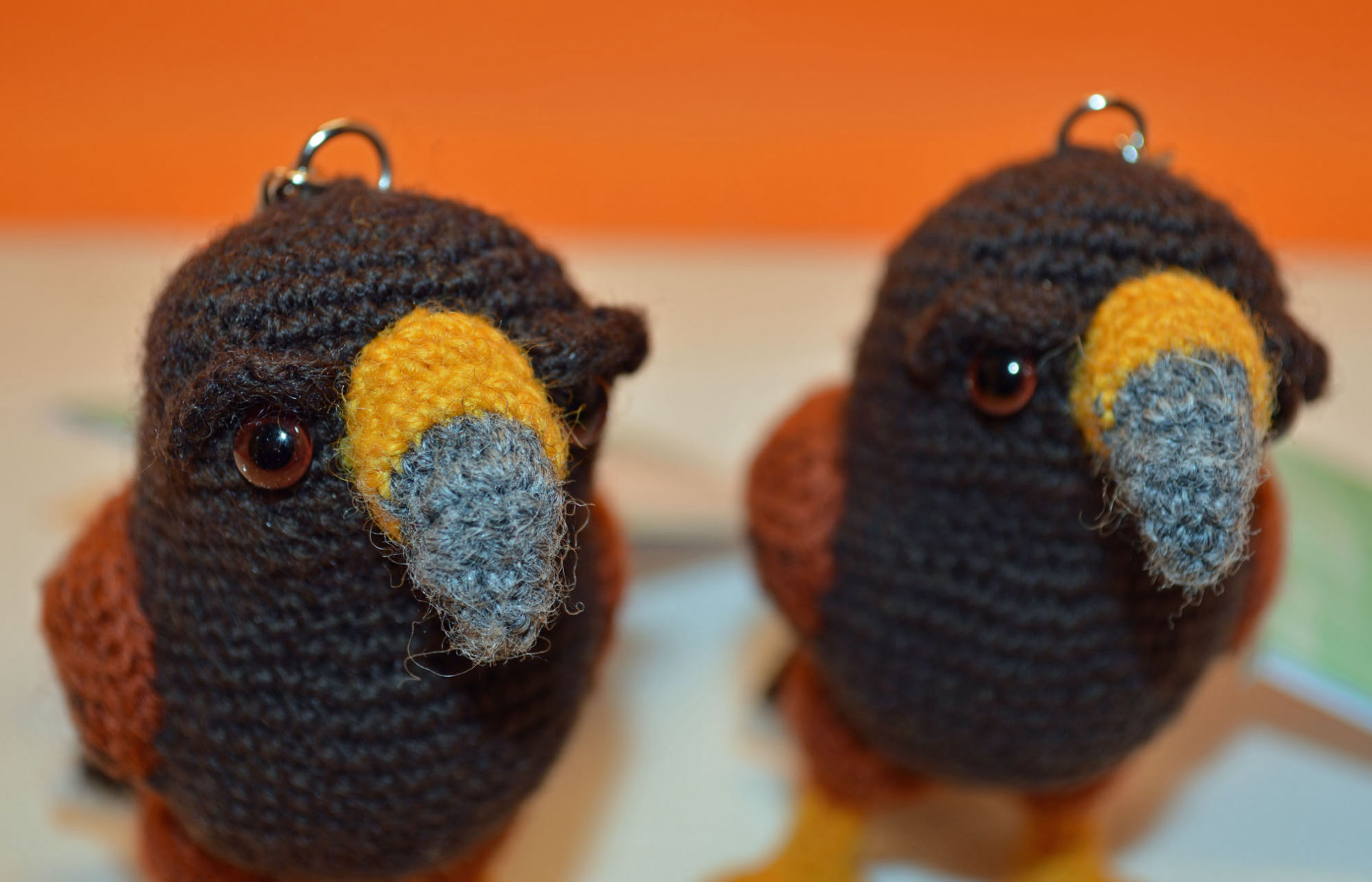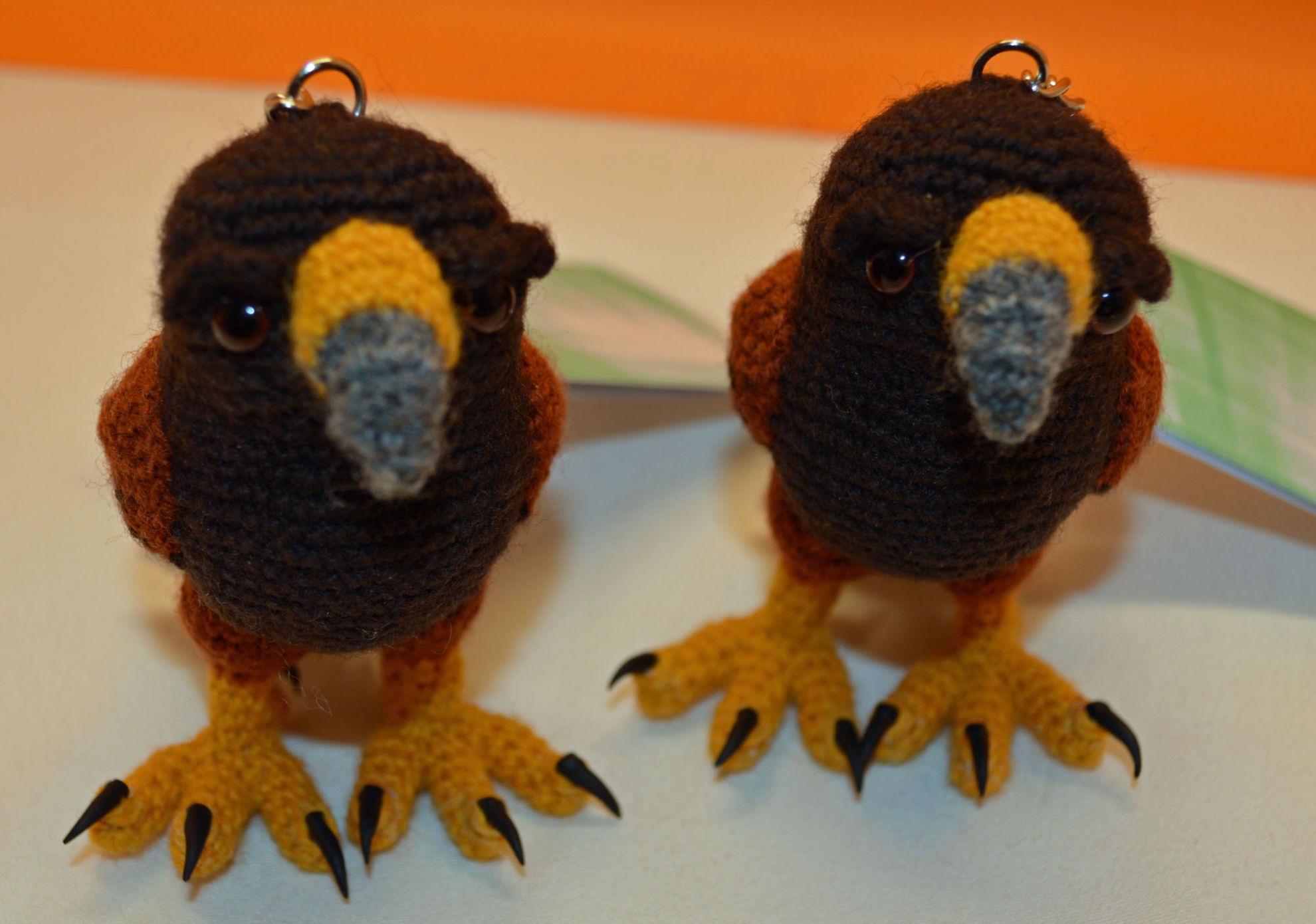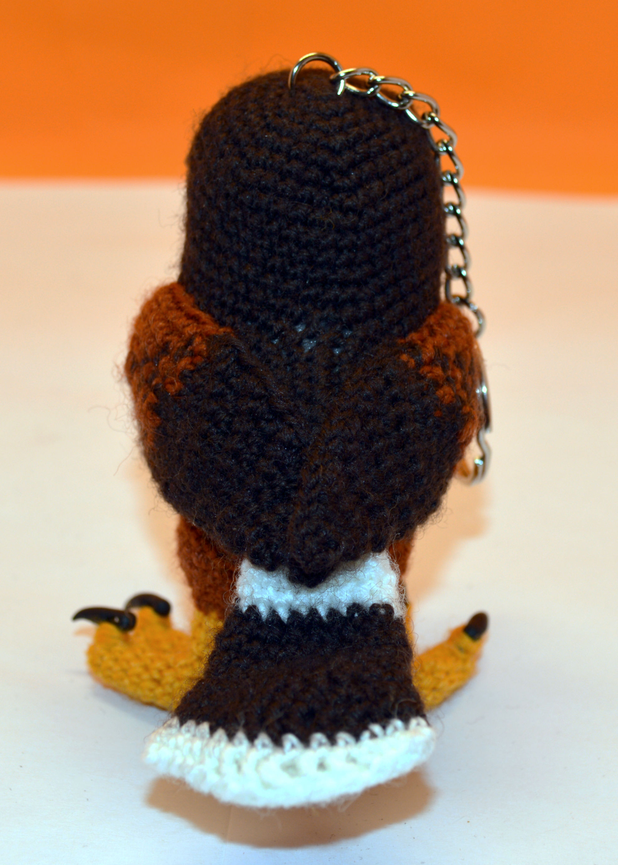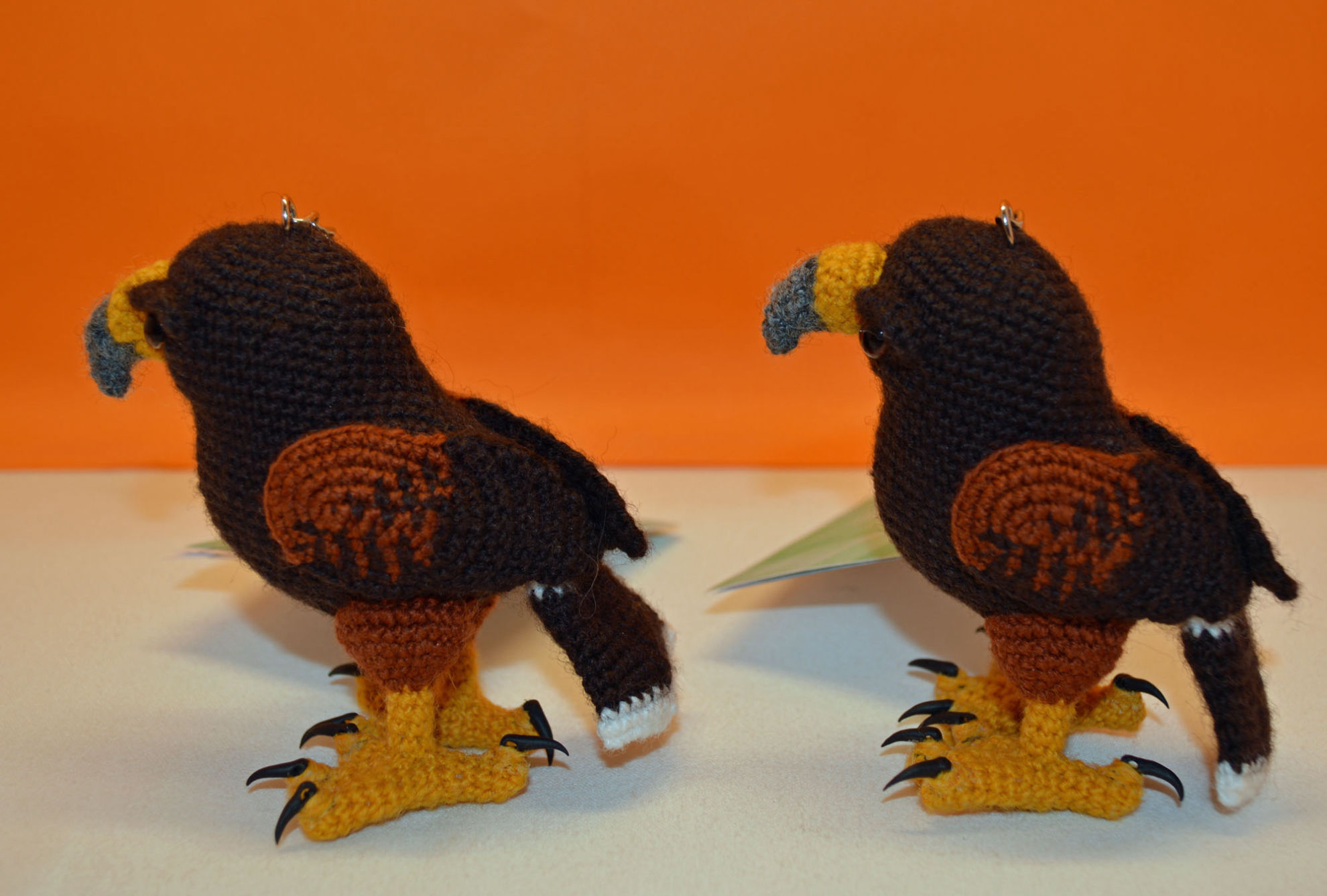 Material: Wolle Grau, Goldgelb, Dunkelbraun, Nougat, Weiss Glasaugen, Bastelwatte, Fimo (krallen)