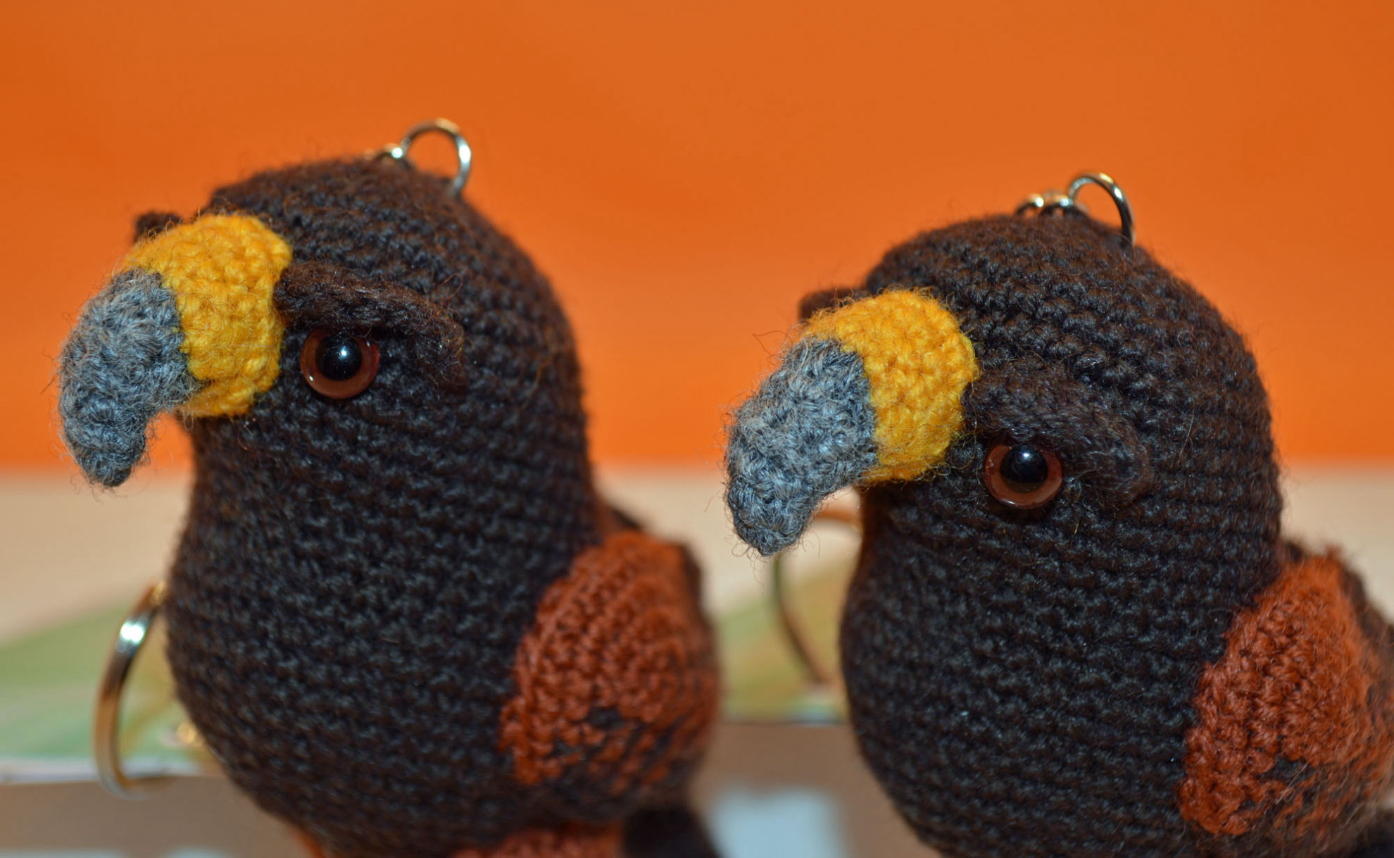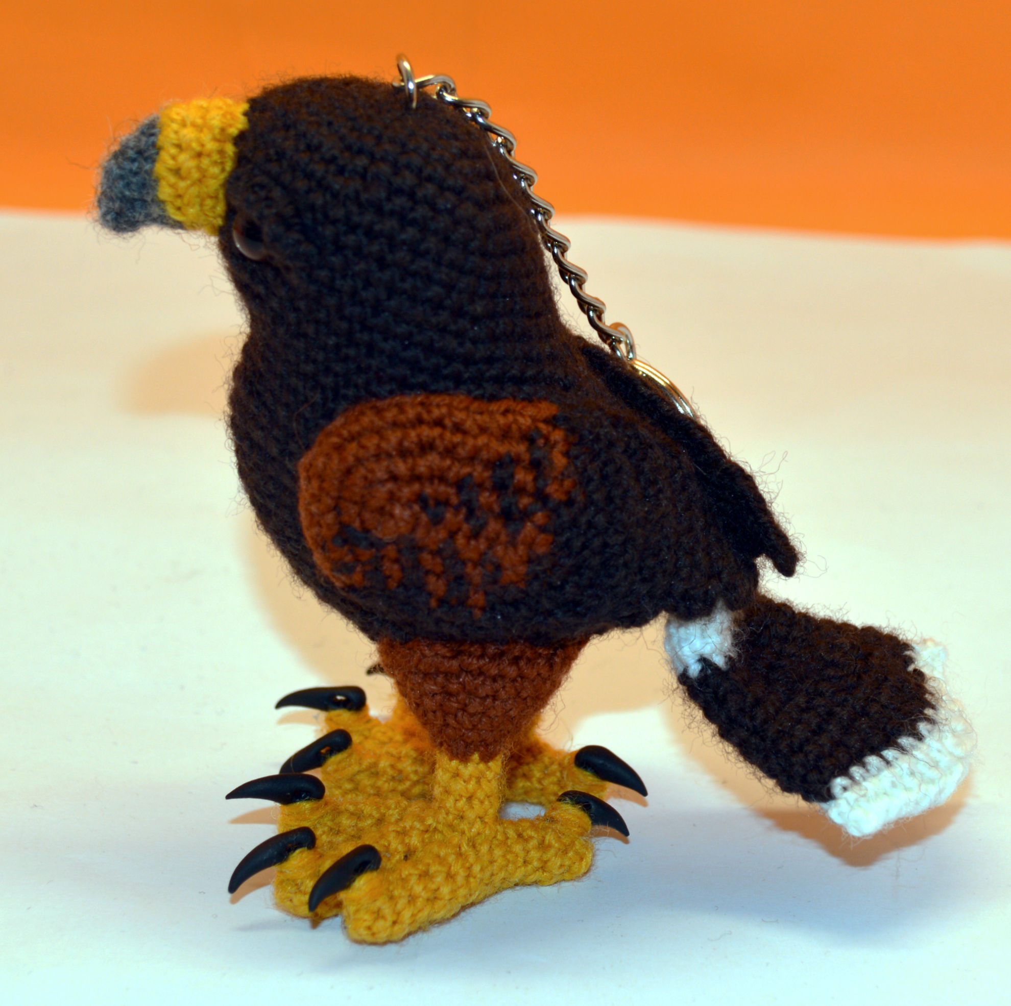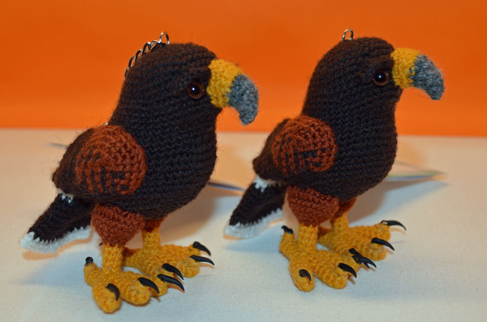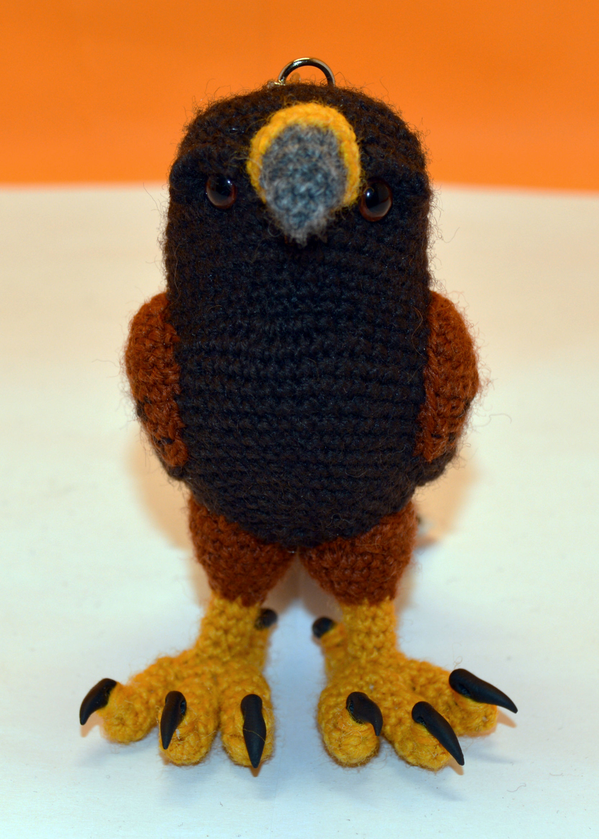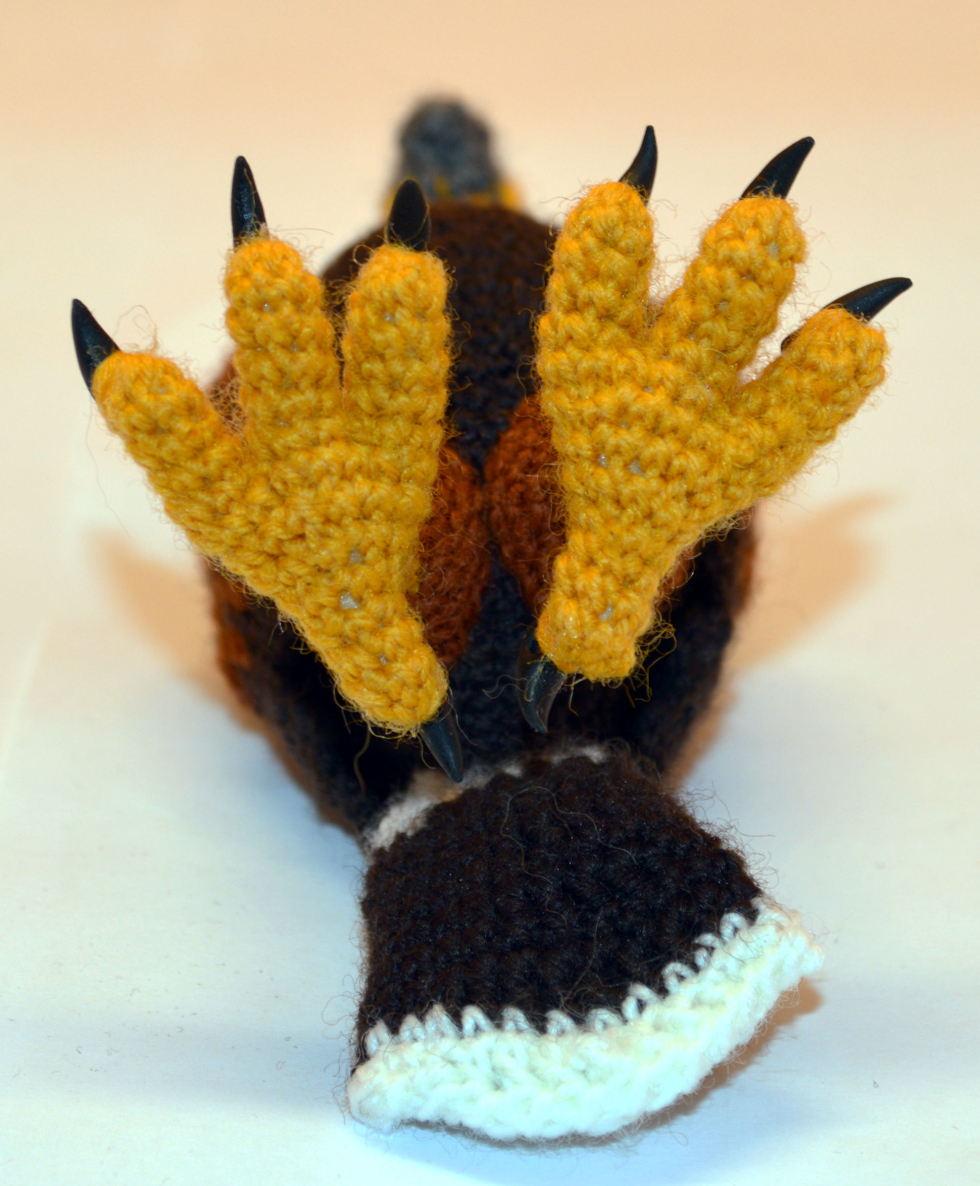 Material: Wolle Grau, Goldgelb, Dunkelbraun, Nougat, Weiss Glasaugen, Bastelwatte, Fimo (krallen)