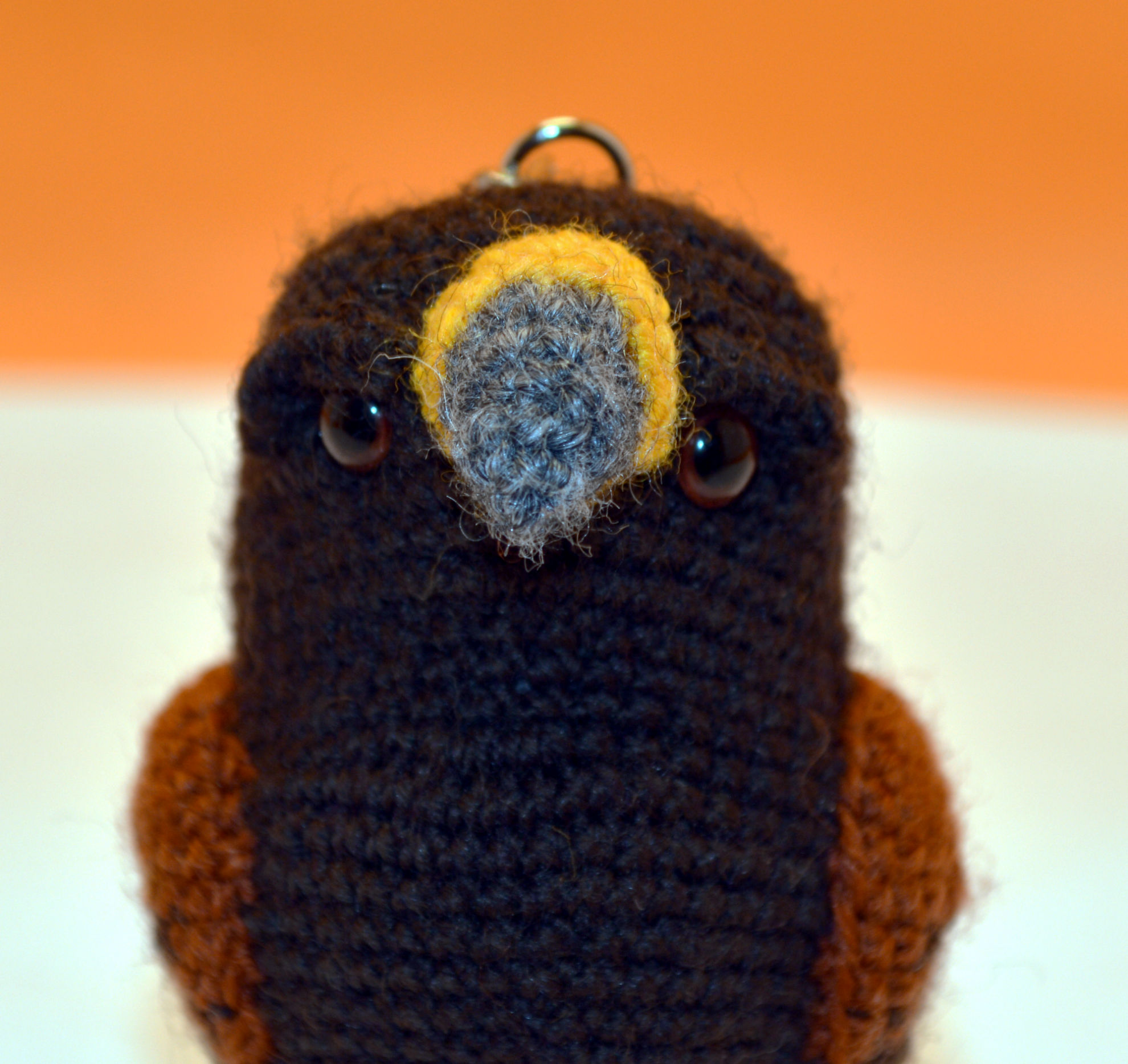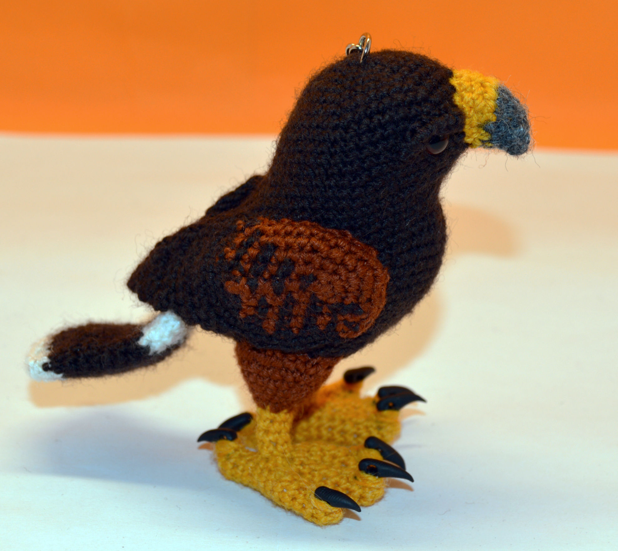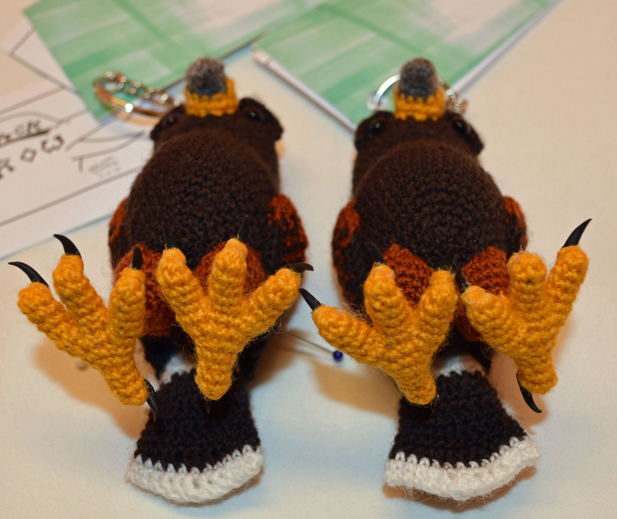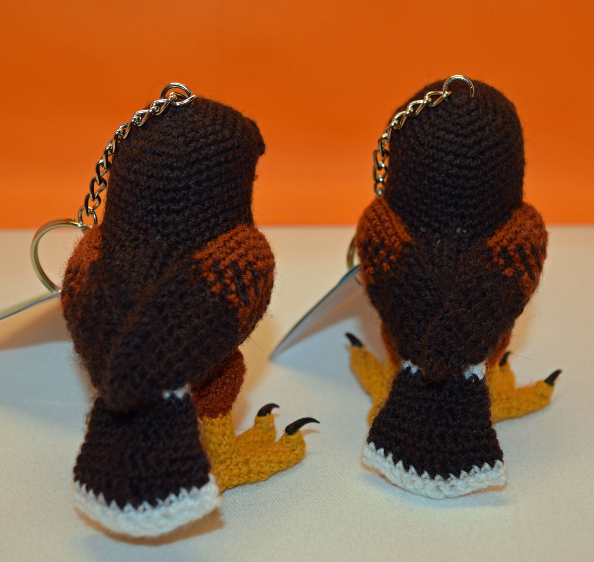 Material: Wolle Grau, Goldgelb, Dunkelbraun, Nougat, Weiss Glasaugen, Bastelwatte, Fimo (krallen)
