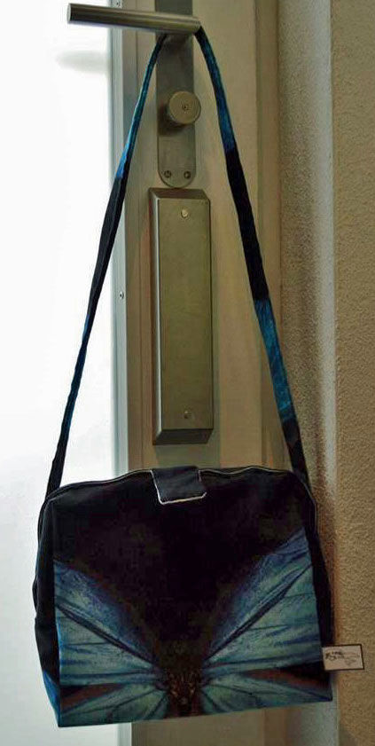 Material: Stoff Motiv "Schmetterling", Klettverschluss,                                        Rollladengurt, Plexiglas (Bodenverstärkung)