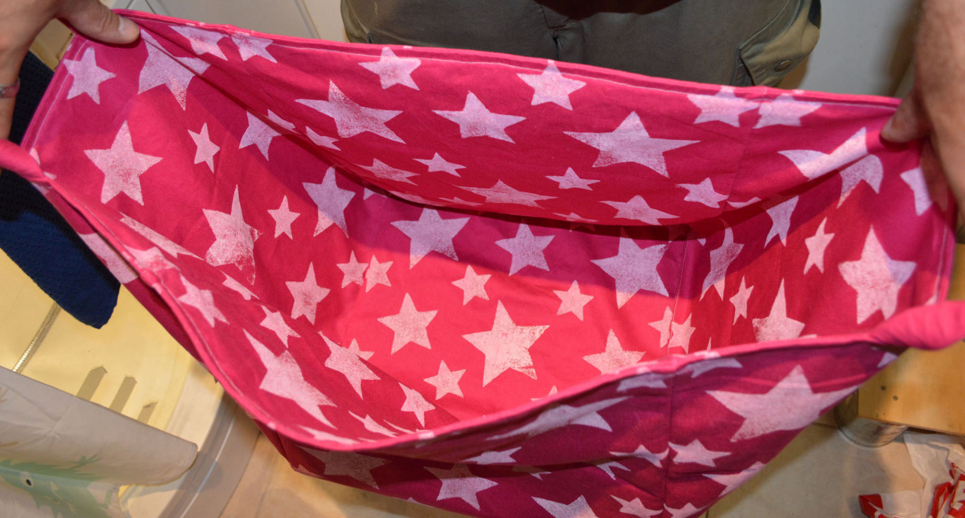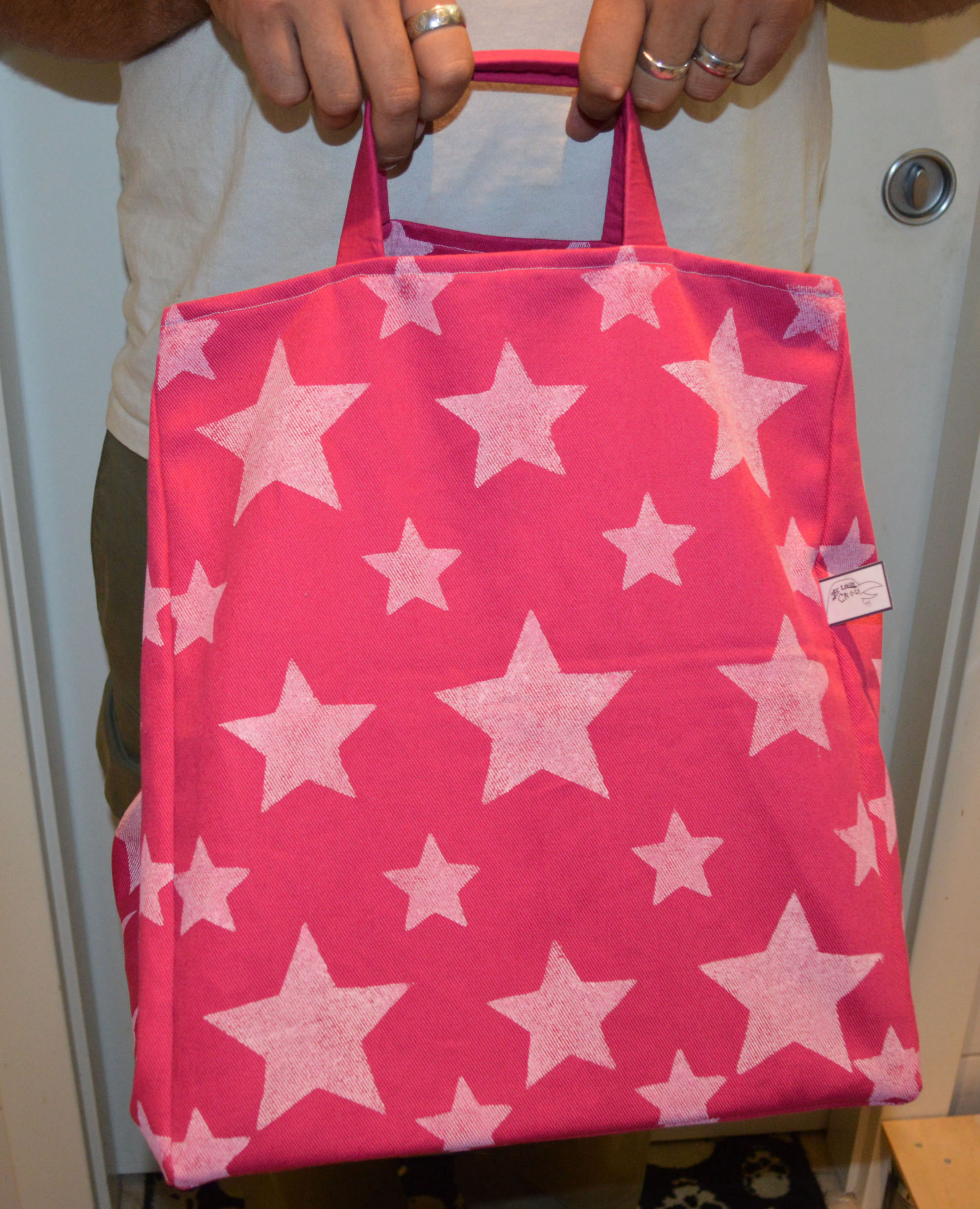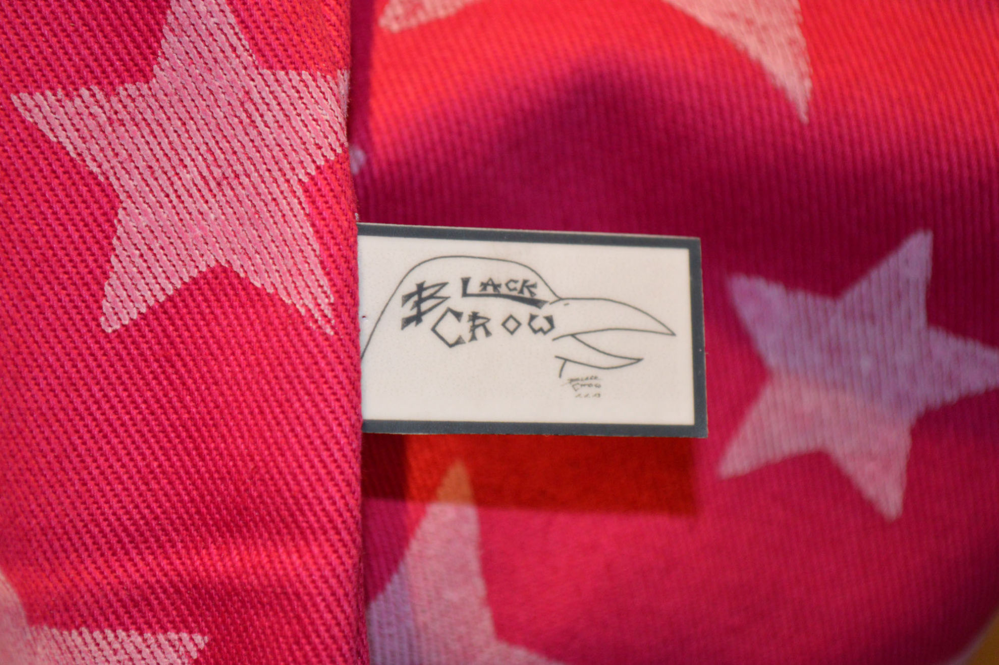 Material: Stoff Pink, Motiv selber gestaltet "Sterne", Plexiglas                          Boden, Bauernmalfarbe
