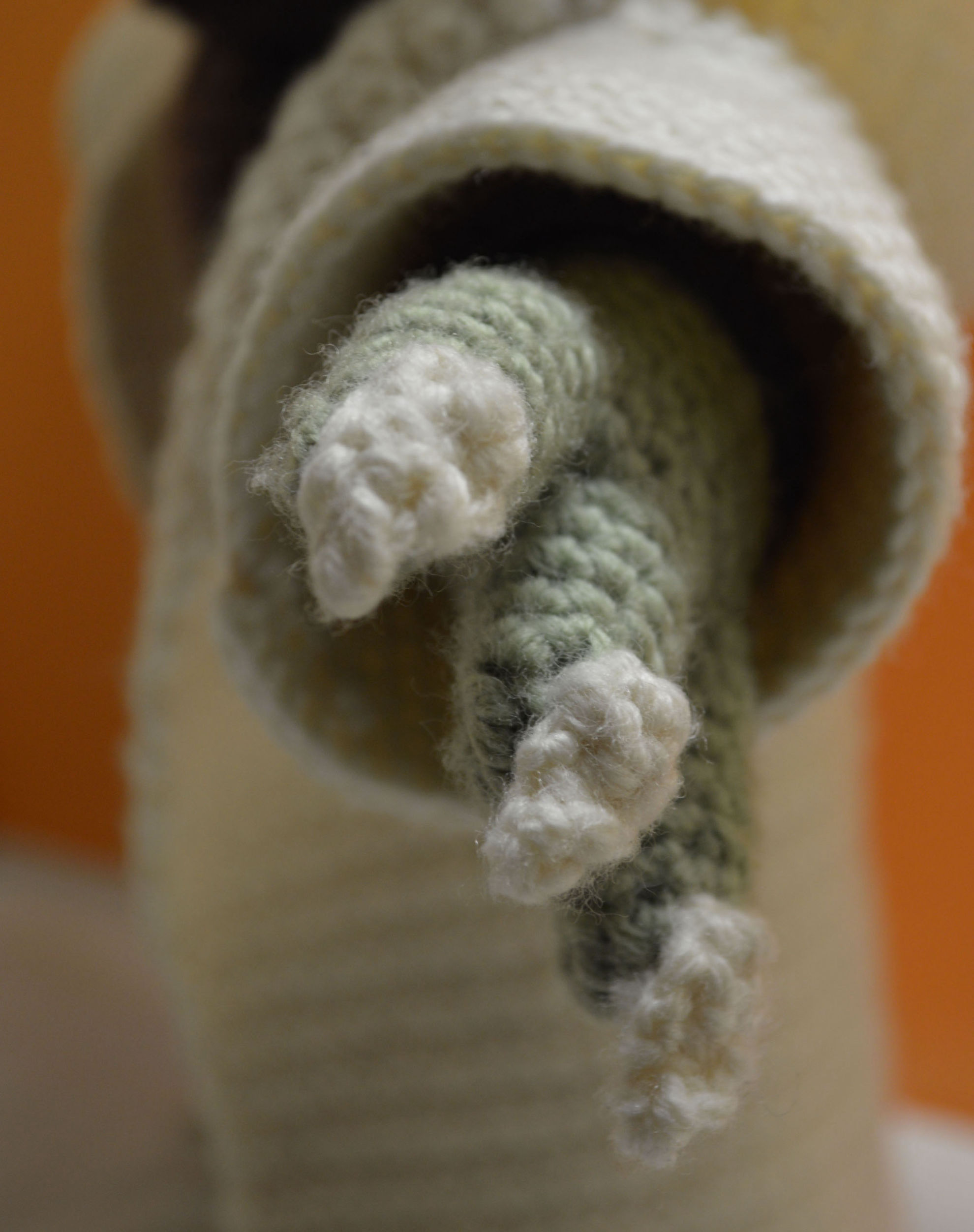 Material: Wolle Hellgrün, Braun, Weiss, Bastelwatte
